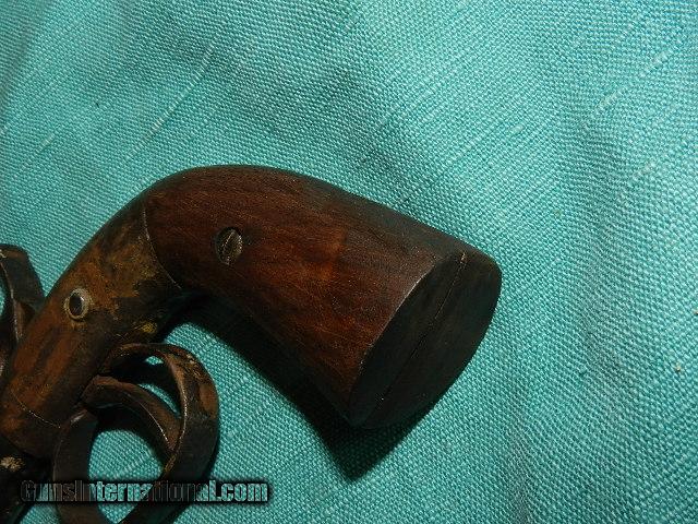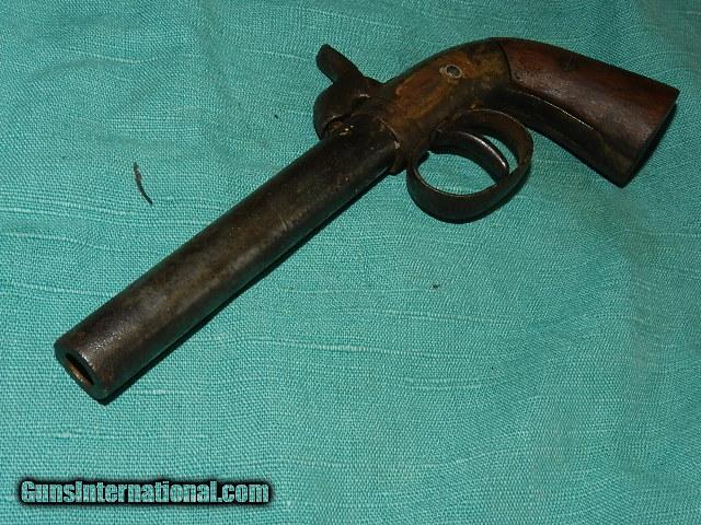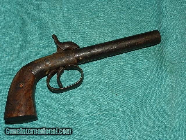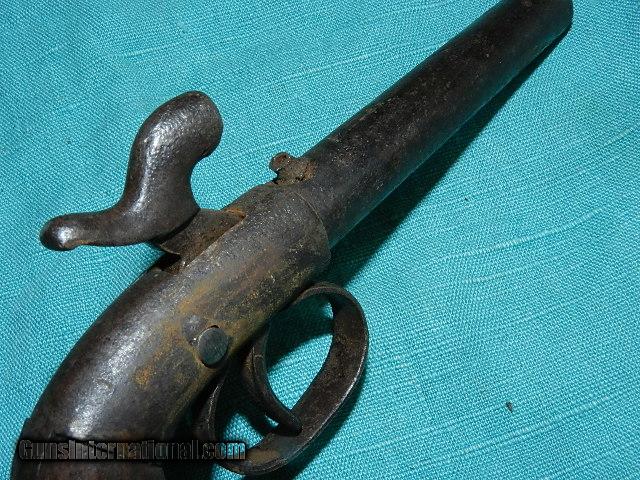 Description: Good working boot pistol with a 3 3/4" round barrel, and patina/corroded metal,with corrosion near the nipple. Hammer works good .no mid cock or loading cock on the antique C.W pistol. No makers name just three numbers under the barrel. Measures overall 7" long, with American walnut extended and shaped hard wood grips that looks good.GOOD 19TH CENTURY PISTOL, commonly used in the civil war, by spies! Most likely American made as there are no European proof marks. The bore is to be expected with dark corrosion. We don’t have asite .I prefer money orders or a check. Item ships when funds come in. If you can only pay with a card let me know. I hope you like my wide selection of unusual guns, knives and gun parts. Shipping price determined by zip code. I try to keep the prices affordable, which means I make less money than most dealers. You won’t get altitude sickness with my prices! I consistently have the best selection of older guns If you BUY IT NOW you must still contact us for details buy it now doesn't end the sale, it just sends an email telling us you want to buy this gun. A phone call won’t secure a sale! Not home many times, the first buyer by email buys the gun !Thissite doesnot close down a sale when you do a BUY IT NOW like Ebay!I can get six buy it nows in an hour, first buyer to email gets the guns, others are in second place! Best to send another email . Sometimes not home to get calls. Some guns are required shipment to a gun dealer near you for a transfer to you when it arrives. With the widest selection of older guns at great prices, We don’t have a store, and sell on the internet only. SOLD Antique: Yes |