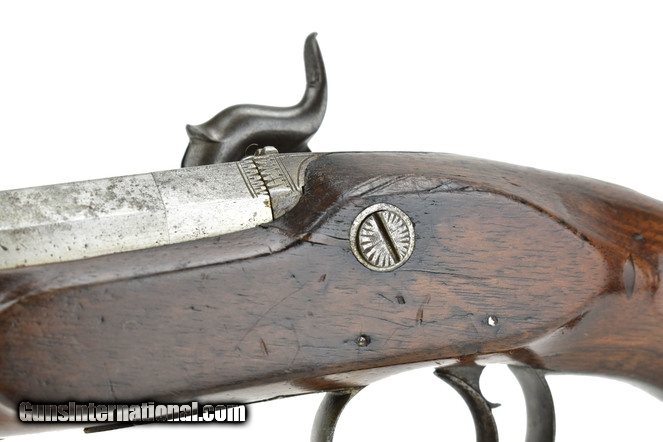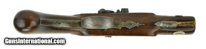 Description: British Percussion Pistol by Bishop & Tonks. Made circa 1830. .65 Caliber with a 4” barrel. Nice sharp gun with a gray patina that has scattered pitting. Stock is good with some repairs. Action works well. SOLD Antique: Yes |