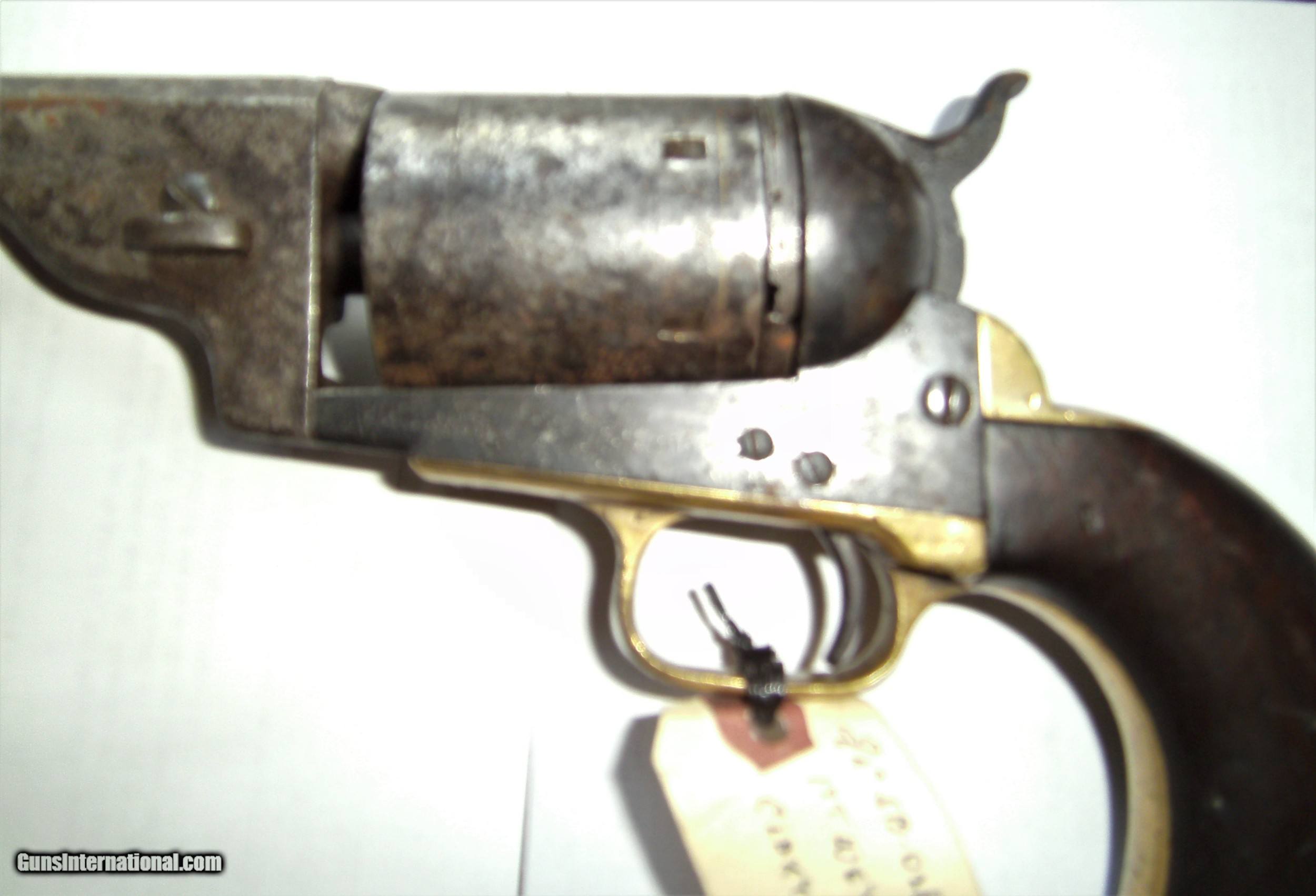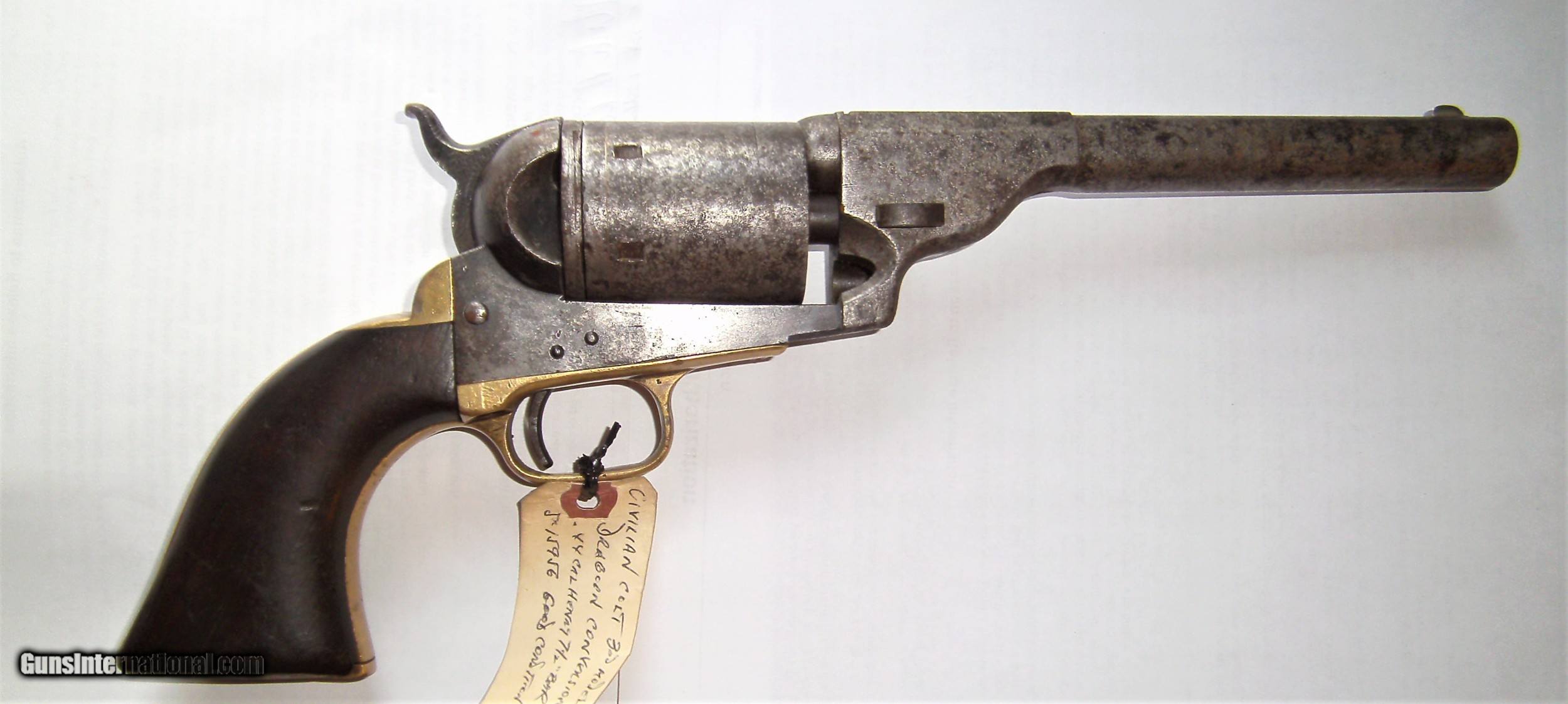 Description: Colt 3rd model Civilian Dragoon Conversion. .44 caliber, heavy 7 1/2" barrel Serial #15956 and all matching Finish worn, grips original Fine piece of civil war history SOLD |