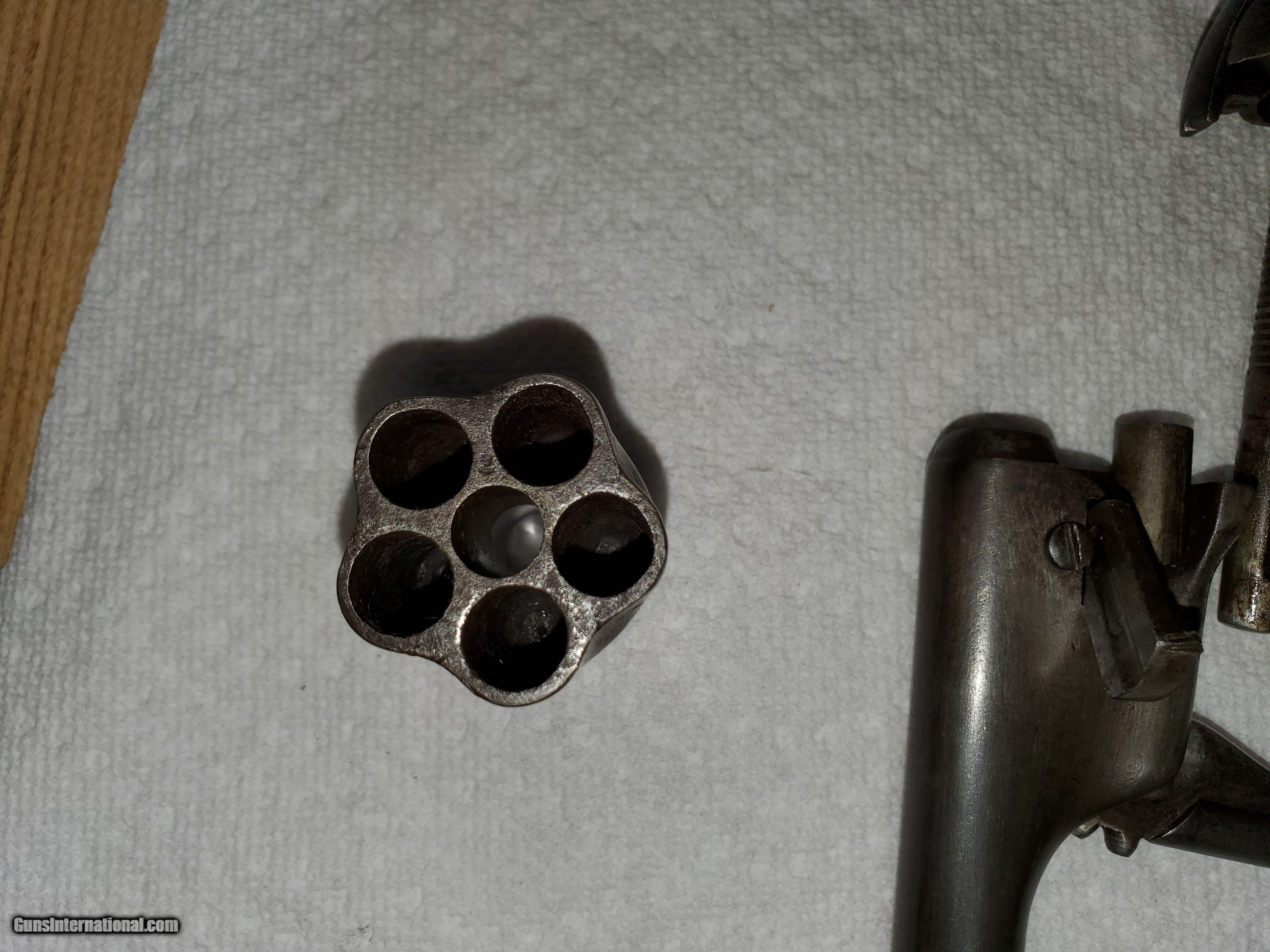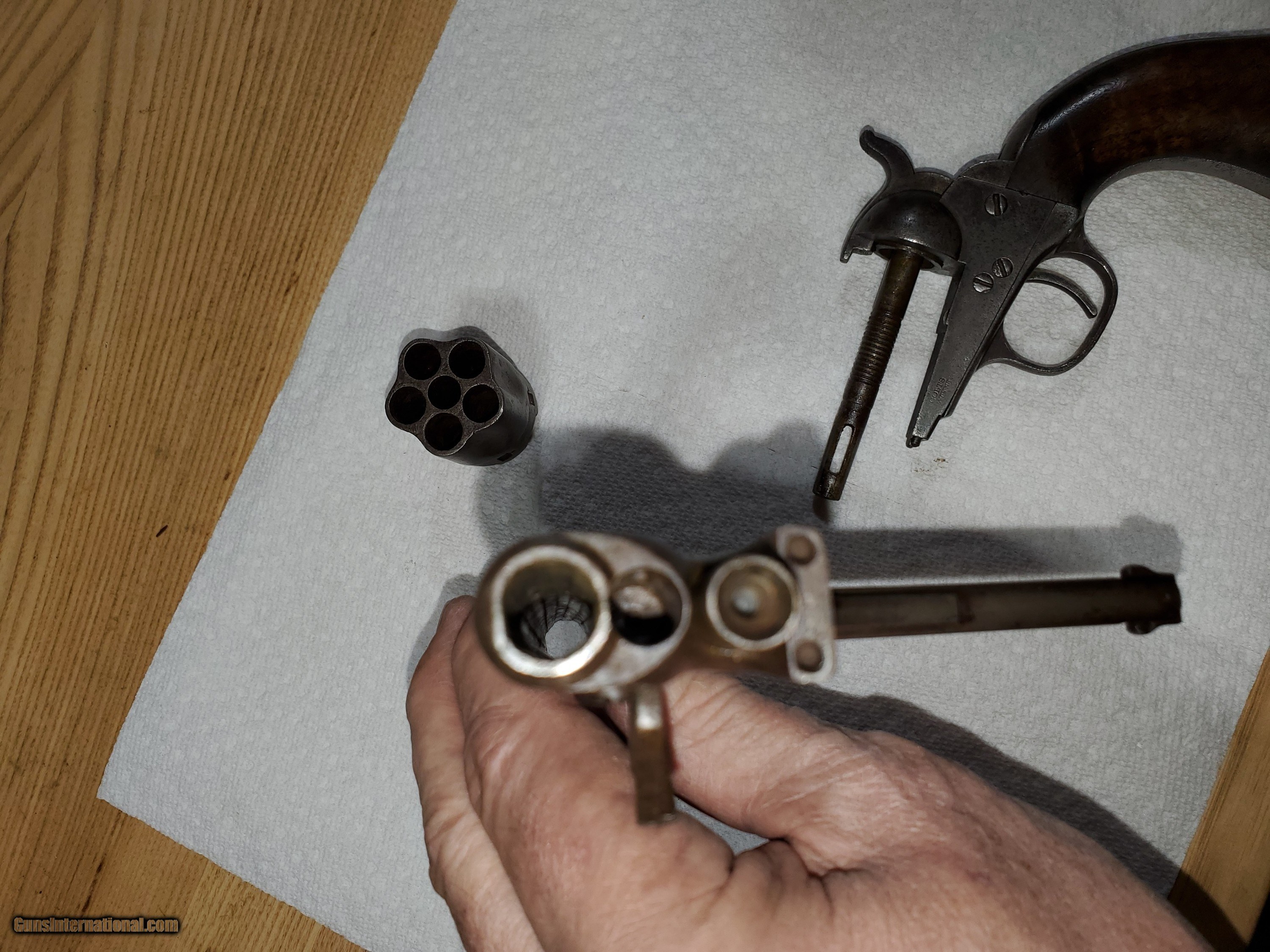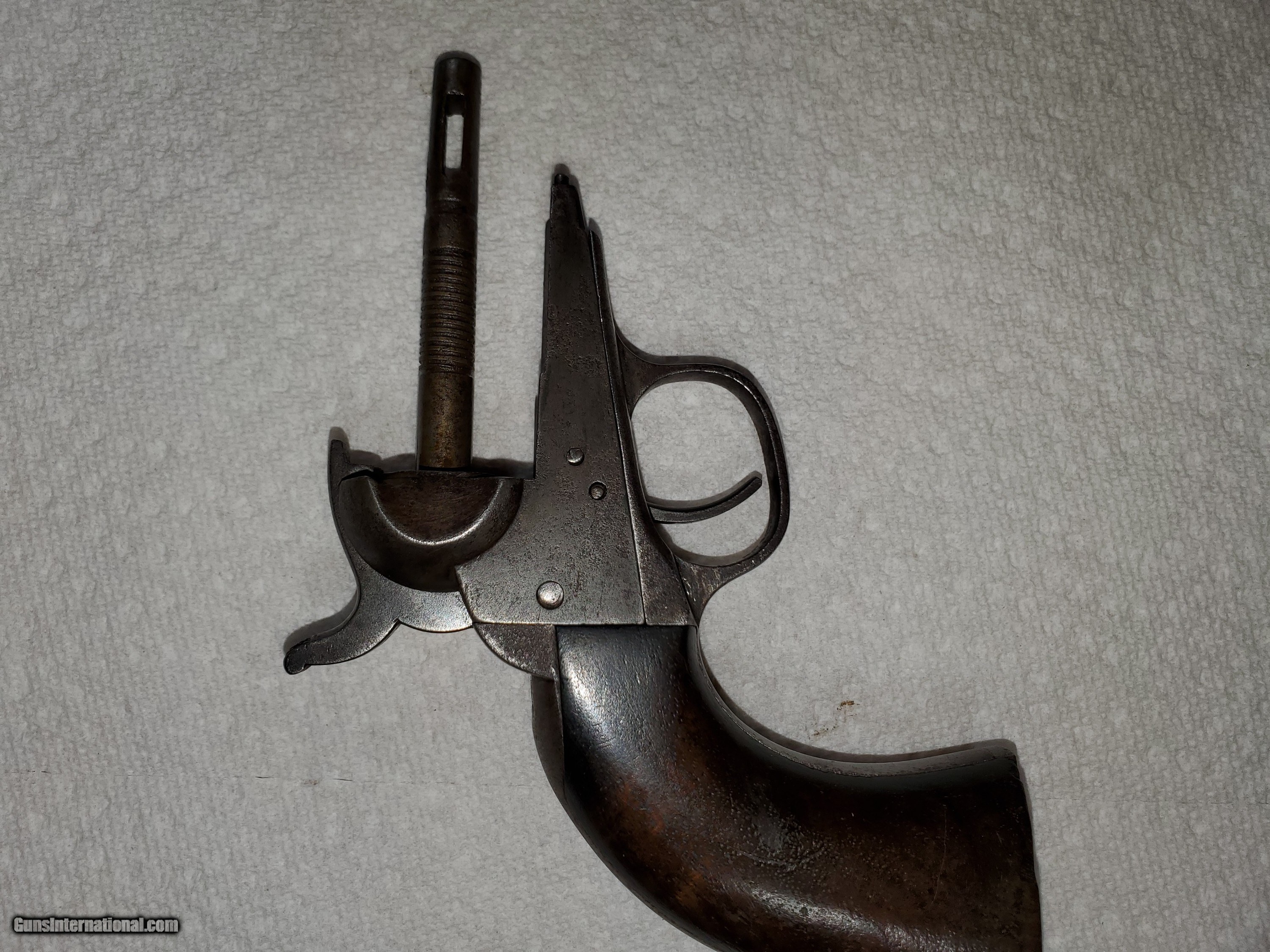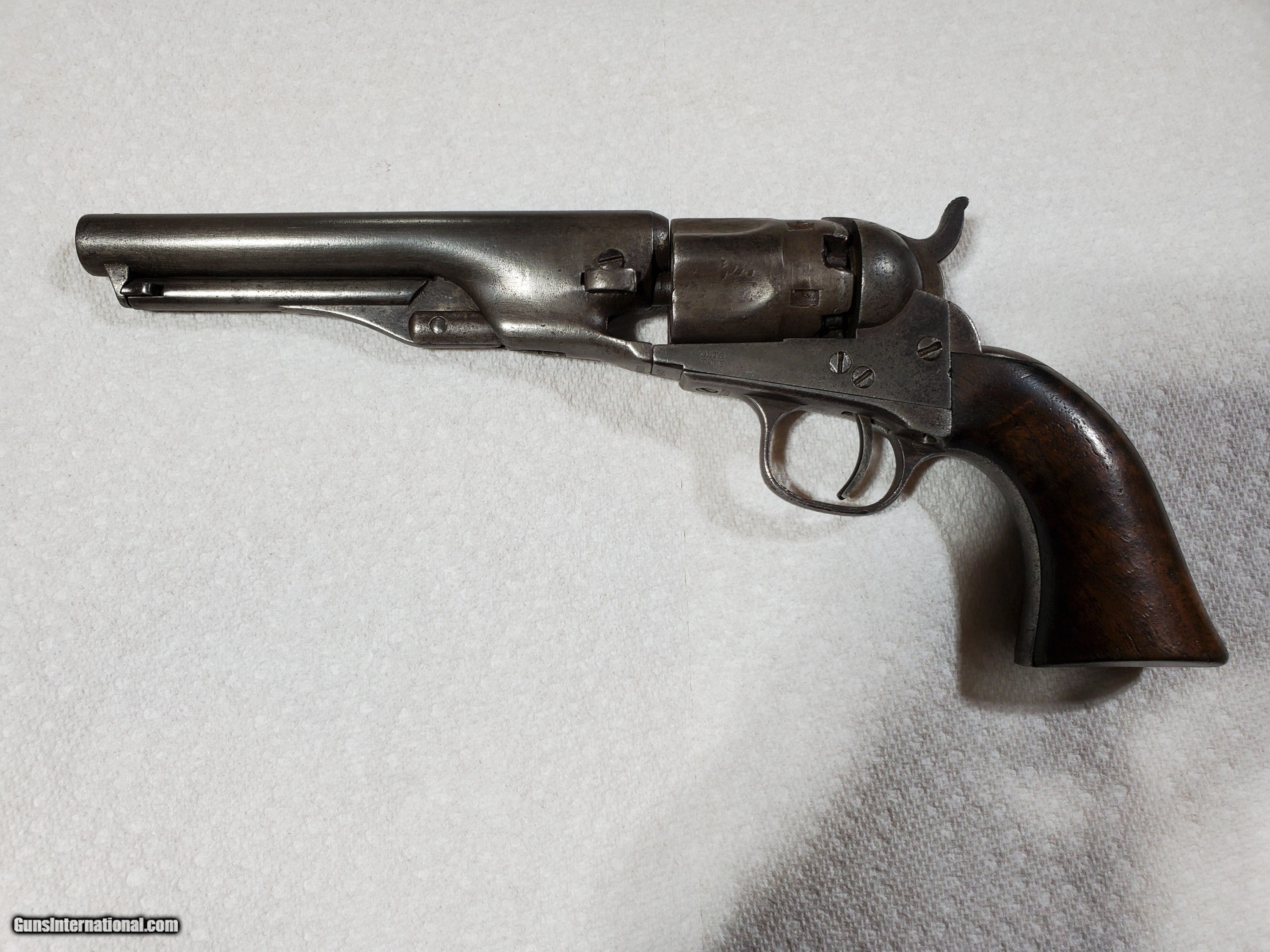 Description: Listed is an original untouched colt police percussion pistol with all matching numbers. Bore is fair and the pistol is tight a functions as it should. 36 cal. SOLD Antique: Yes Handgun Caliber: .32 S&W Long (.32 Colt New Police) Shotgun Gauge: 12 Gauge, 32 Gauge Manufacturer: Colt Model: Pocket Police Serial Number: 41417 Condition: Good Wood Condition: Good Bore Condition: Fair |