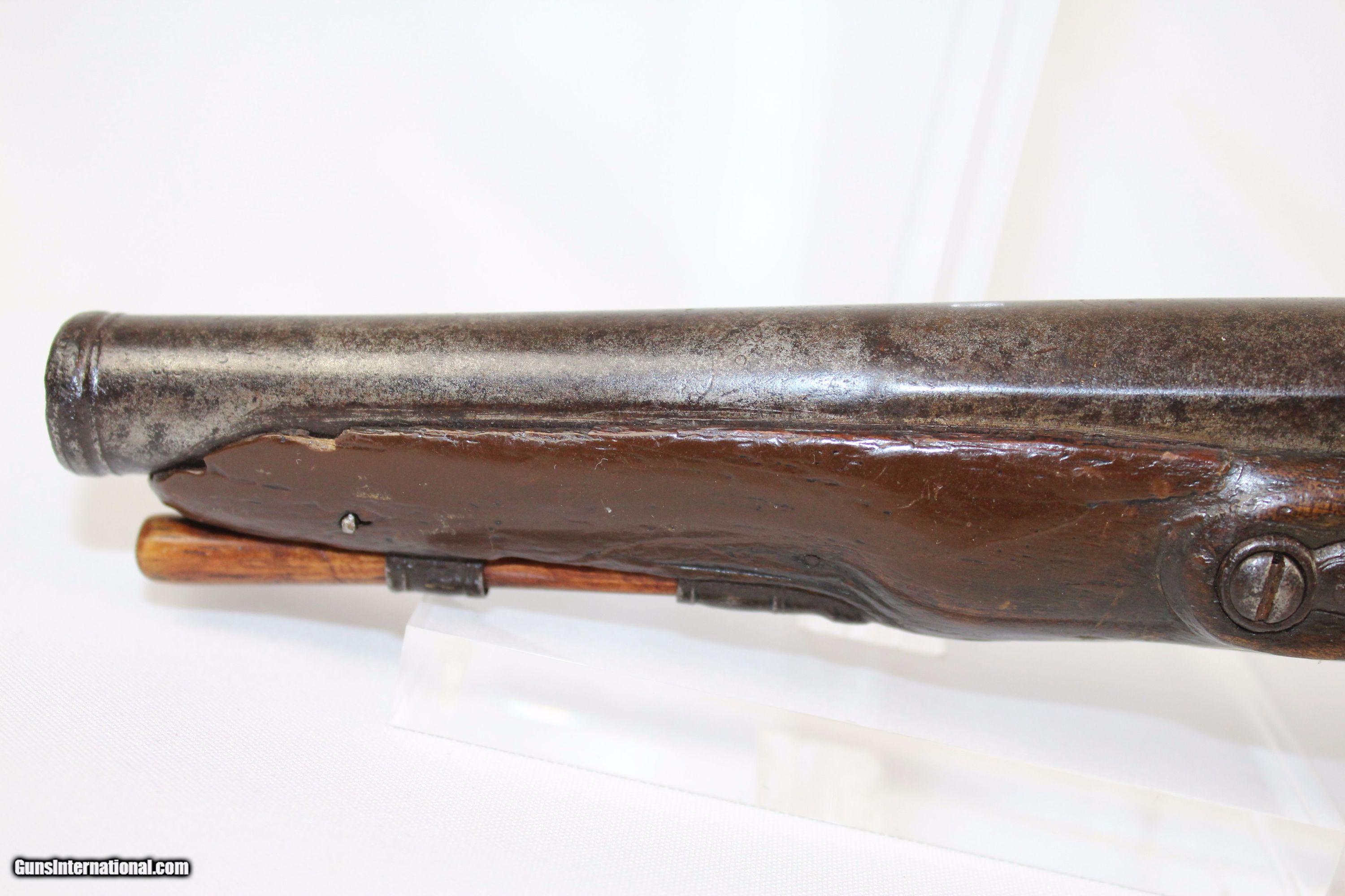 Description: Crested EUROPEAN Antique Percussion Pistol Made Circa 1830 with Interesting Crest Here we present an antique European Percussion Pistol, made circa 1830 in Europe. This smaller belt pistol bears a pewter crest in the wrist of the stock. A crown proof is located on the left side of the canon-shaped barrel. The overall condition is good. The metal parts are dark gray with age. The wooden stock shows extensive use, with a repair made to the 3-inch section near the muzzle. The bore is smooth and untouched. The action is excellent. Own the original! This is a legitimate antique and not a reproduction. Barrel is 6-1/2 inches. Caliber: .62 Percussion Overall condition as seen in photos. Very Fast. Very Safe. FREE SHIPPING WORLDWIDE. Delivered directly to your door by express mail! Guaranteed AUTHENTIC & Includes CERTIFICATE OF AUTHENTICITY. ancestryguns $800 #5165 SOLD Antique: Yes |