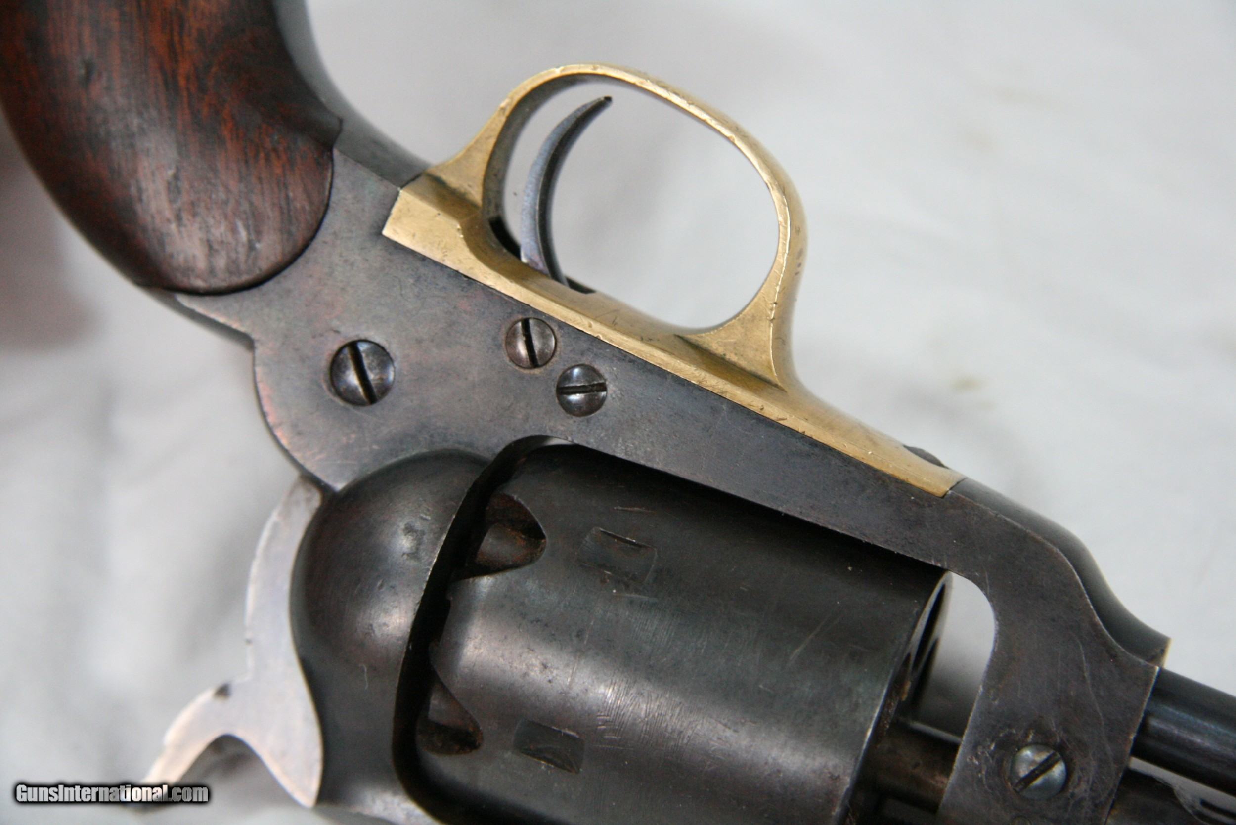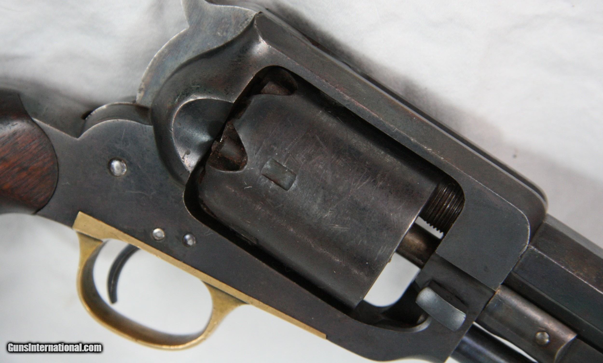 Description: This Second model Whitney revolver with the desirable 7 ¾ in. barrel was made in 1860. Although it is without military proof marks, it could well have been an officers’ private purchase due to its original condition. All serial numbers are matching. 20600 is marked on the barrel bottom, on the Cylinder, and two placed on the loading lever assembly. The lever retaining pin is marked “0”, matching as well. The steel surfaces show no rust or pitting mostly original finish. Upon close examination several areas of blue touch up can be seen on the barrel. The brass is unpolished with a mellow patina and the grips look very nice. Overall this piece has a very pleasing appearance. The action works fine, as new, and the bore is surprisingly good. Overall this is a nice example of a Civil War era revolver with history lost to time. .36 Cal. x 7 ¾” barrel, SN: 20600. Antique firearms, pre 1899 do not require a Federal License. For purchase, a copy of a Government Issued Identification (Drivers License, Etc), showing date of birth and current address will be required. Beaver Creek Arms TERMS & CONDITIONS Objective: As a collector of 35 years and Licensed Firearms Dealer since 1989 I have a clear definition of a satisfactory transaction. I will be paid as we agreed to, and you will be satisfied with your purchase. My goal is to establish a client list of satisfied repeat customers who will recommend me to other collectors. It’s just that simple. Exiled Saudi princes with secret funds needing change from an over paid purchase need not apply. Notice: ALL Federal, State, & Local firearms laws will be followed. I will take NO shortcuts in the process of a legal sale or transfer, so please don’t ask. SHIPPING: Normally shipments are made via U.S.P.S. Priority Mail, Insured, with a return receipt. Typical Packing, Shipping and Insurance cost for a handgun is $35.00, and for a Long Gun is $45.00. Checks are to be made out to: Steve Clark Mailed to: 380 Beaver Creek Rd, Dillsburg PA 17019 Availability: All items are in stock and available for immediate shipment. Please call or email and an Item will be held up to a week with your Name, Address, & Phone Number. Items marked Reserved are being held for awaiting payment or on layaway. If you are interested in a reserved item, please call or E-Mail to be placed on a backup list. FIREARMS: Antique firearms, pre 1899 do not require a Federal License. For purchase, a copy of a Government Issued Identification (Drivers License, Etc), showing date of birth and current address will be required. GUARANTEE: Your complete satisfaction is assured, see objective above. If you are not satisfied, please contact me within 3 days of receipt. Please don’t fire the weapon, safety, function and accuracy are NOT Guaranteed. Any weapon offered by Beaver Creek Arms is never test fired nor is there any representation the gun is functional and safe to fire. These guns are sold for collectors and only represented as used firearms that must be checked by a competent person, observe all the necessary safety precautions prior to attempting to load and fire one of these weapons RETURNS: Returns must be made within 3 days of receipt. They must be received in exactly the same condition with no parts exchanged. If it has been altered, damaged, or fired, a refund will not be made. Packing, shipping and insurance cost will not be refunded. All layaway purchases are returnable for merchandise credit only. Sales: All sales are made with the buyer’s full acceptance of the stated terms of sale. All sales are made in strict compliance with all Federal Firearms Laws. No items contained in thissite are offered for sale where prohibited by any Federal, State or Local laws. By ordering, the buyer certifies that their purchase will be in full compliance with all Federal, State and Local laws. All transactions shall be deemed to occur in Pennsylvania regardless whether by telephone, mail, internet or the physical location of the buyer. All transactions will be subject only to Federal and Pennsylvania State law. Any disputes will be resolved in a Pennsylvania Court. PAYMENT: Bank check, Personal check, and Money Orders are preferred. Visa and MasterCard are accepted with a 3% processing fee. For Visa and MasterCard orders please provide the account number, code number, expiration date, name on card, phone number and card billing address. This information can be phoned in, or E-Mailed. All orders must be paid in advance, C.O.D. orders are not accepted. Checks, both Bank and Personal must clear before the order will be shipped, usually a 2 week delay. LAYAWAYS: A 20% deposit is required. Balance is due in 60 days. Deposits are non-refundable and are forfeited after 60 days. Layaway sales are returnable for merchandise credit only. SALES TAX: Pennsylvania state sales tax is 6% for in state purchases. The payment of other states sales tax, if applicable, for shipped items is the buyers responsibility. DISCREET: Client information will remain Confidential. Your privacy is protected. SOLD Antique: Yes |