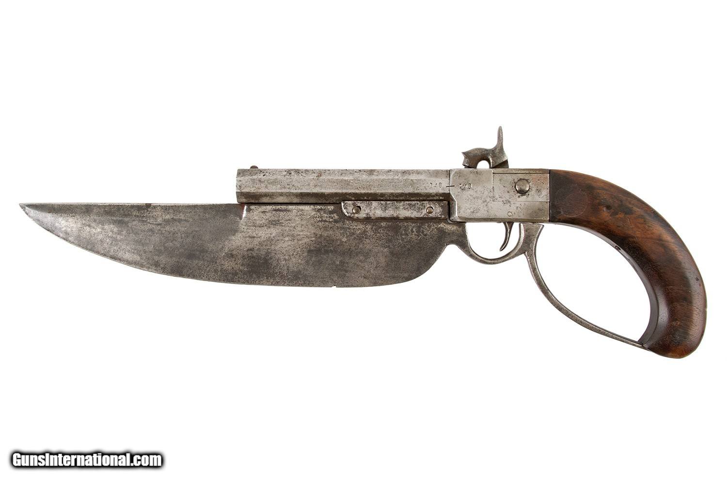 Description: 5" BARREL 10" BLADE UNDER BARREL HAND GUARD TOP OF BARREL SAYS ELGINS PATENT PM 1837 LEFT SIDE OF BARREL FRAME 148 MADE FOR WILKES EXPLORATION 1840 EXPEDITION 2 SETS OF PERIOD BOOKS AVAILABLE SOLD |