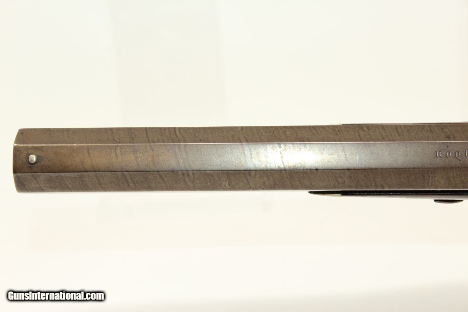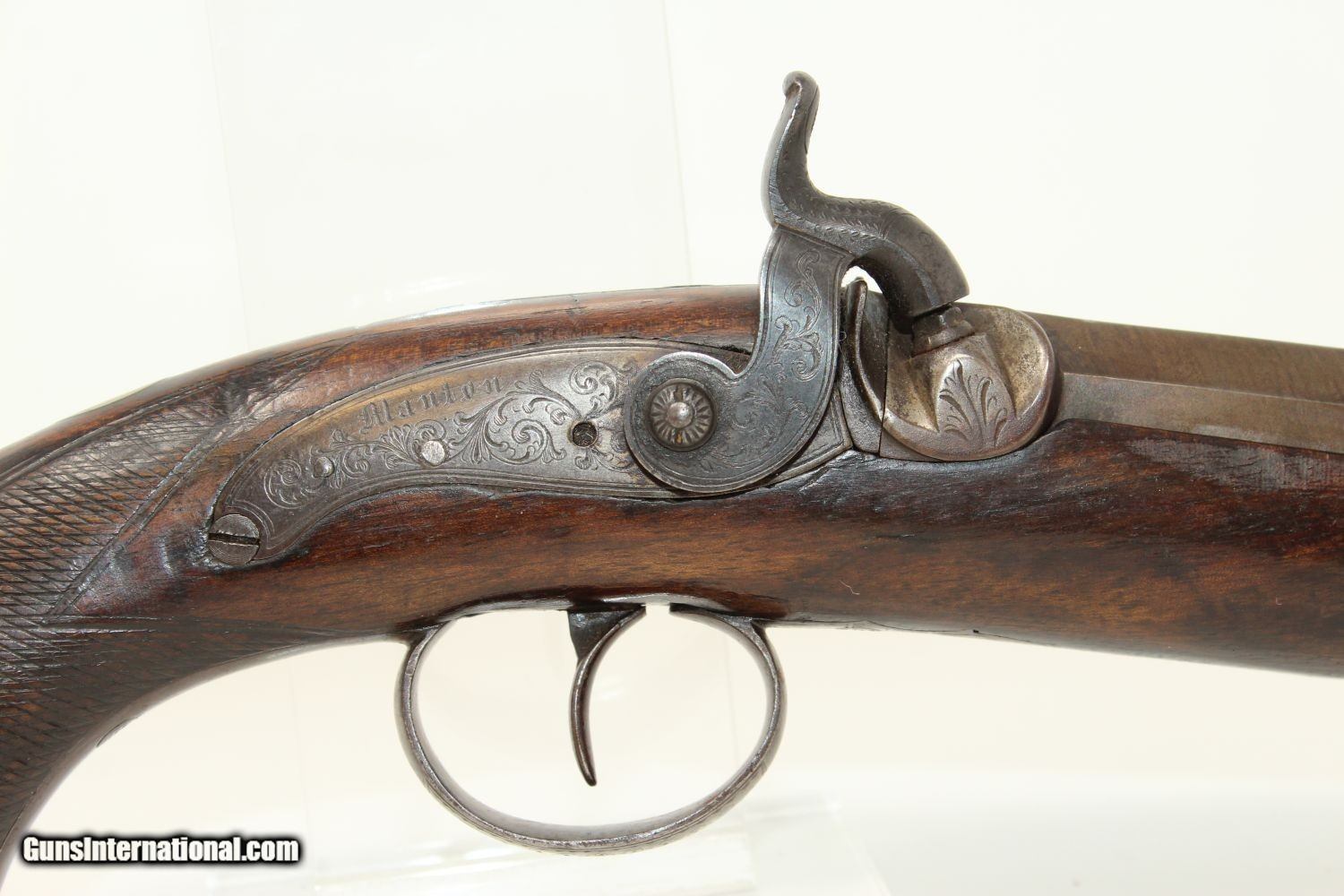 Engraved MANTON Antique BACK-ACTION Perc. Pistol Gold and German Silver Banded Mid-19th Century English Pistol