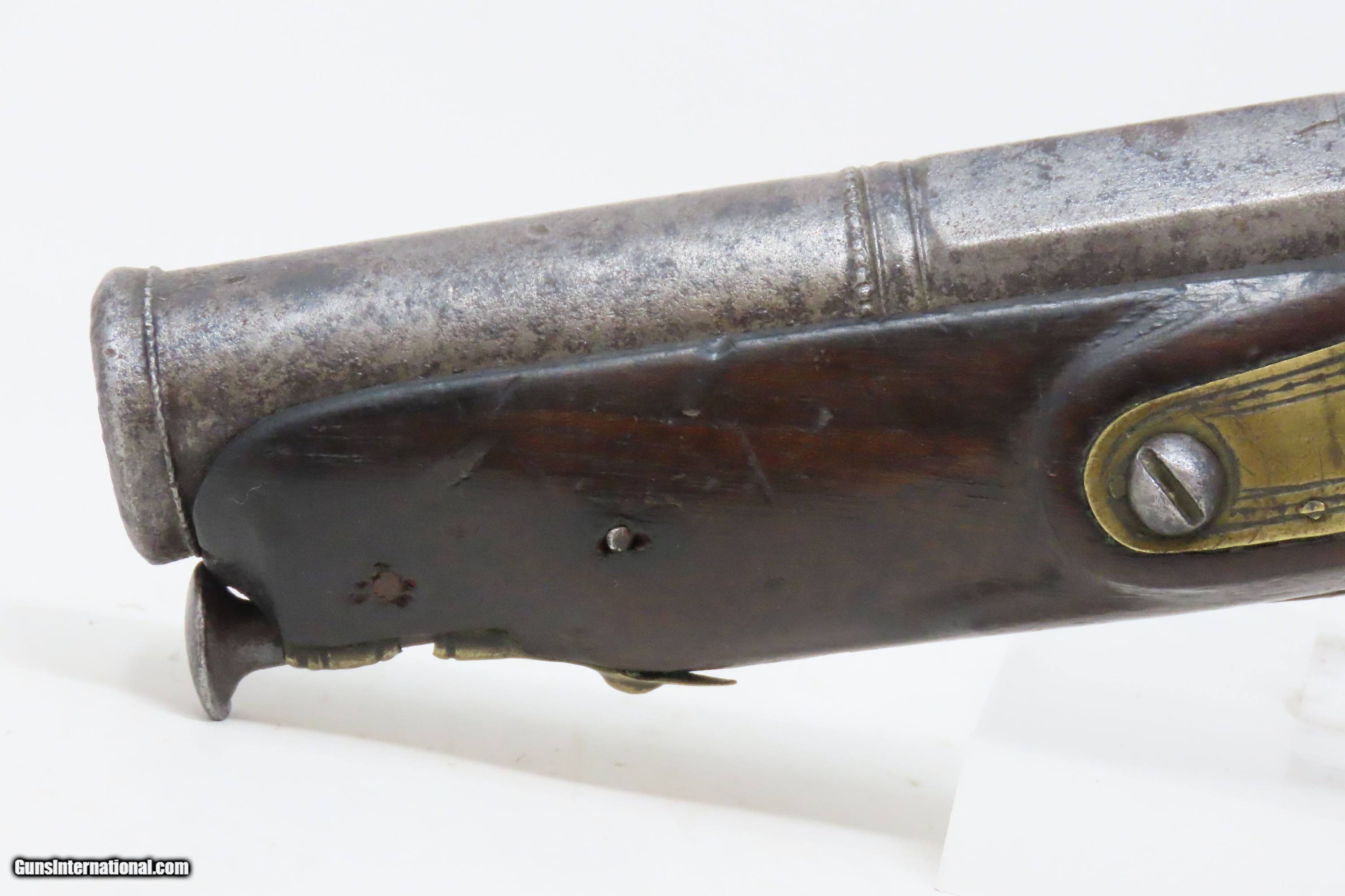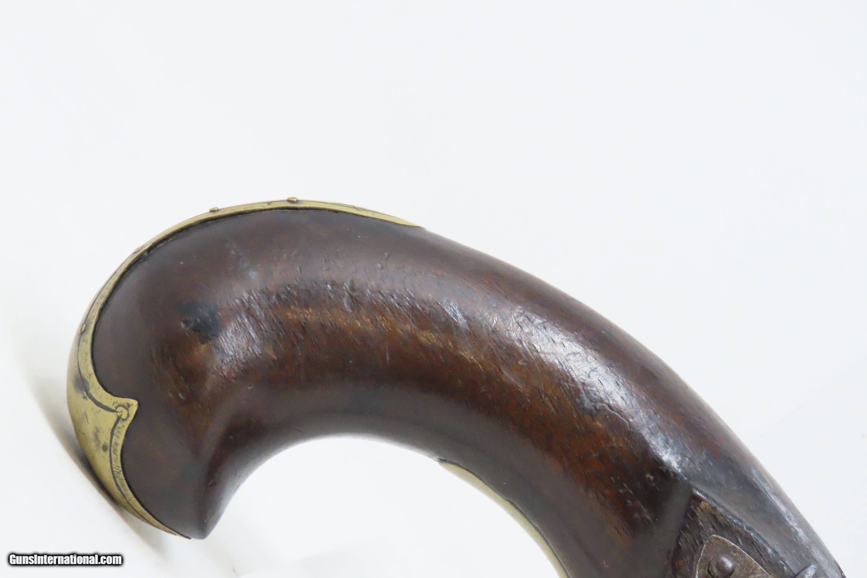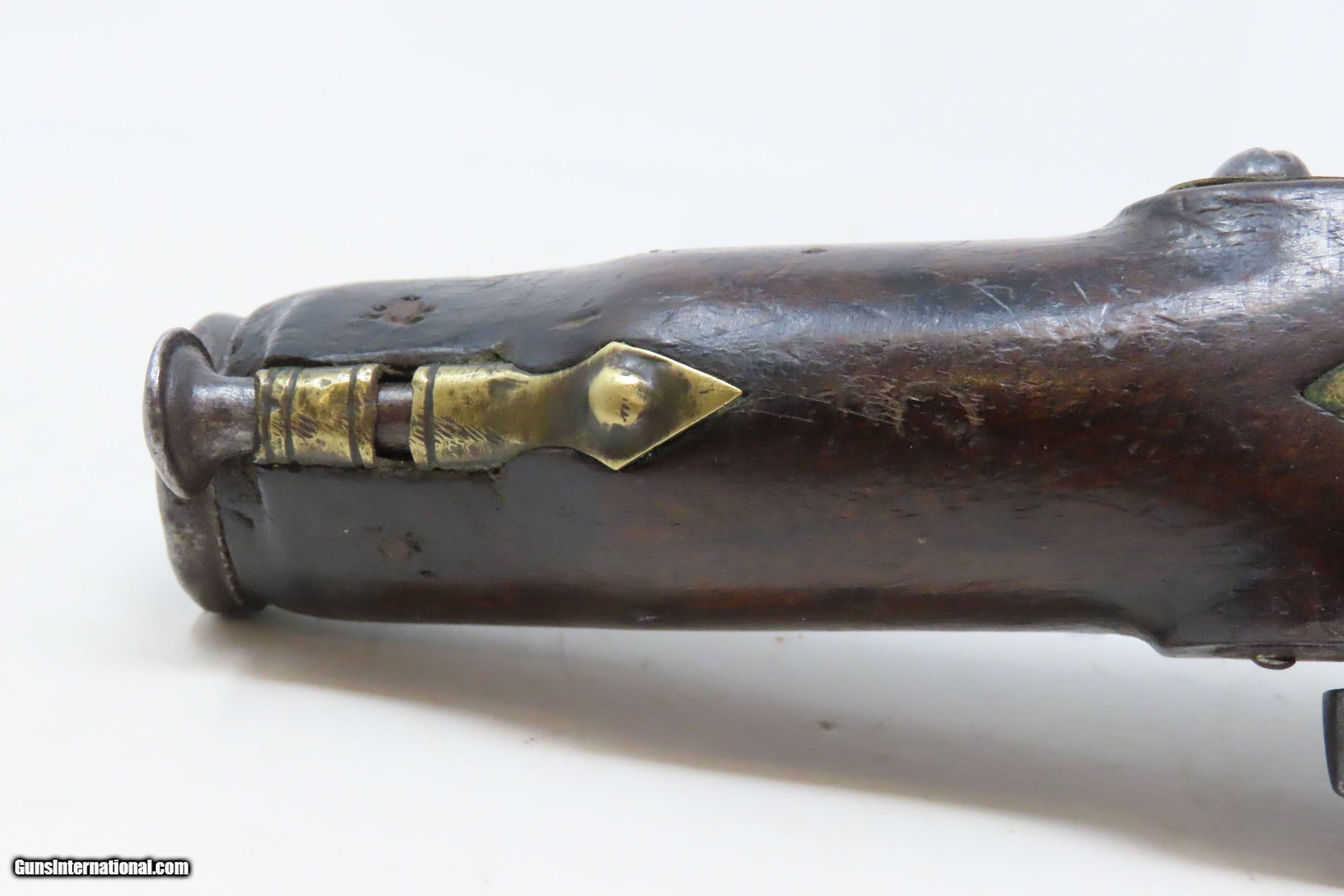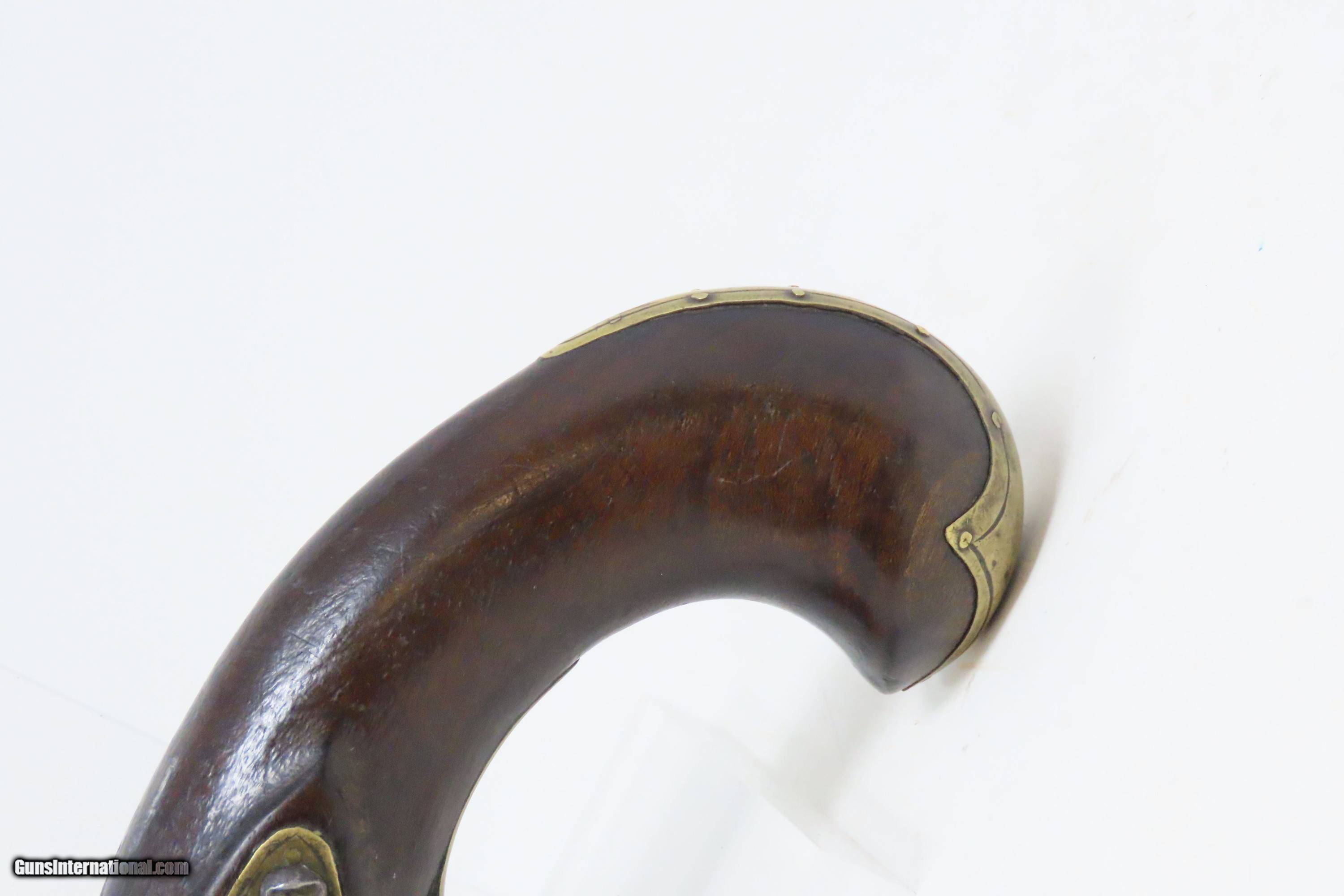 Description: Engraved PATILLA MIQUELET “Militia” Percussion Belt/Pocket Pistol EUROPEAN Early to Mid-19th Century Miquelet Pistol Here we present an antique Patilla, or “Militia” Miquelet Percussion Belt Pistol, made likely in mainland Europe circa the early to mid-19th century. The miquelet was an early and sturdy form of flintlock popular throughout Europe and the Ottoman Empire from the seventeenth into the early nineteenth century. A “Miquelet” is a type of flintlock developed in Spain. It is a distinctive form of snaplock, originally as a flint-against-steel ignition form, once prevalent in Spain, Portugal, Italy, the Balkans, North Africa and the Ottoman Empire from the late 16th to the mid-19th centuries. The miquelet lock, with its combined battery and pan cover was the final innovative link that made the flintlock mechanism possible. It proved to be both the precursor and companion to what we now call the "true" flintlock. The overall condition is good. Strong action. The bore is in good shape for its age. Some chipping is present in front of the lock, otherwise the wood is in good shape. Lightly engraved side plate. Own the original! This is a legitimate antique and not a reproduction. Barrel is 4-1/2 inches. Caliber: .71 Overall condition as seen in photos. Very Fast. Very Safe. FREE SHIPPING WORLDWIDE. Delivered directly to your door by express mail! Guaranteed AUTHENTIC & Includes CERTIFICATE OF AUTHENTICITY. ancestryguns $1200 #233686 SOLD Antique: Yes |