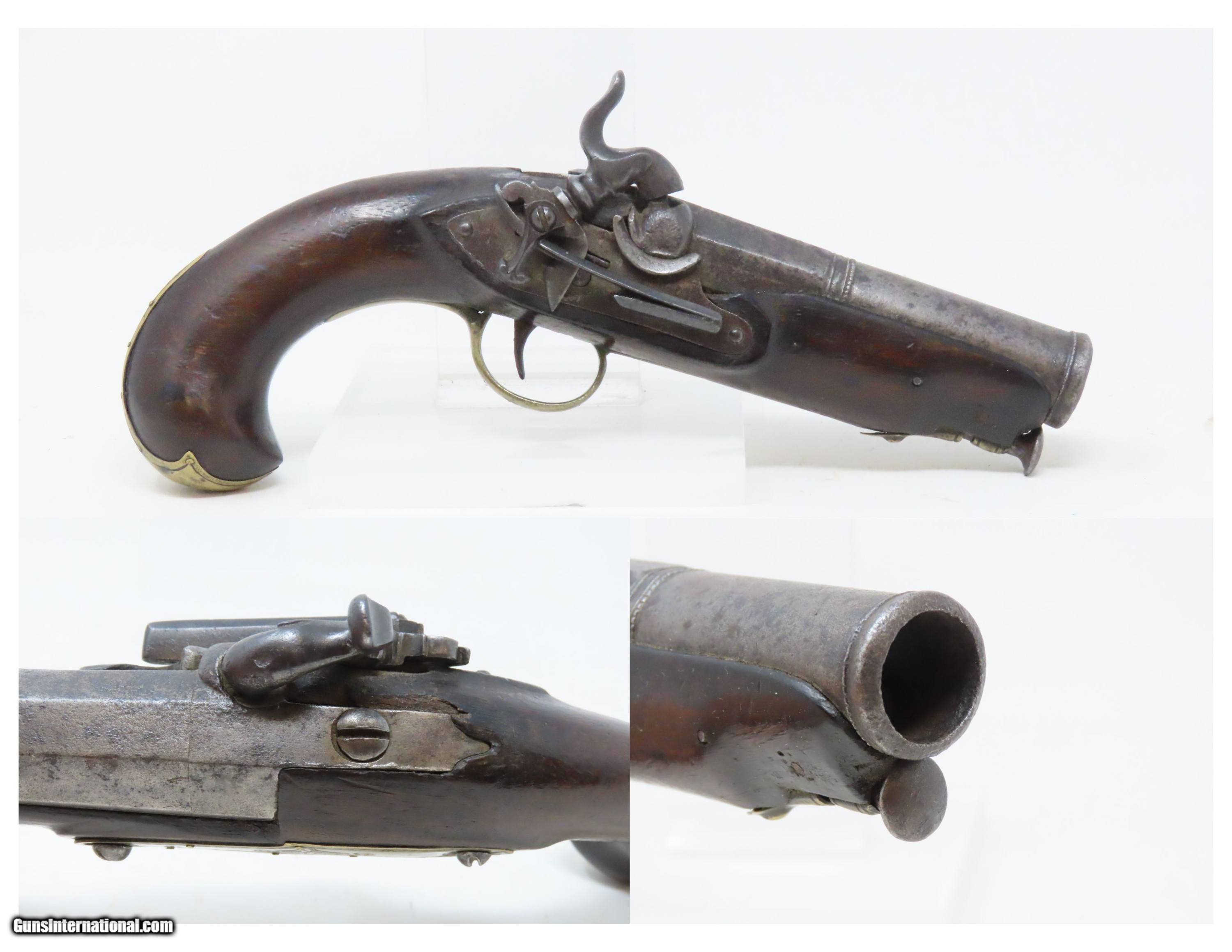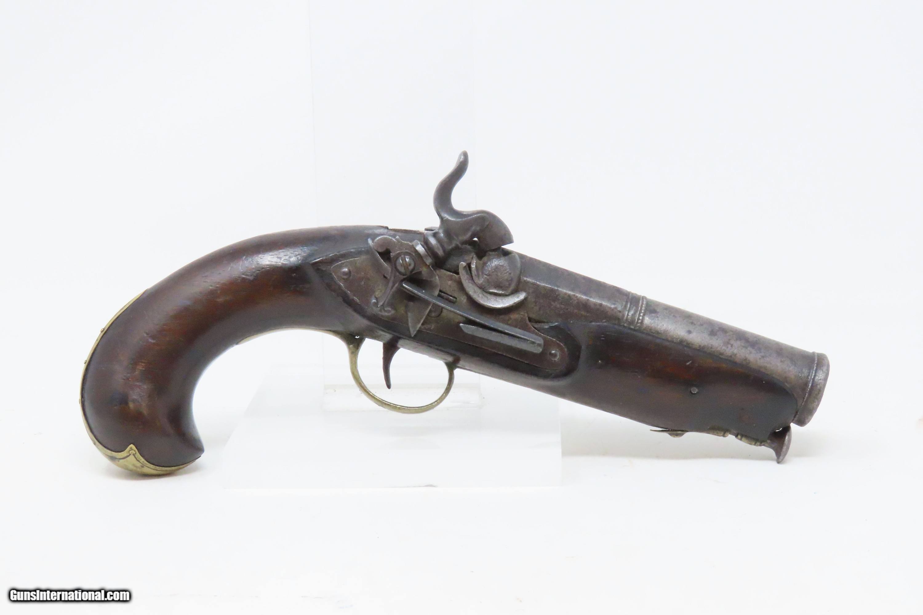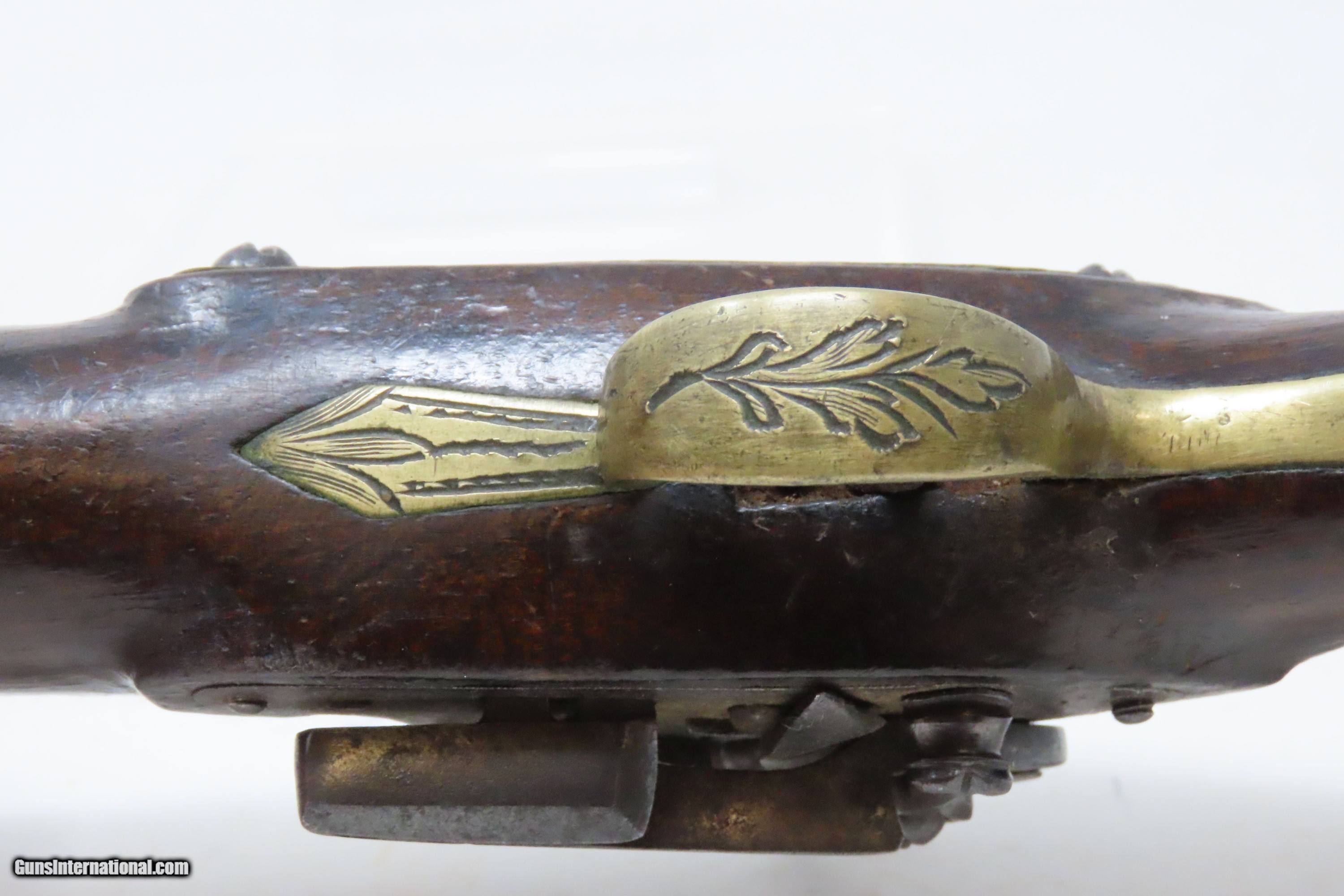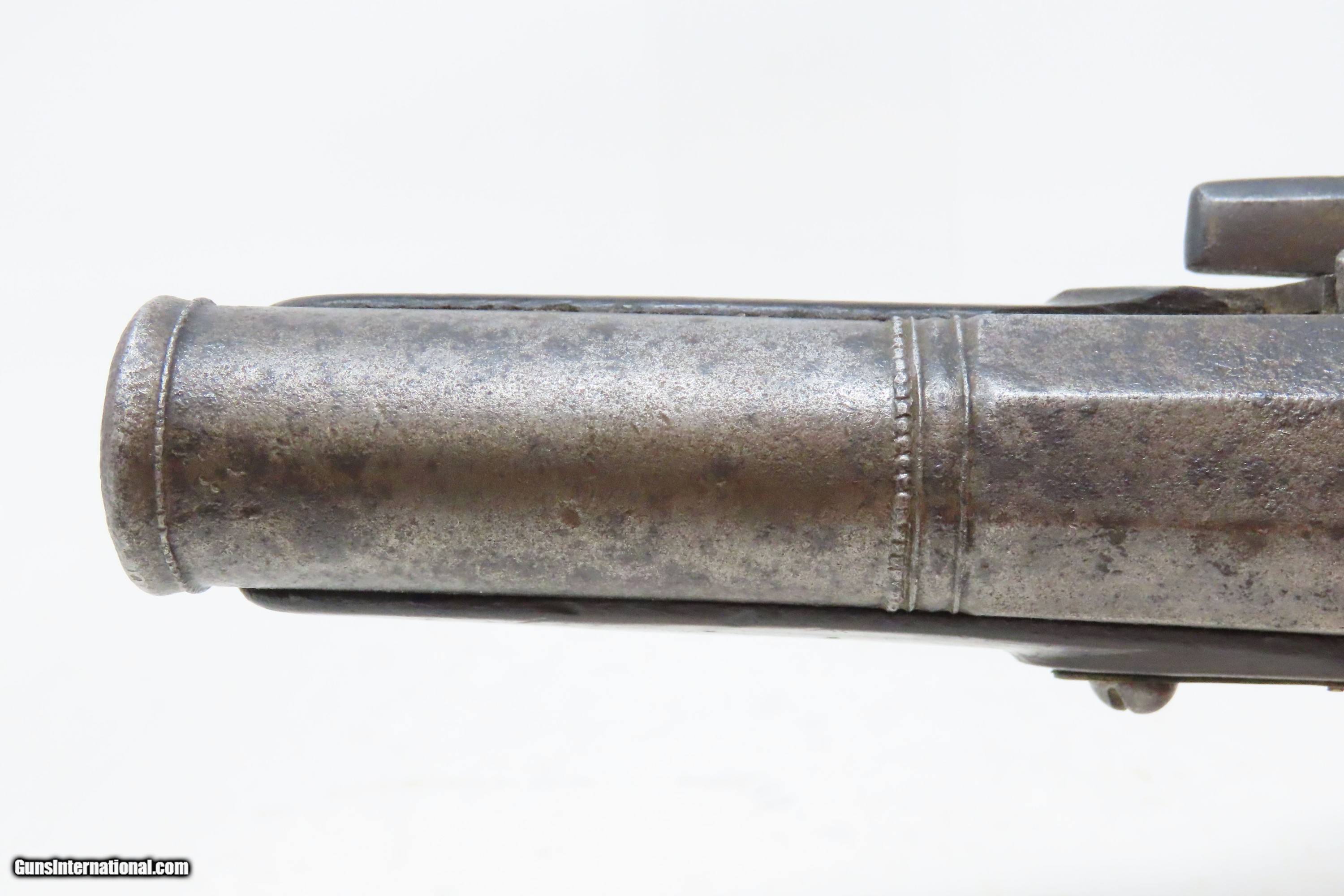 Description: Engraved PATILLA MIQUELET “Militia” Percussion Belt/Pocket Pistol EUROPEAN Early to Mid-19th Century Miquelet Pistol Here we present an antique Patilla, or “Militia” Miquelet Percussion Belt Pistol, made likely in mainland Europe circa the early to mid-19th century. The miquelet was an early and sturdy form of flintlock popular throughout Europe and the Ottoman Empire from the seventeenth into the early nineteenth century. A “Miquelet” is a type of flintlock developed in Spain. It is a distinctive form of snaplock, originally as a flint-against-steel ignition form, once prevalent in Spain, Portugal, Italy, the Balkans, North Africa and the Ottoman Empire from the late 16th to the mid-19th centuries. The miquelet lock, with its combined battery and pan cover was the final innovative link that made the flintlock mechanism possible. It proved to be both the precursor and companion to what we now call the "true" flintlock. The overall condition is good. Strong action. The bore is in good shape for its age. Some chipping is present in front of the lock, otherwise the wood is in good shape. Lightly engraved side plate. Own the original! This is a legitimate antique and not a reproduction. Barrel is 4-1/2 inches. Caliber: .71 Overall condition as seen in photos. Very Fast. Very Safe. FREE SHIPPING WORLDWIDE. Delivered directly to your door by express mail! Guaranteed AUTHENTIC & Includes CERTIFICATE OF AUTHENTICITY. ancestryguns $1200 #233686 SOLD Antique: Yes |