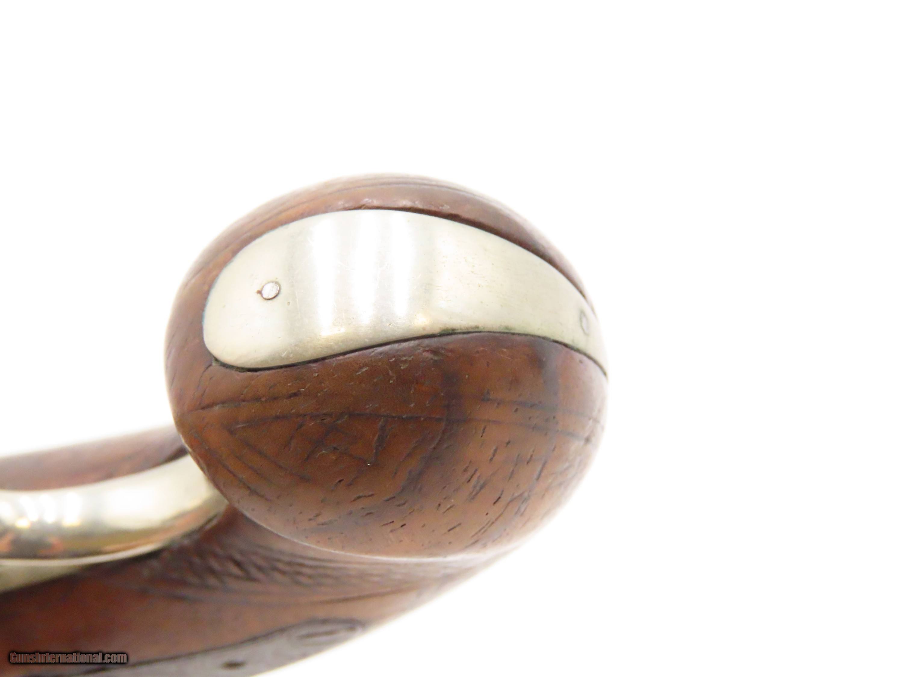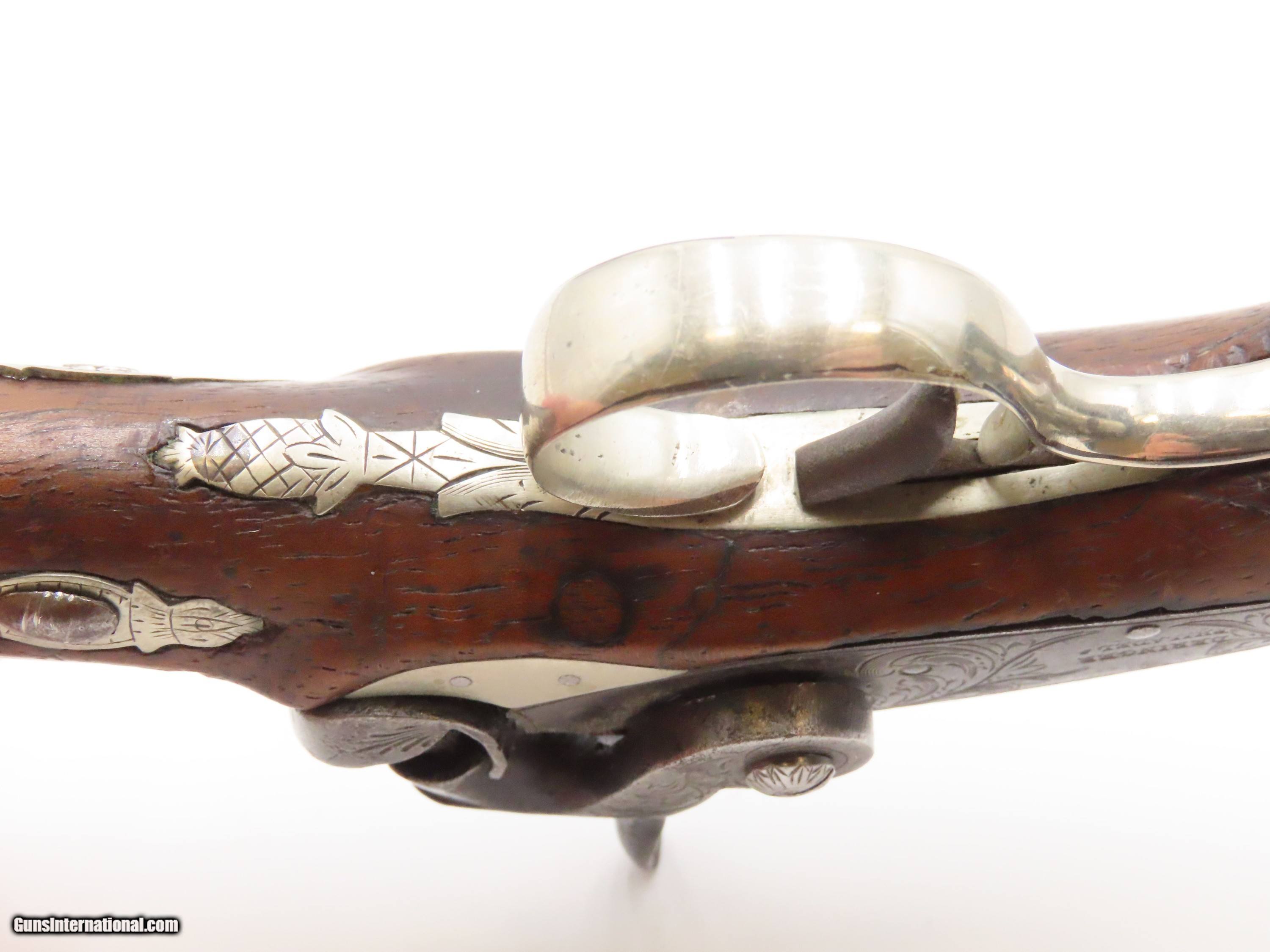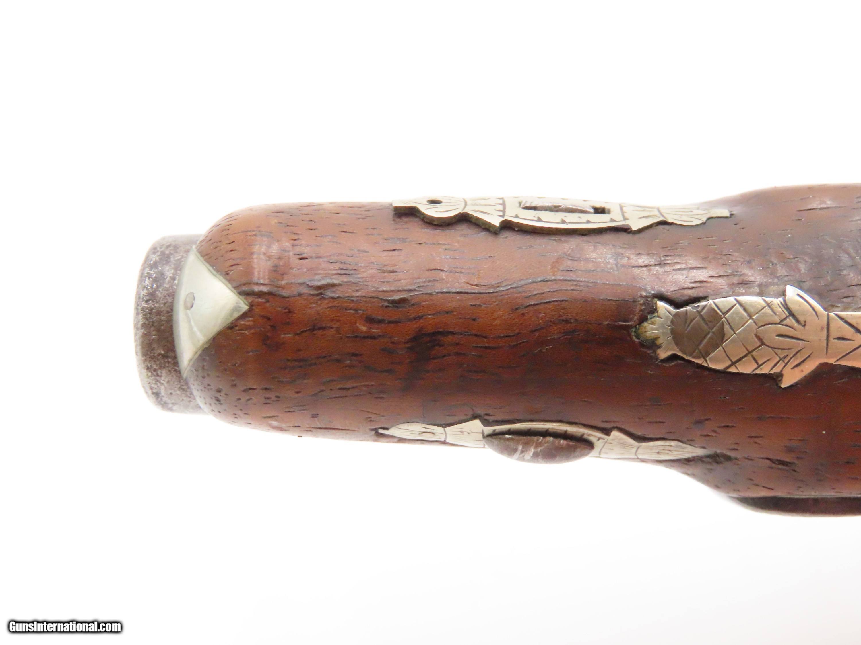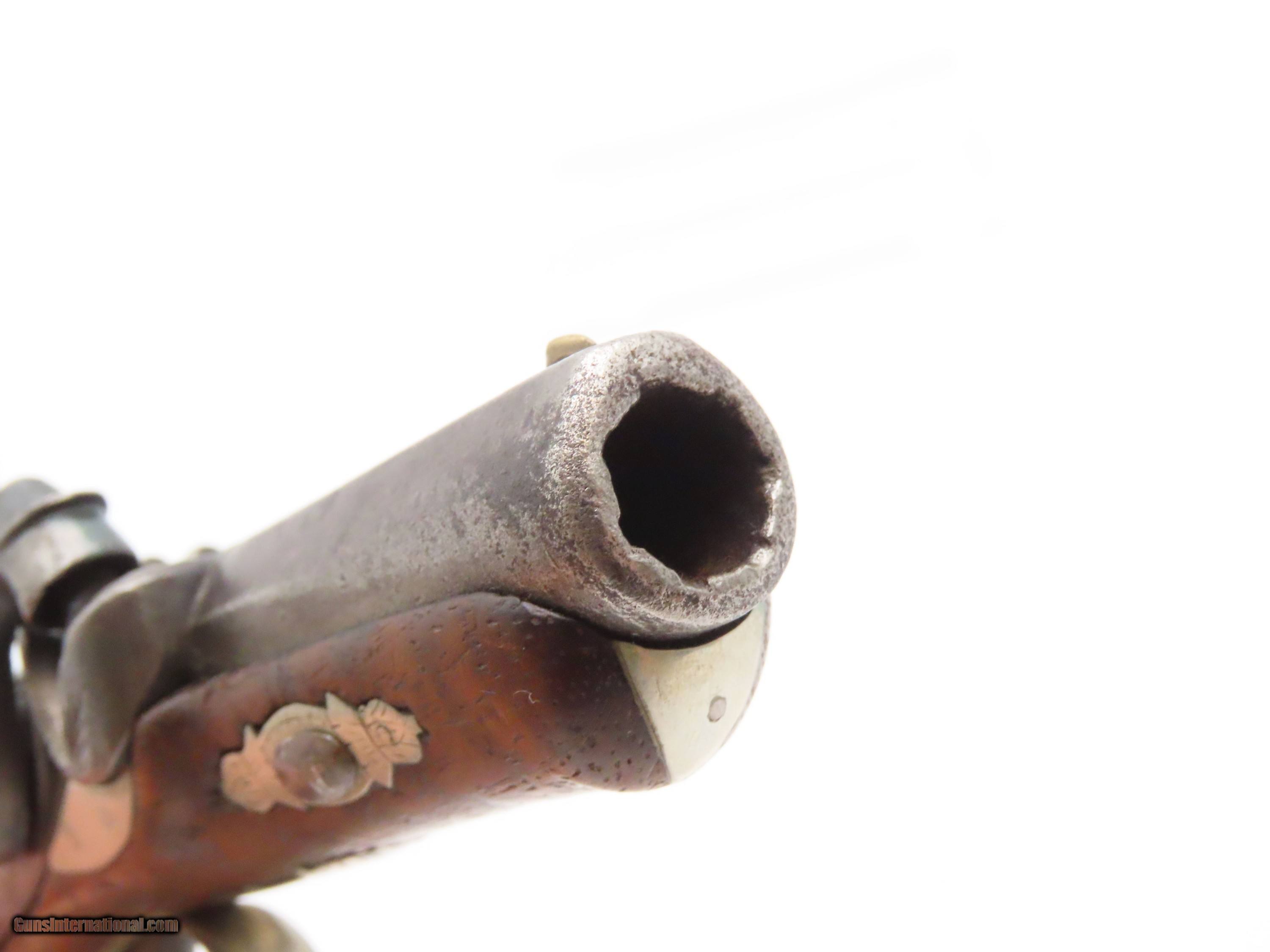 Description: ENGRAVED & SILVER Mounted Antique DERINGER Percussion Pistol KILLED LINCOLN Henry Deringer’s Famous Pocket Pistol GERMAN SILVER Here we present an antique Henry Deringer Percussion Pocket Pistol, made circa the 1850s in Philadelphia, Pennsylvania. President Abraham Lincoln was shot and killed with one of Henry Deringer’s pocket sized percussion pistols, the night John Wilkes Booth revenged the South at the Ford Theater. Henry Deringer was a very successful Pennsylvanian gunsmith who started his own company in his early twenties, circa 1809. It was not until the 1850s that his prototypical “Deringer” percussion pistol became extremely popular. Once it did become popular, the basic design was copied in dozens of different shops. Not only was it copied, but Deringer’s good name was stamped on guns made by others, some of them not up to the quality standards of Deringer himself. The inventor was apparently very worried about protecting his good name, so he pursued and sued any of the counterfeiters that he could find and warned the buying public to beware of his spurious imitators. This pistol has all the typical Henry Deringer style markings including a sunburst “P” on the left side of the breech and "DERINGER PHILADEL’A” on the lock plate and the top of the breech. The overall condition is good. Strong action. The bore is in good shape for its age with serviceable rifling. Solid grip. A repaired split wraps the underside of the forend, remains stable. A this crack is present to the right of the barrel tang. Markings are legible. Lightly engraved. The lock is noy fully flush with the stock, nor the barrel are the breech. Own the original! This is a legitimate antique and not a reproduction. Barrel is 1-7/8 inches. Caliber: .40 Percussion Overall condition as seen in photos. Very Fast. Very Safe. FREE SHIPPING WORLDWIDE. Delivered directly to your door by express mail! Guaranteed AUTHENTIC & Includes CERTIFICATE OF AUTHENTICITY. ancestryguns $1900 #250227 Antique: Yes Price: $1,900.00 Buy Now Pay with