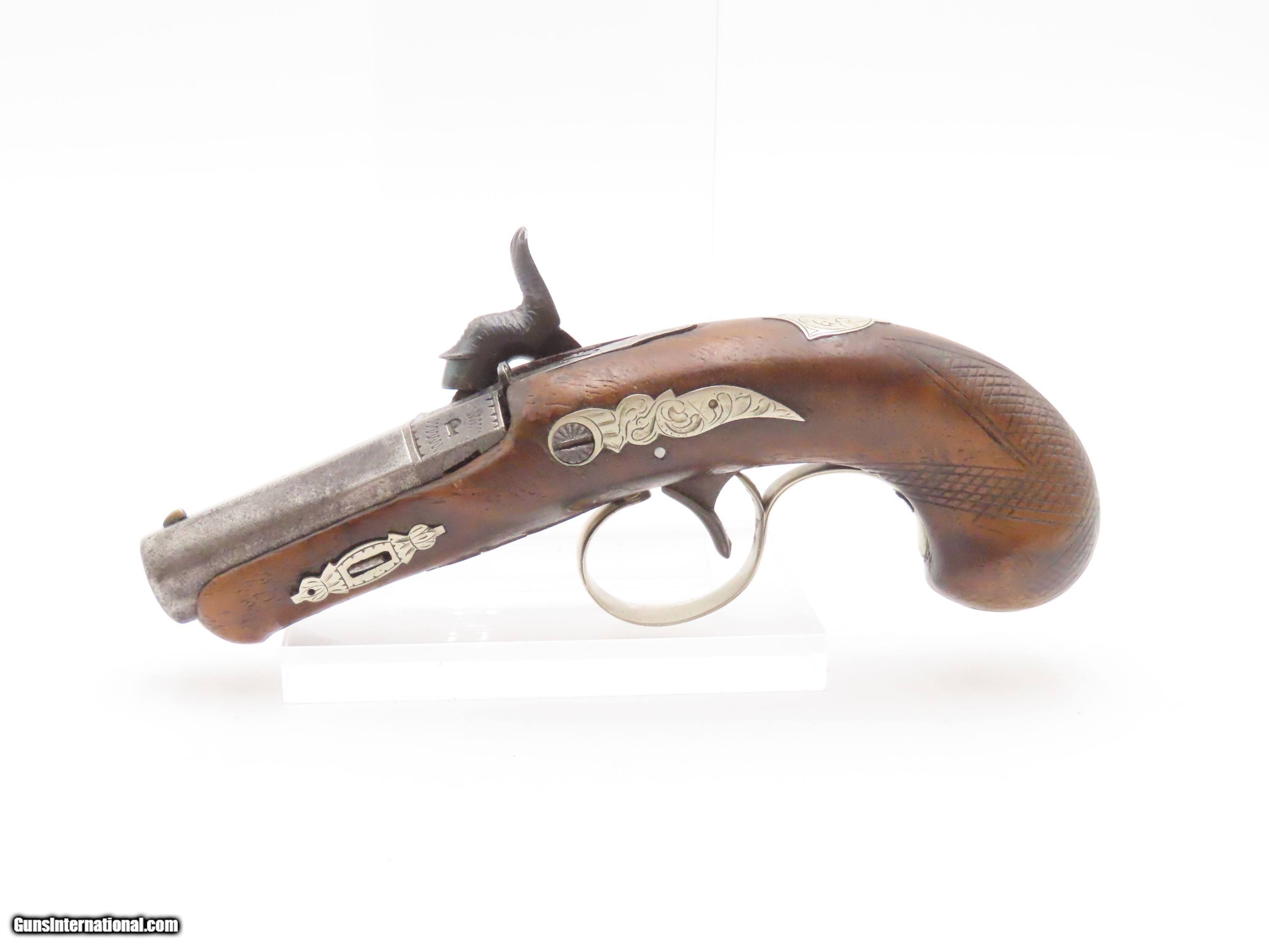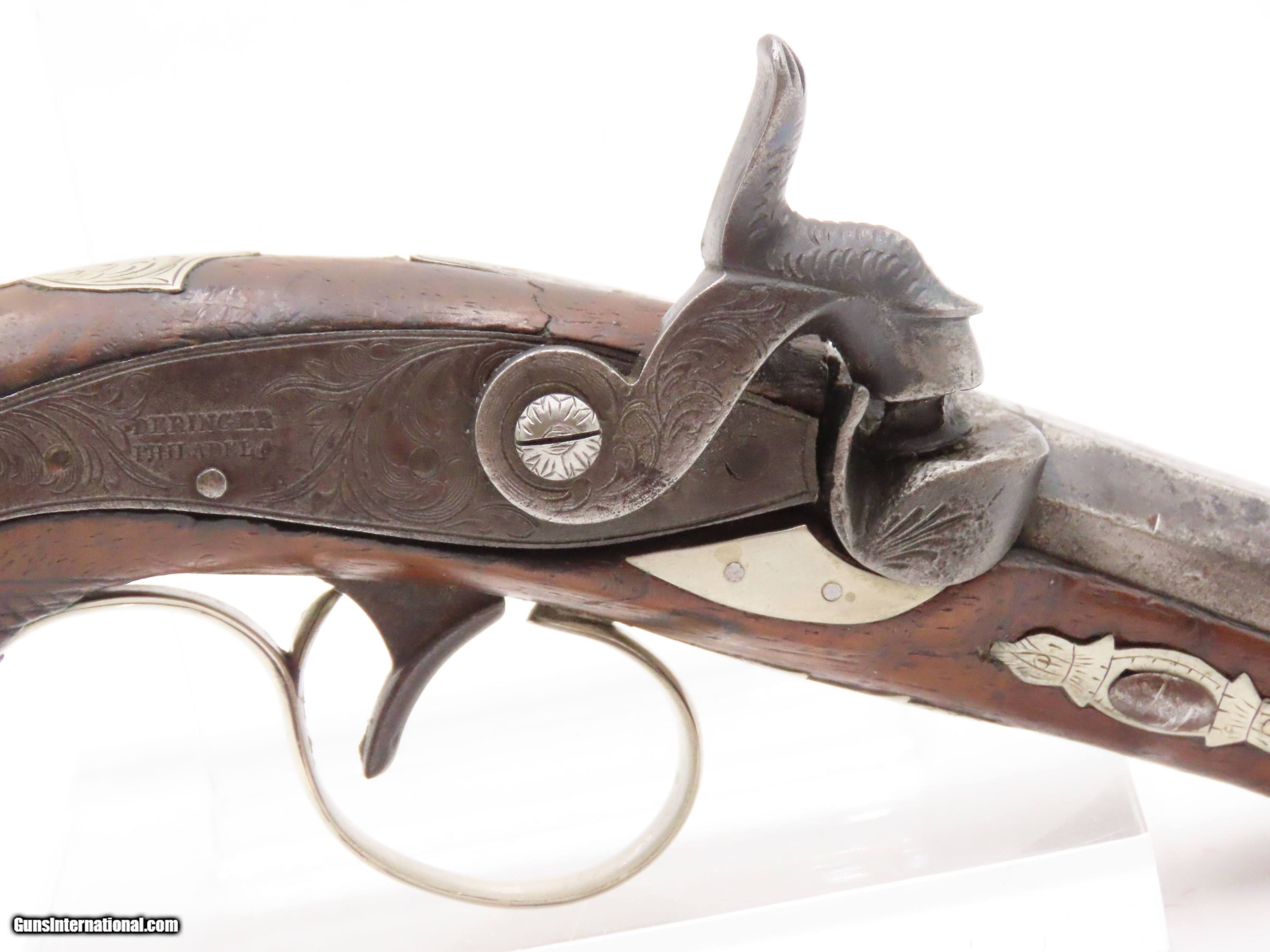 ENGRAVED & SILVER Mounted Antique DERINGER Percussion Pistol KILLED LINCOLN Henry Deringer’s Famous Pocket Pistol GERMAN SILVER