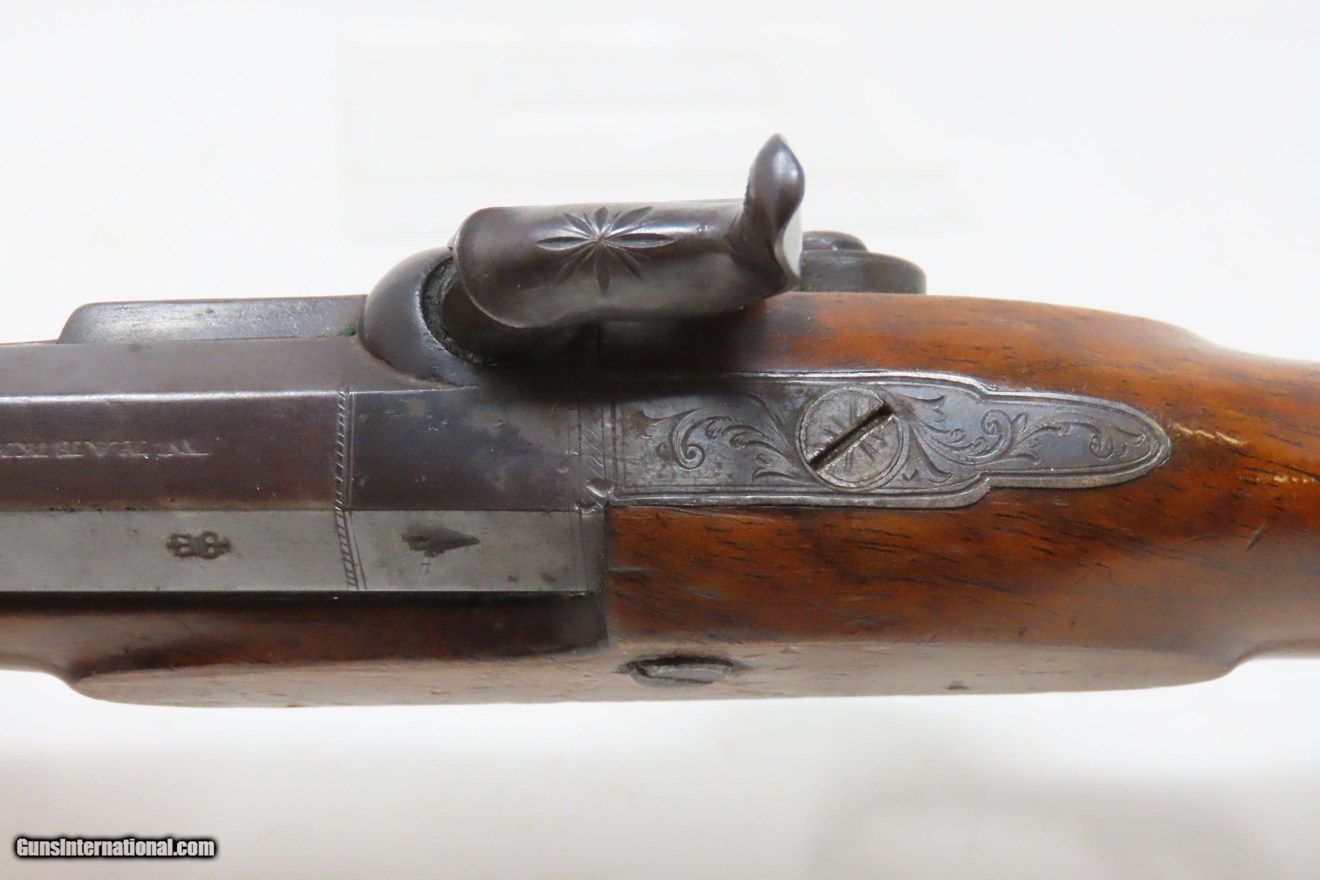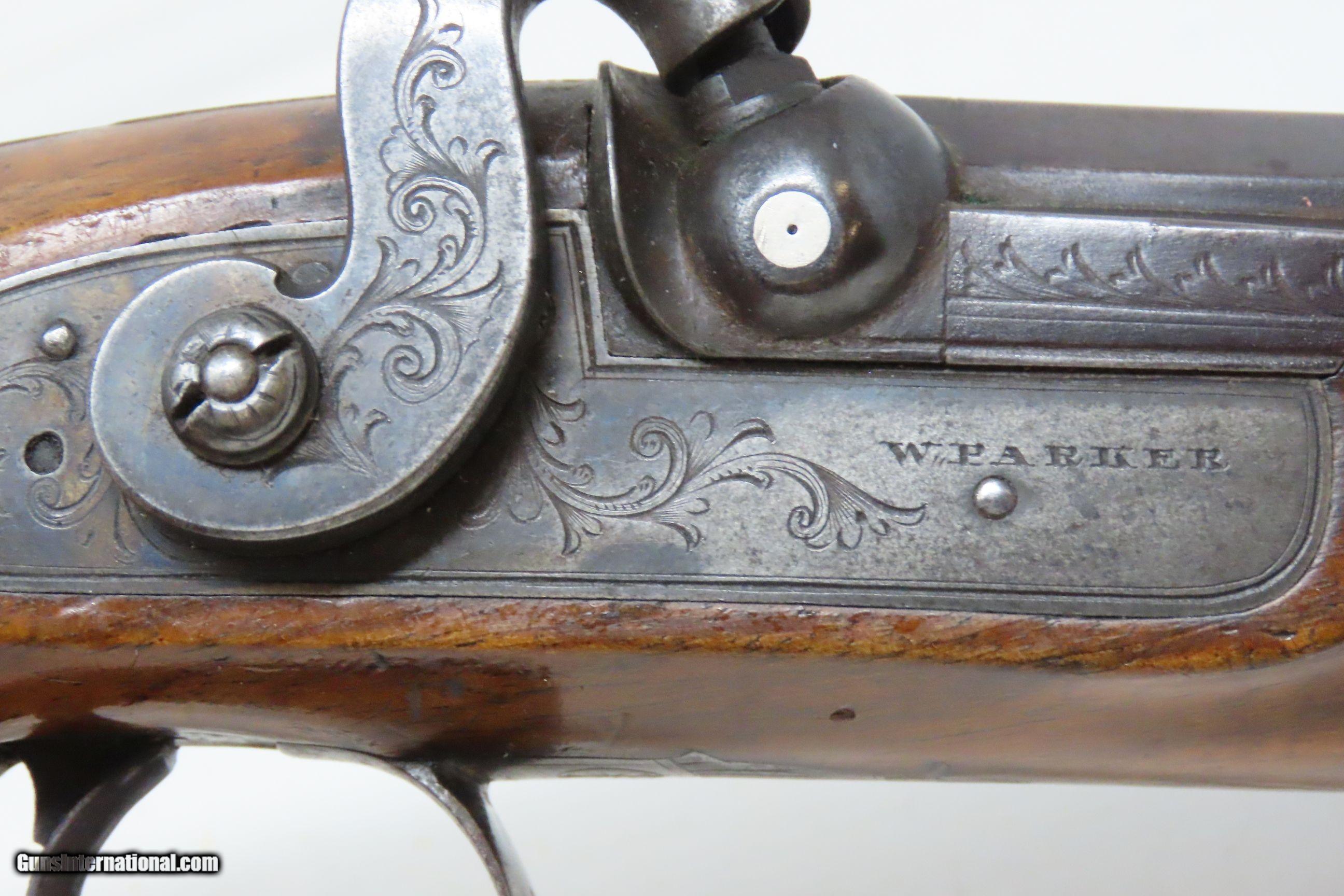ENGRAVED W. PARKER Antique SIDE-HAMMER .50 Caliber PERCUSSION BELT Pistol