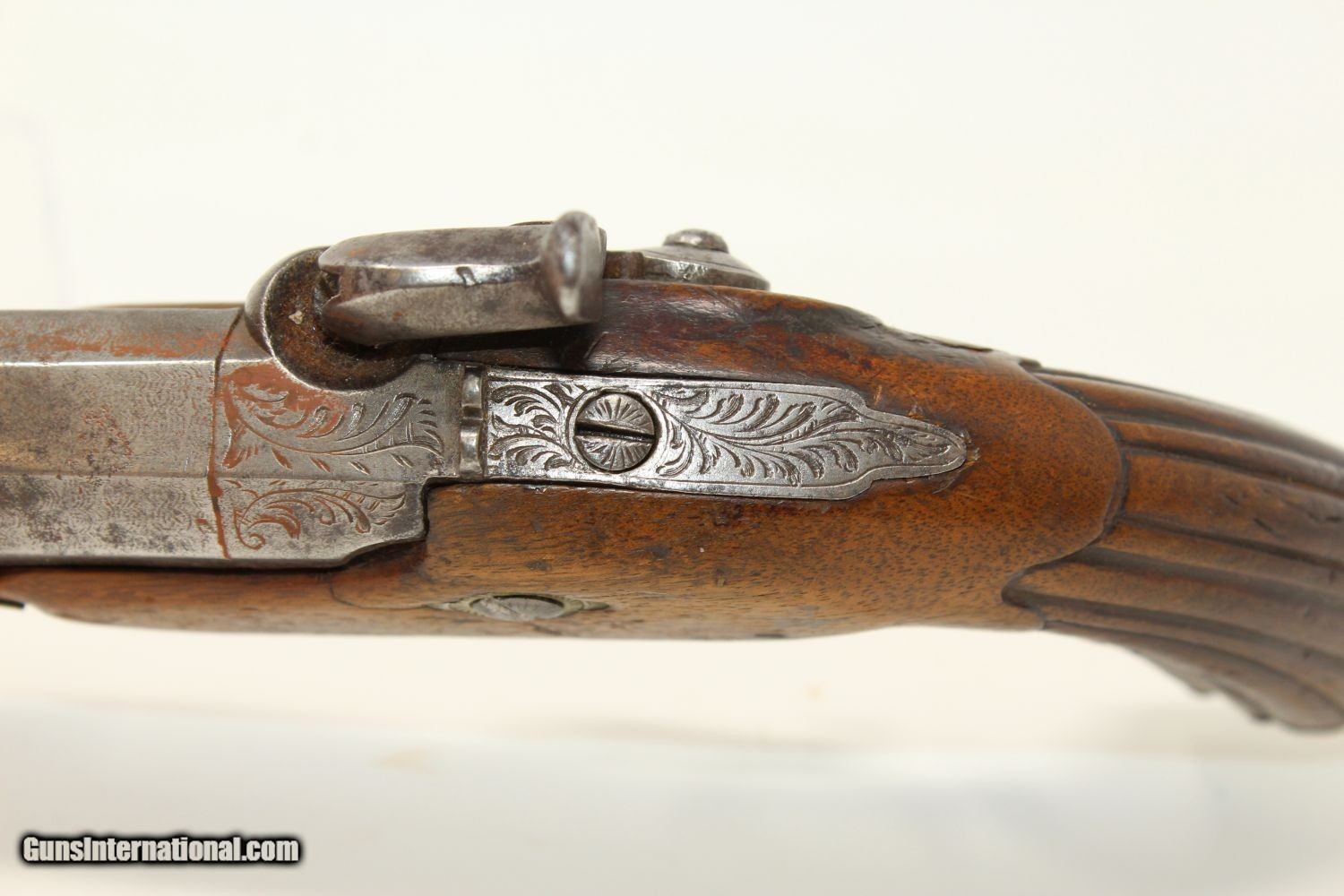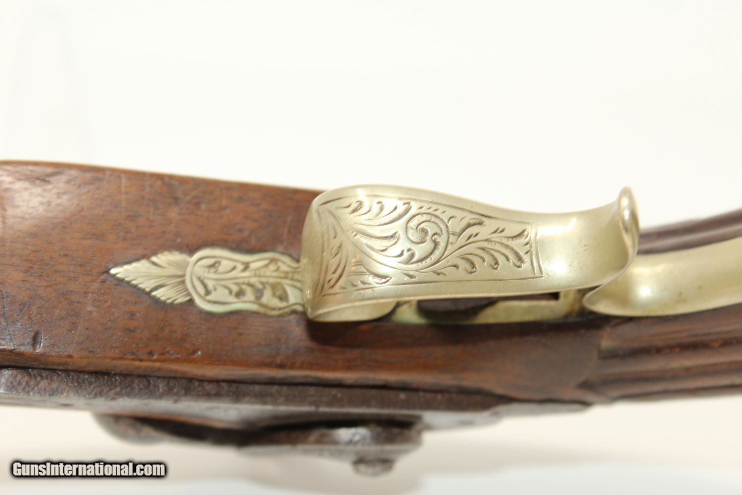EUROPEAN .70 CALIBER Antique Pistol from 1800s With Fluted Stock and Engraved Hardware