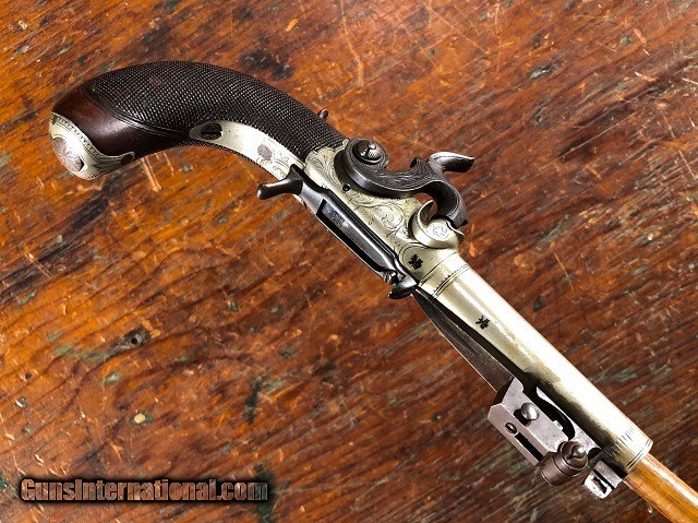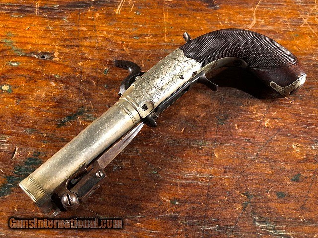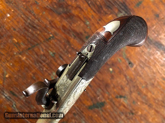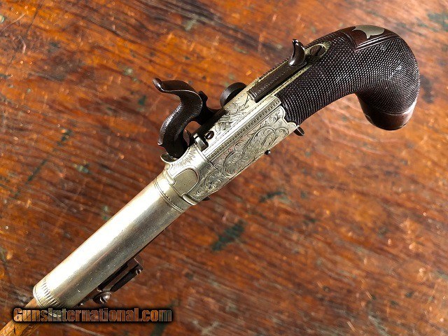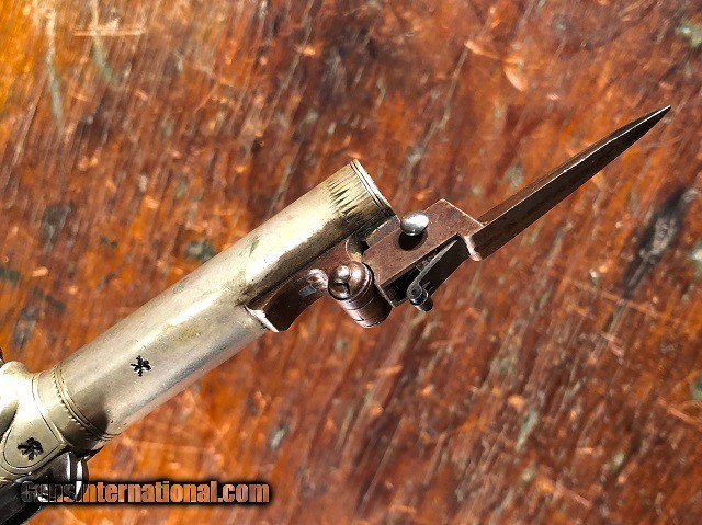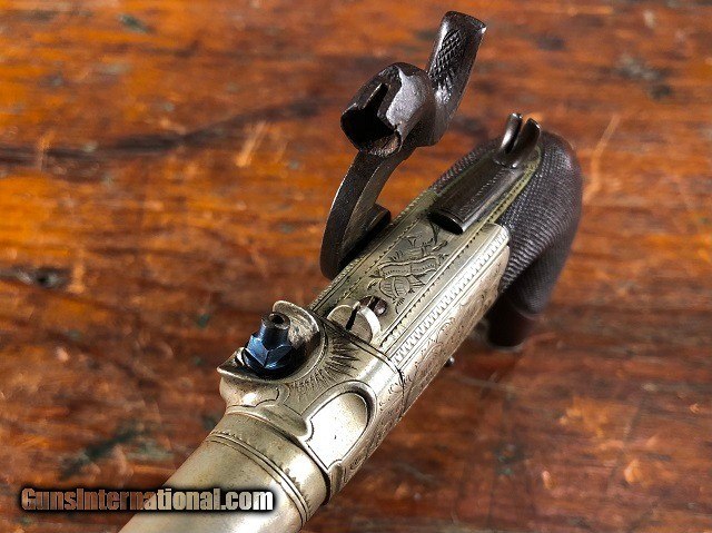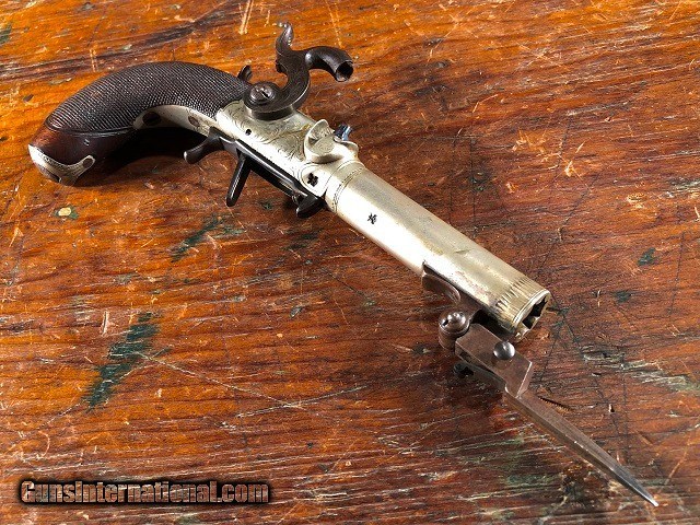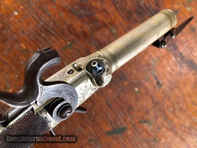 Fine Engraved English Solid Silver Percussion Screw Bbl Folding Trigger Snap Bayonet Pocket Pistol 1830's