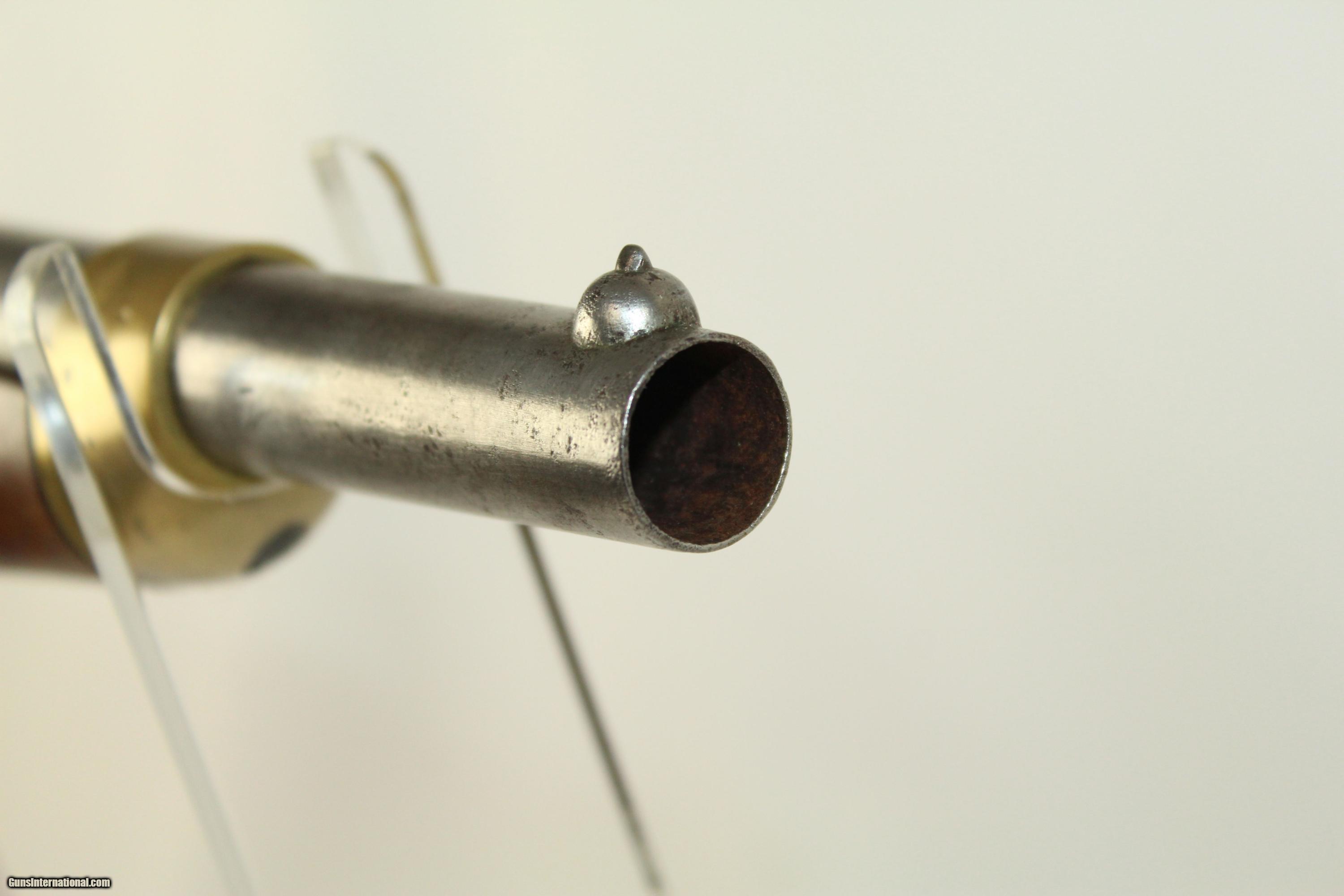 Description: FRENCH Antique CHARLEVILLE Model 1822 Pistol Military Conversion to Percussion Here we present an antique Model 1822 Percussion Pistol, made circa 1822 at the armory at Charleville. It was built for military use and features a huge .70 caliber bore. It began life as a flintlock, but was soon updated to the new standard of percussion, a much more reliable system. The lock is marked “M R/de Charleville”. The top of the barrel is marked “1822 t”. The left side of the barrel is marked “435”, which matches the left side of the stock. Under the number on the stock is “VENIEN”. Spangled proof marks are found throughout. The overall condition is very good. The markings are clear and legible. The stock is solid, with clear markings. The bore is clearly rifled and clean, but a bit rough toward the breech. The action is strong. Own the original! This is a legitimate antique and not a reproduction. Barrel is 7-3/4 inches in length. Caliber: .70 Overall condition as seen in photos. Very Fast. Very Safe. FREE SHIPPING WORLDWIDE. Delivered directly to your door by express mail! Guaranteed AUTHENTIC & Includes CERTIFICATE OF AUTHENTICITY. ancestryguns $1000 #21962 SOLD Antique: Yes |