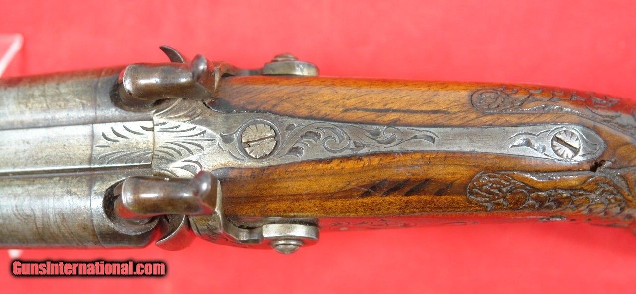 FRENCH PERCUSSION DOUBLE BARREL .70 CALIBER OFFICER’S PISTOL CIRCA 1840’S-50’S.