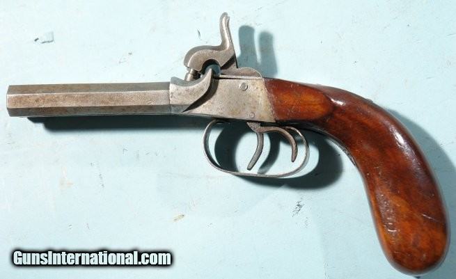 GERMAN PERCUSSION DOUBLE BARREL BOXLOCK POCKET PISTOL CA. MID TO LATE 1800’S.