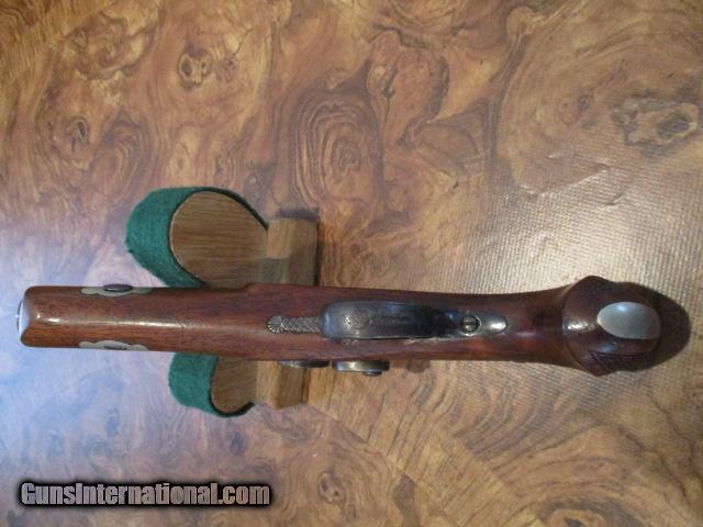 Description: ANTIQUE DERRINGER BY GILLESPIE WOOD AND BARREL IN IN VERY GOOD TO FINE CONDITION SILVER FITTINGS CHECKERED GRIP MARKED ON LOCK "GILLESPIE" AND ON BARREL "GILLESPIE WARRANTED" SIZE BARREL 4 1/4 INCHES OVERAL 8 INCHES.GREAT EARLY AMERICAN MADE DERRINGER. PLEASE SEE MY OTHER S. EMAIL: ANTIQUEMILITARYGMAIL TEL 516 647-3595 SOLD Antique: Yes |