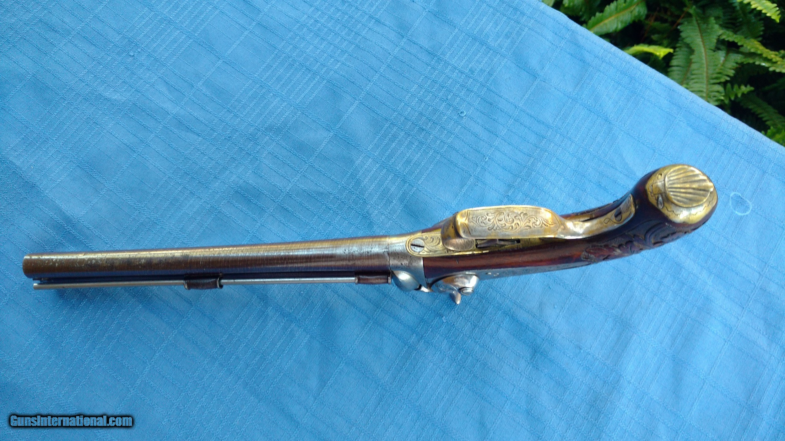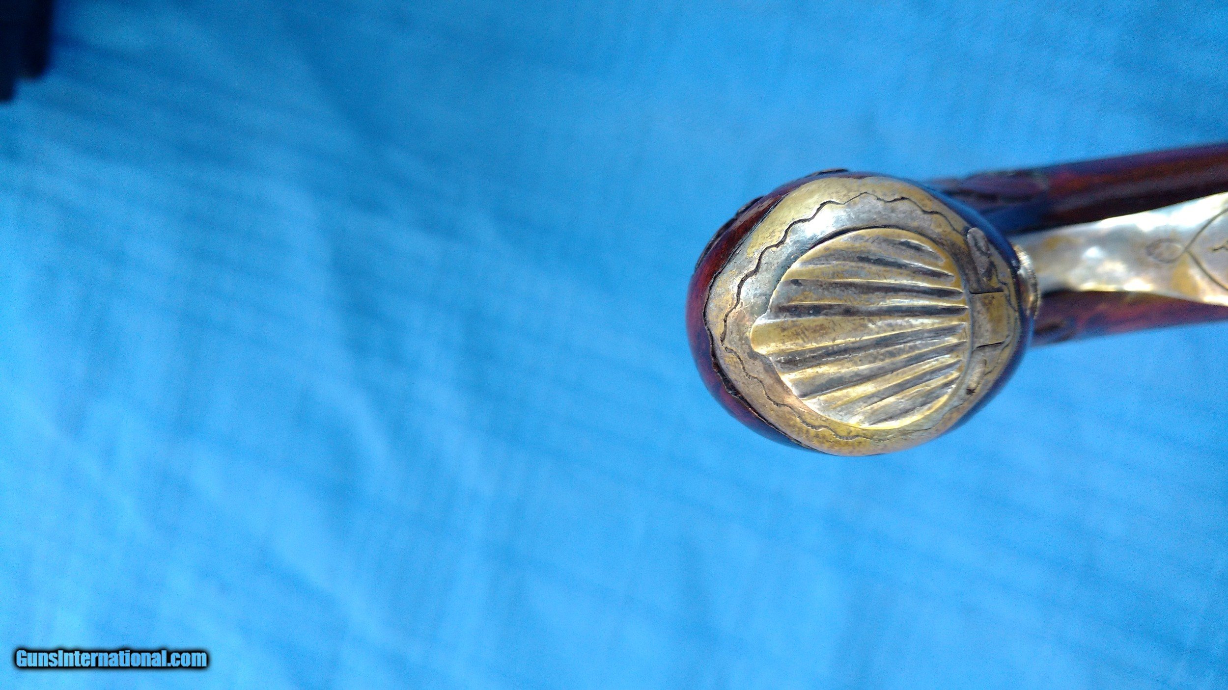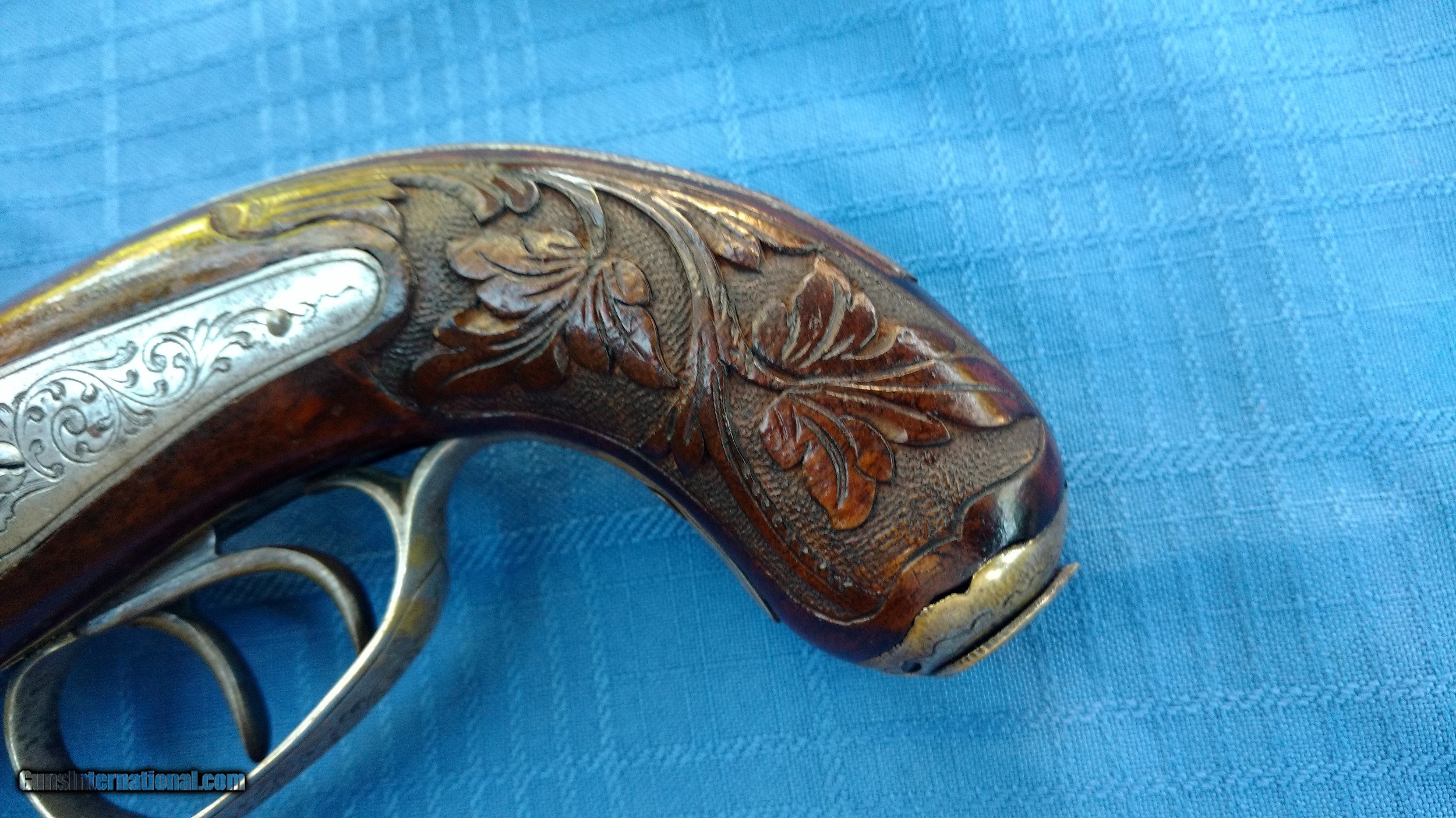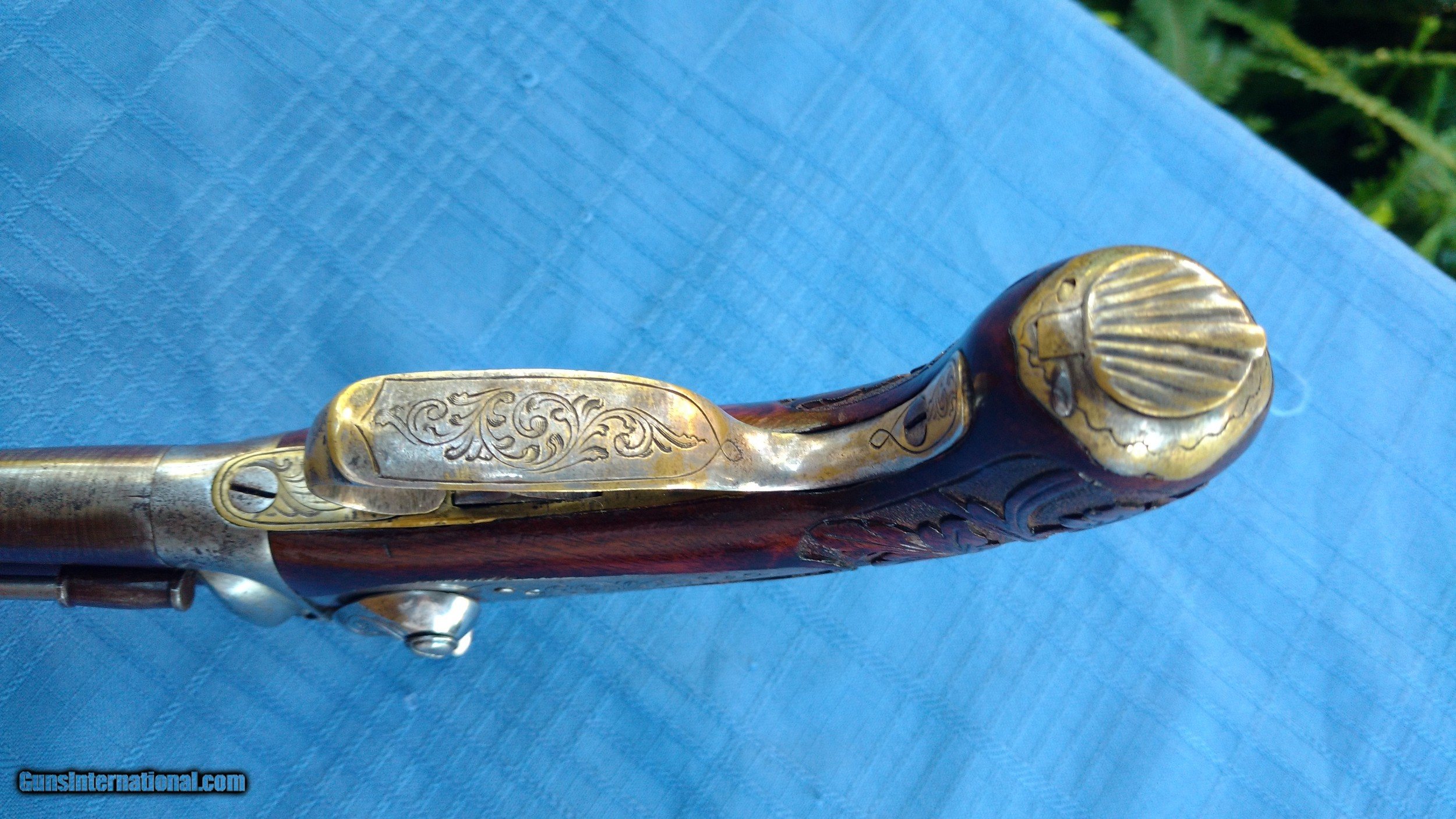 Description: Here's a rare Howda Pistol European . Maker marked on barrel with Platinum letters. Proof marks on barrels. Condition is Stunning. Barrel has all it's original Brown finish with most all of the Damascus still visible. Top of barrel has maker written with Platinum inlay. Gun is finely Engraved. Wood is Carved in Fantastic floral Pattern. Mechanics are excellent . Overall a fine example of a fancy Hoeda pistol. Please review my photos and please email me with any questions ? 3 day inspection. Thank you for looking , Little Jo SOLD Antique: Yes |
