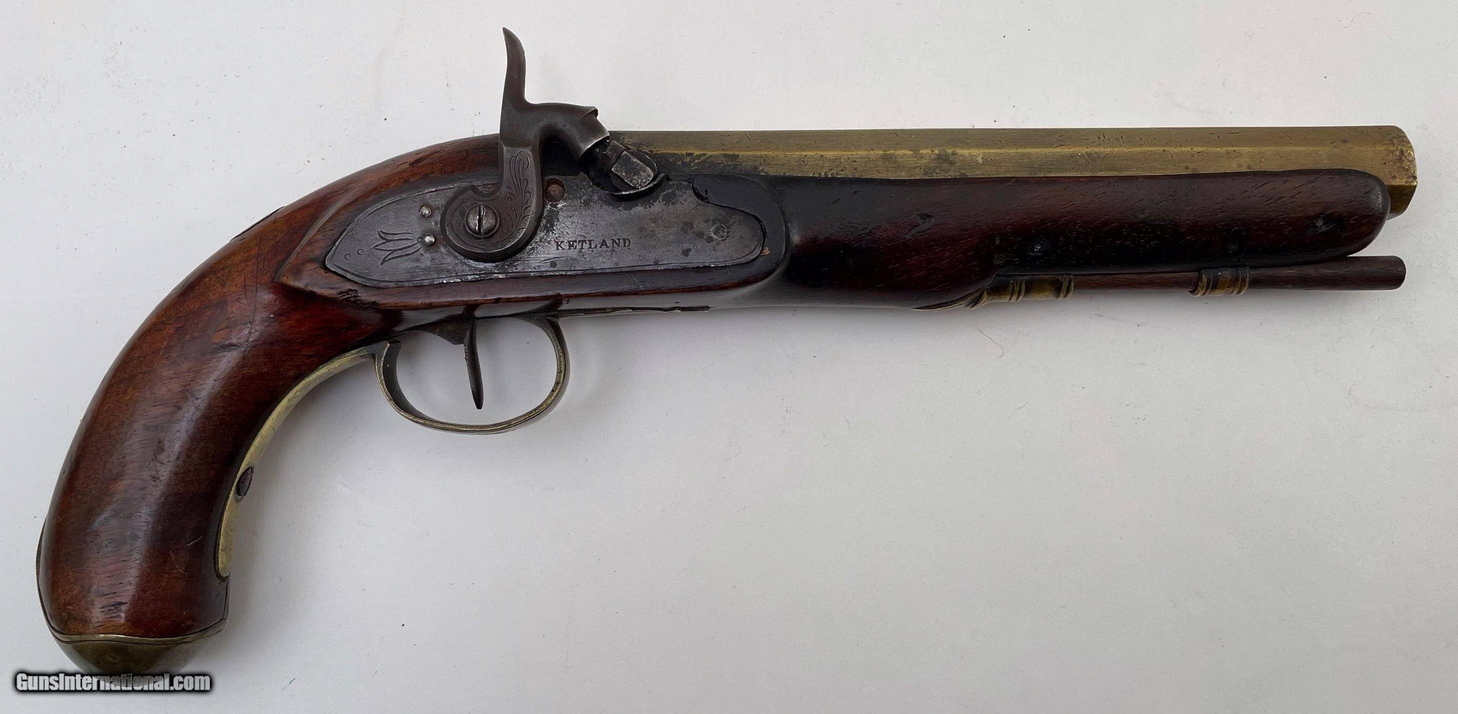 Description: The action needs work as the mainspring is a little weak and there is no halfcock. This is a conversion from flintlock. The bore measures .60" See photos for condition. SOLD Antique: Yes Manufacturer: Ketland Barrel Length: 8 |