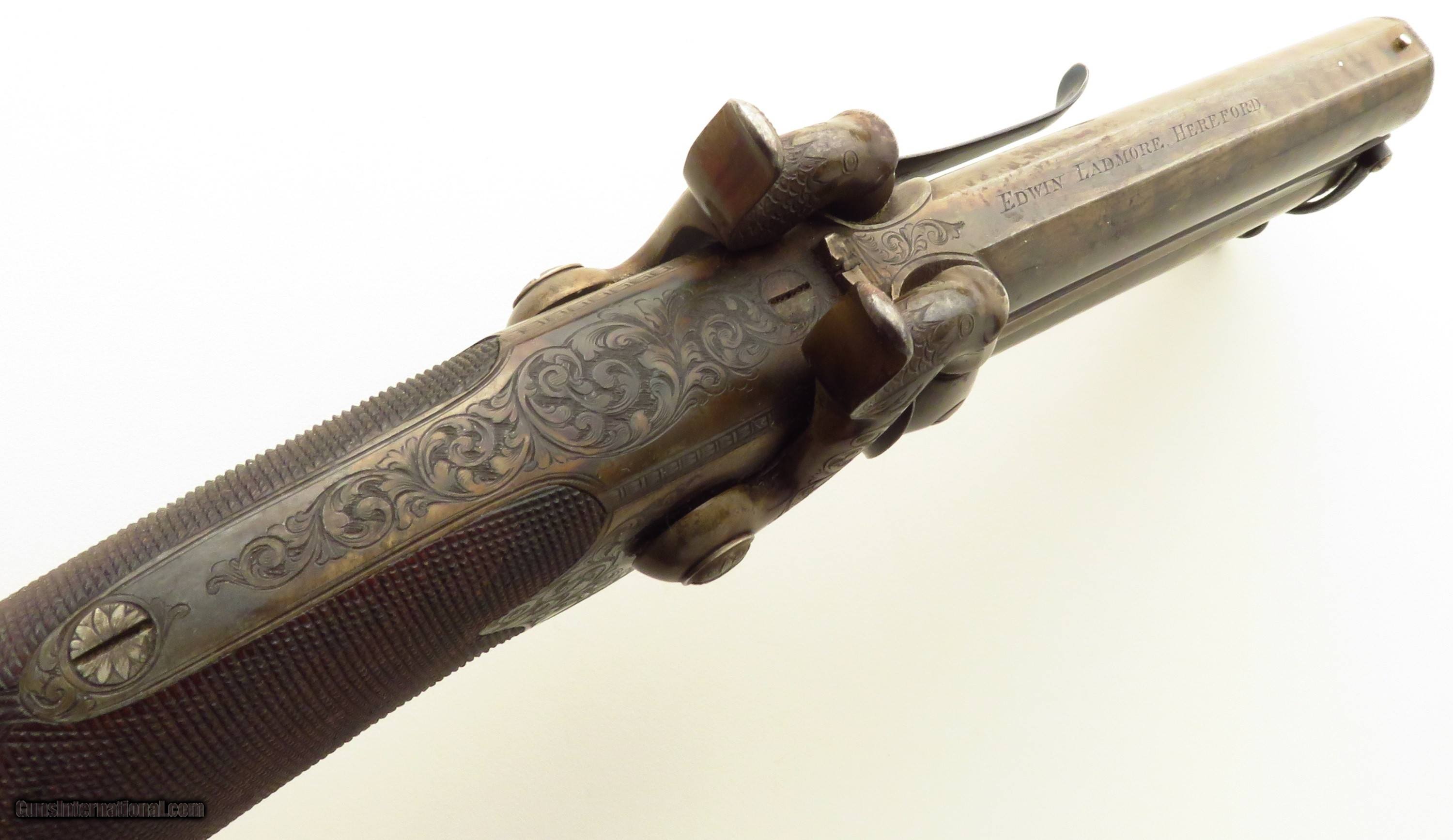 Ladmore percussion belt pistol, Damascus, .560-inch bore diameters, layaway