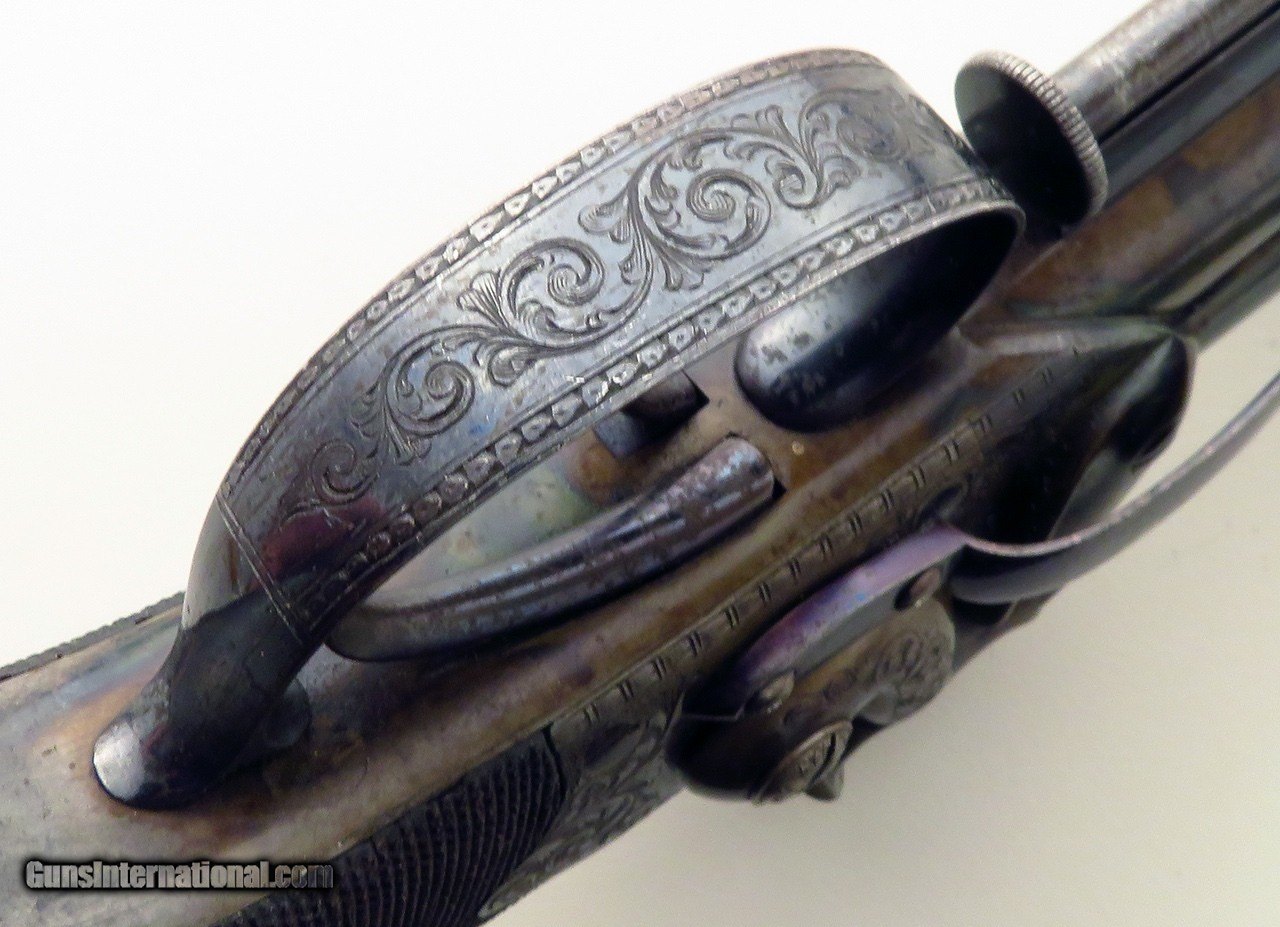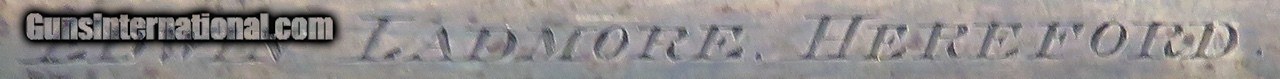 Description: Edwin Ladmore (Hereford) percussion belt pistol. Features include four-inch Damascus barrels (.725-inch muzzle diameter, .560-inch bore diameter, flat top, sights), belt clip and trapdoor grip cap. Weight is 1.8 pounds. No case. CONDITION: Both colors and polished blue are approximately 40 percent. Niter is approximately 25 percent. Grip is good with a hairline along the lower tang. The price is firm and layaway is available. $2,000 plus shipping. Price: $2,000.00 Shipping: $60.00 Contact Seller |