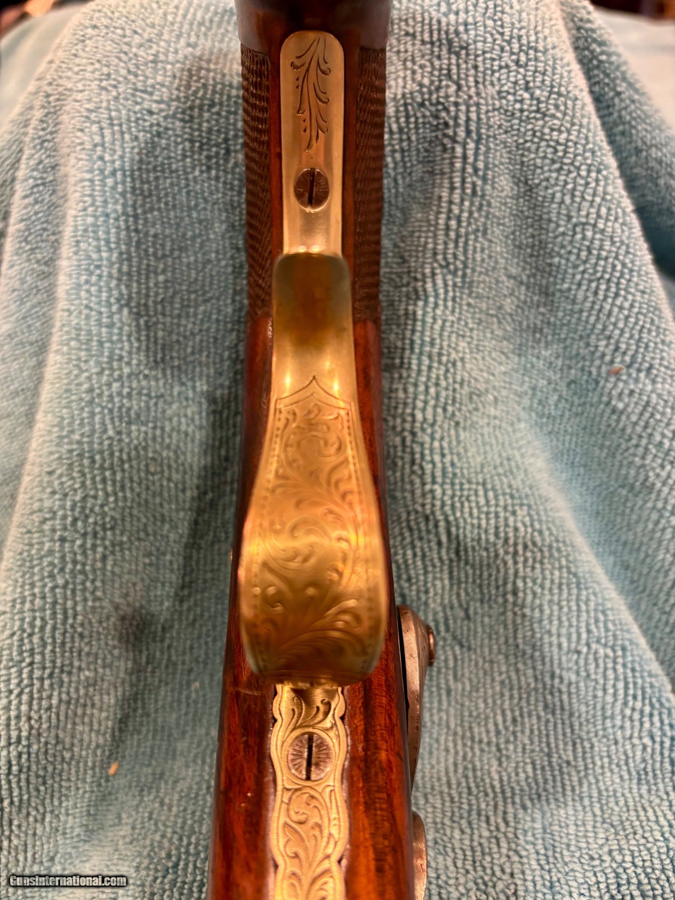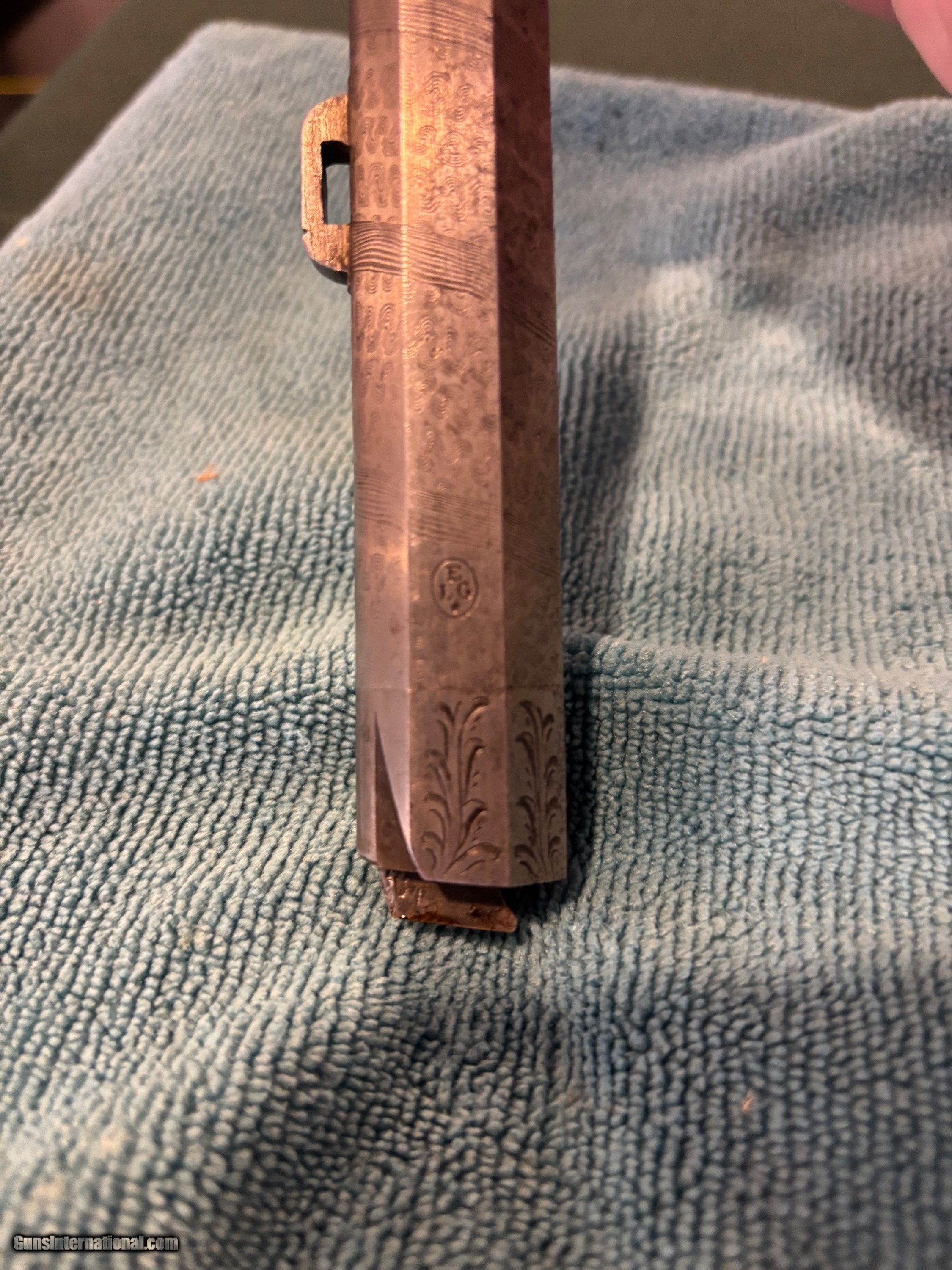 Description: Liege Belgium Gentlemans carry pistol ,Circa 1840,7 3/4', 56 caliber riflrd barrel, Damascus Highley Figured barrel,Engraved Lock,Hammer,Trigger gaurd,Clam Shell butt plate, Carved clam shell forend with a finnley checkered stock. The overal condition of the wepon is excellant. I have fired the weapon and it shoots very well. 3 day non-firing inspection begens when arrived at dealer. Certified Check or money order Antique: Yes Handgun Caliber: .56 Manufacturer: Liege Belgium Model: Gentlemen's carry pistol Barrel Length: 7 3/4 Condition: Excellent Metal Condition: Excellent Wood Condition: Handling marks exceptional for age Bore Condition: very good Barrels: Damascus Highley Figured Triggers: Adjustable Stock: Walnut Manufacture Date: Circa 1840 Engraving: Lock, Hammer trigger guard, Butt clam shell Item Location: Virgina Price: $900.00 Buy Now Contact Seller |