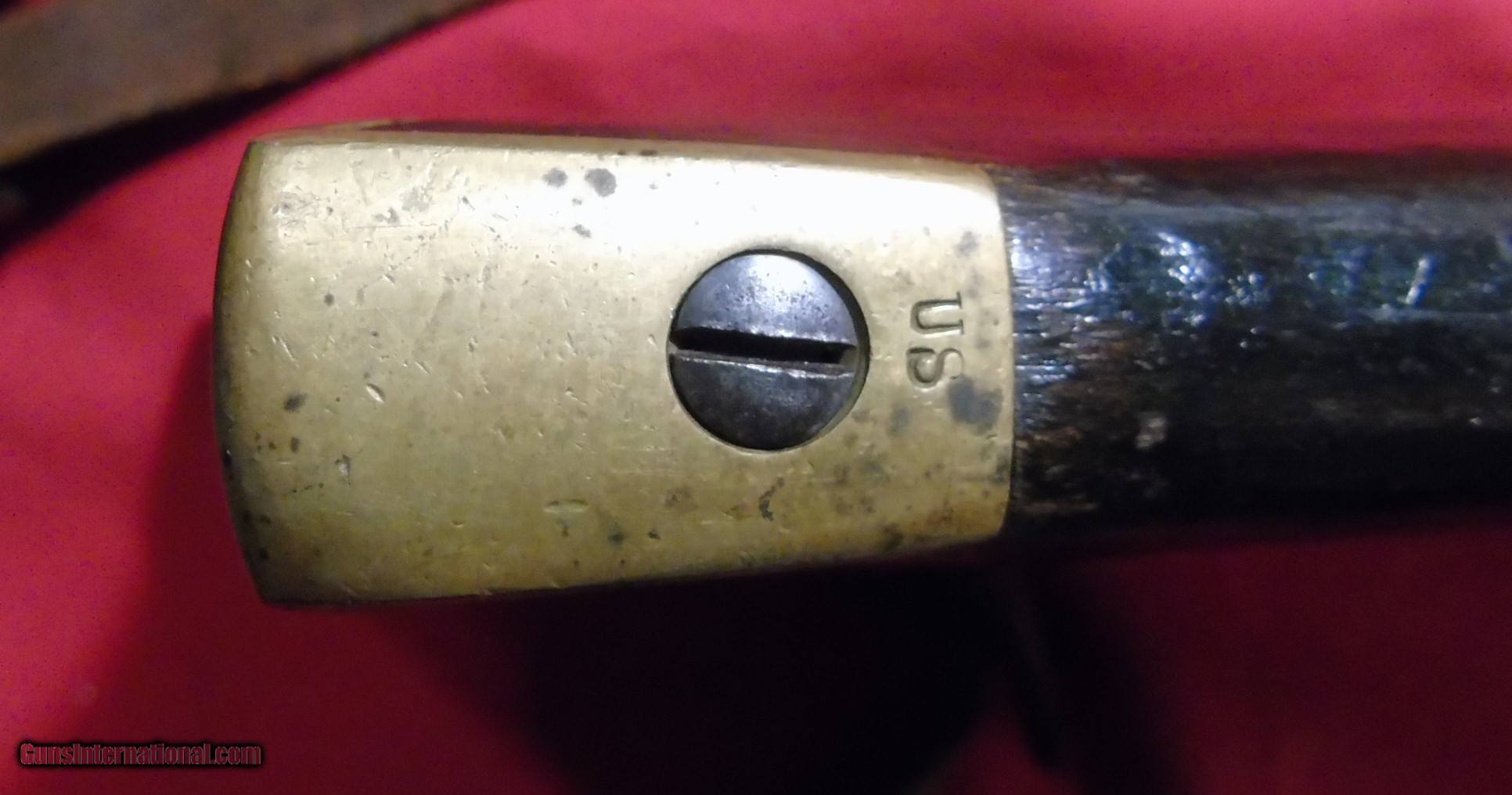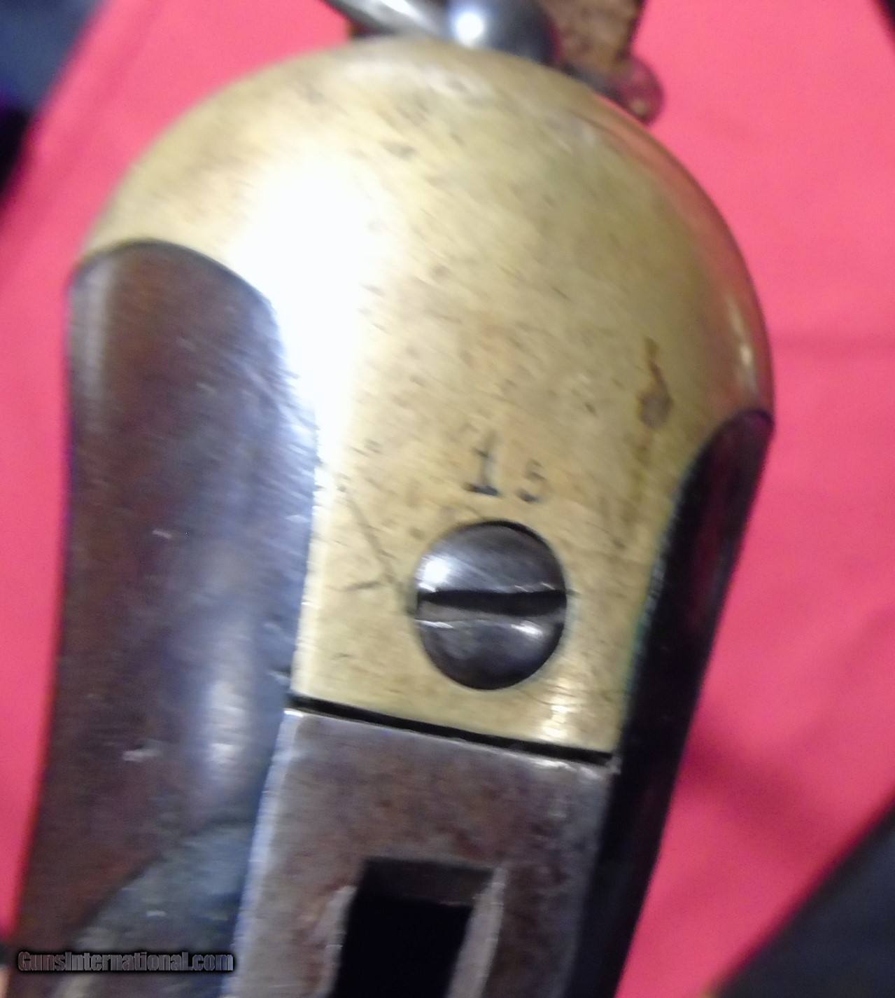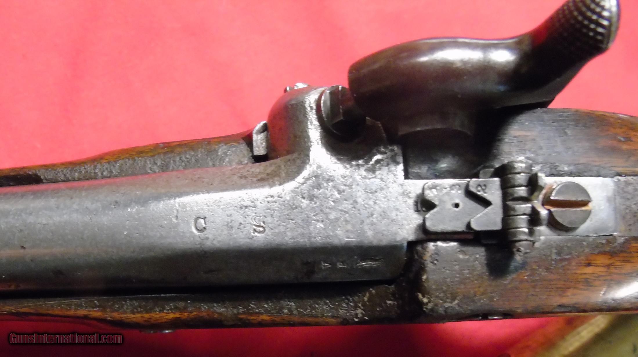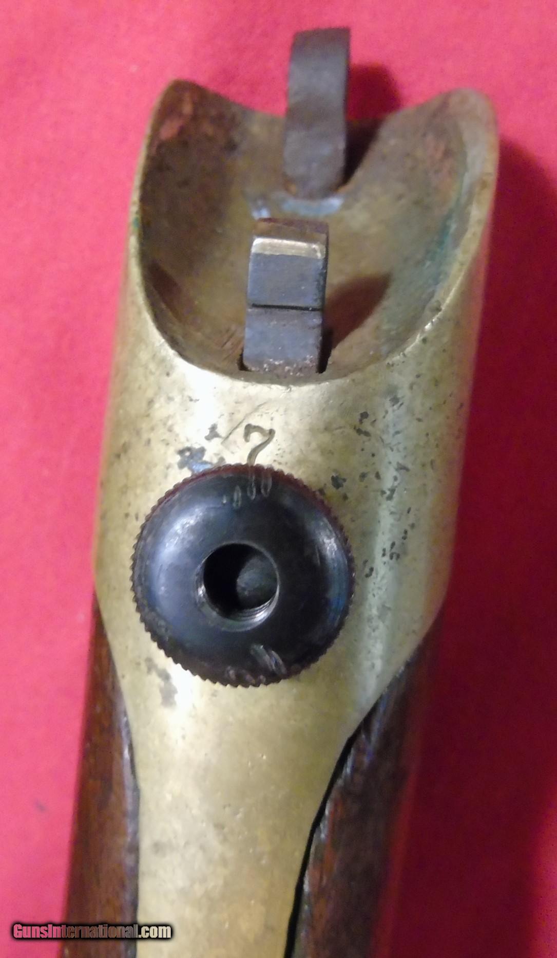 Description: It has some "dings" and cracks etc. but it is all there. It does function properly and the pictures tell all. SOLD Antique: Yes Manufacturer: Springfield Model: Stocked Carbine Serial Number: 15? Barrel Length: Long Condition: Good Metal Condition: O K Wood Condition: Some Dings but O K. Bore Condition: Good |
