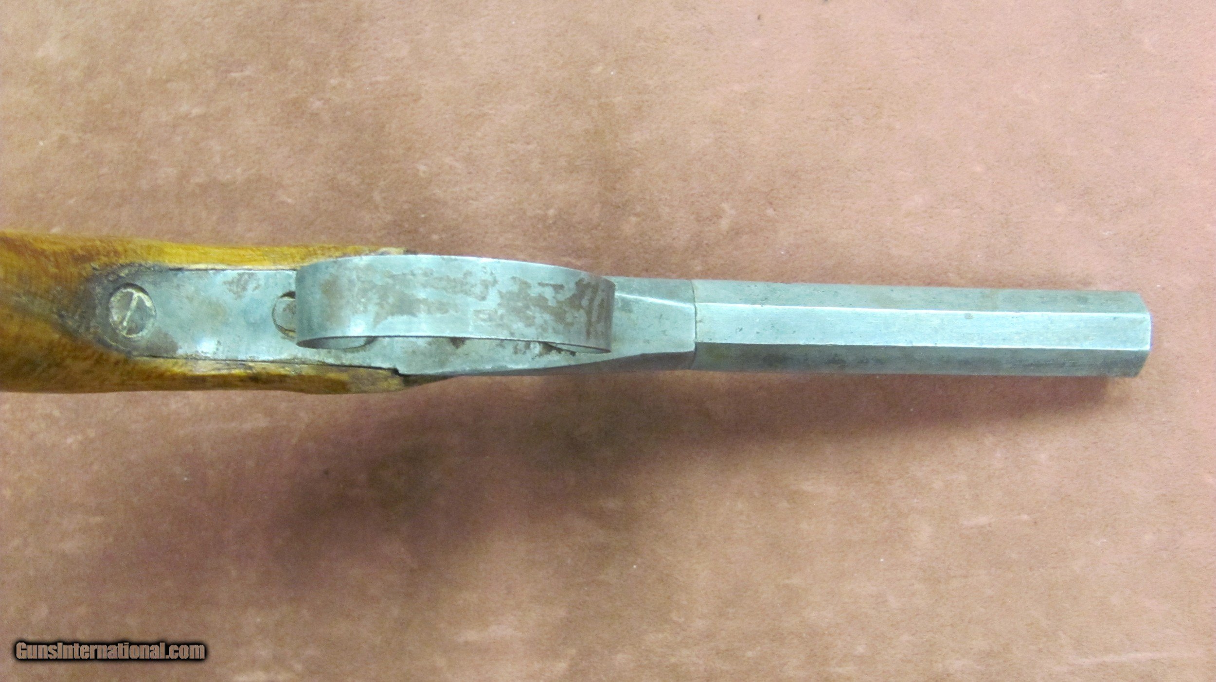 Description: Pair of German percussion single shot pistols in .41 Caliber. Overall length is 8" and barrel length is 3" on both pistols. They have octagonal barrels and wooden handles. Both pistols are in good working order and have German proof marks on both barrels and frames. Serial numbers 28 & 82. SOLD Antique: Yes Manufacturer: Mfg. in Germany Model: Single Shot Serial Number: 28 & 82 Barrel Length: 3 Inches Condition: Very Good Metal Condition: Very Good Wood Condition: Very Good Bore Condition: Good Proof:Black: Black |