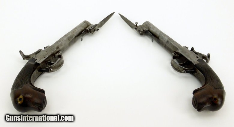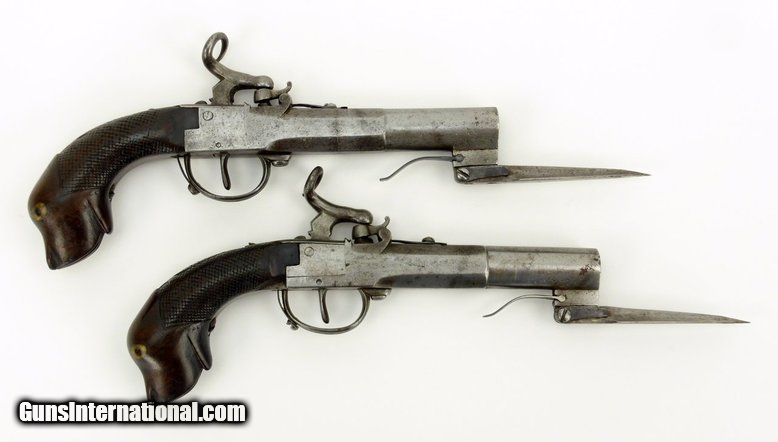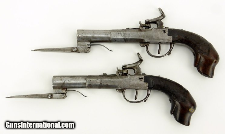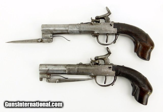 Pair of German? Percussion spring bayonet pistols (AH3571)