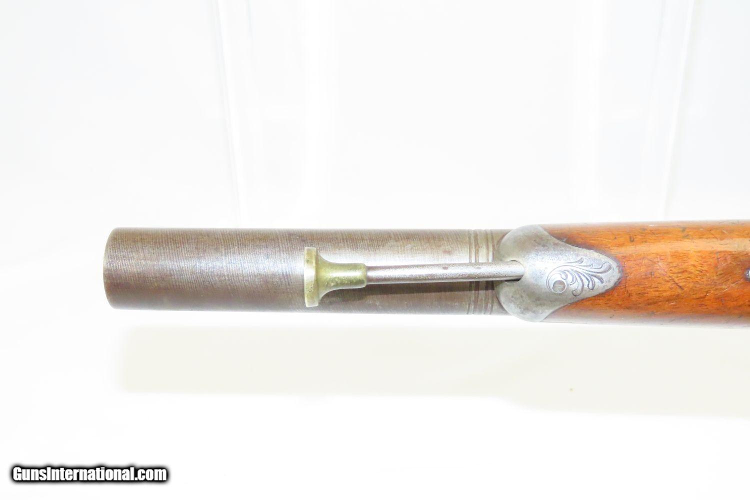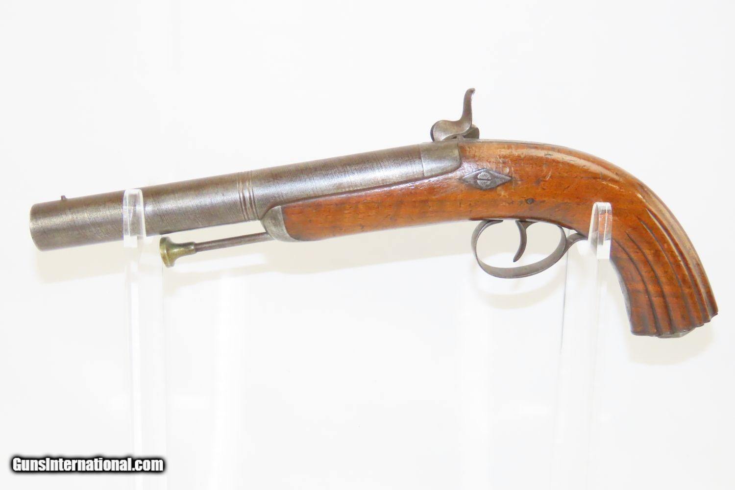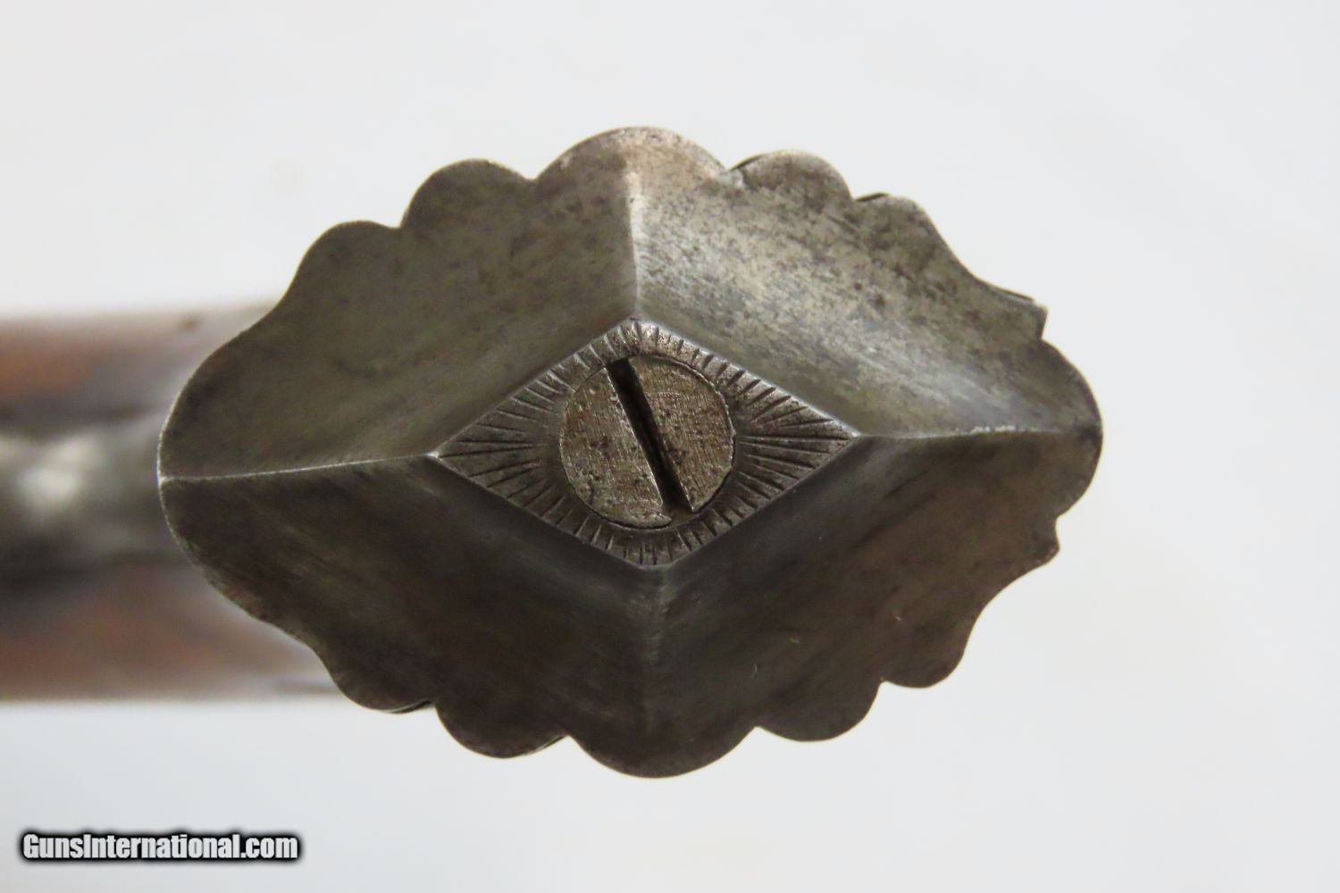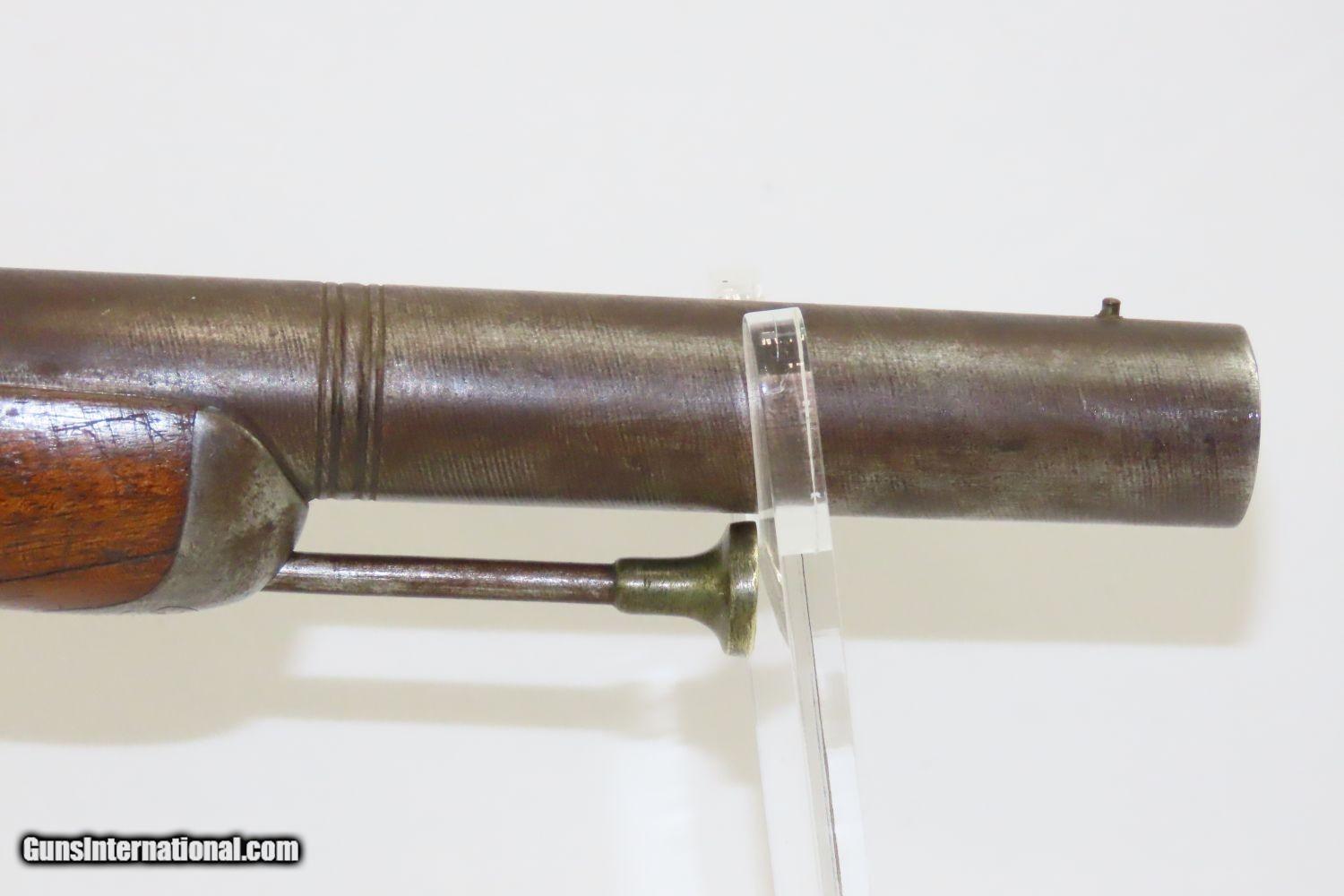 Description: Pair of ORNATE & ENGRAVED Antique 1850s Back Action PERCUSSION Belt Pistols With Ottoman Kubar Style Double Holster! Here we present a pair of Ornate European Antique Back Action Percussion Pistols, manufactured in the mid-19th Century. These are full-sized combat pistols in a man-stopping .67 caliber. Round barrels with a swirling Damascene pattern. The iron trigger guards are handsomely engraved, while the locks and hammers are engraved with a scroll motif. The wooden stocks are fluted at the grip, which is both practical and aesthetically pleasing. The ramrods are made of steel. The overall condition is very good. The actions are strong all around. One hammer is cracked on the underside of the hammer head. The bores are smooth and gray. Both stocks are solid. The locks are lightly engraved with traditional designs. The embroidered holster is sturdy and in good shape. Here are two back action pistols creating a fantastic set to display! Own the original! This is a legitimate antique and not a reproduction. Barrels are 7-1/2 inches. Caliber: .67 Overall condition as seen in photos. Very Fast. Very Safe. FREE SHIPPING WORLDWIDE. Delivered directly to your door by express mail! Guaranteed AUTHENTIC & Includes CERTIFICATE OF AUTHENTICITY. ancestryguns $1750 #20722 SOLD Antique: Yes |