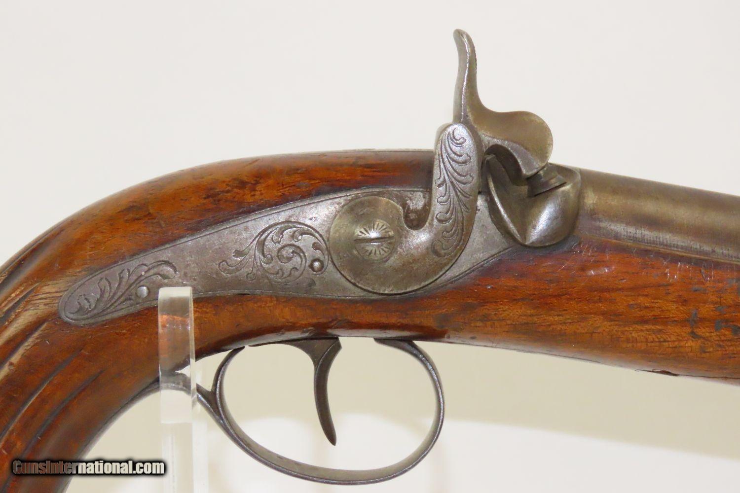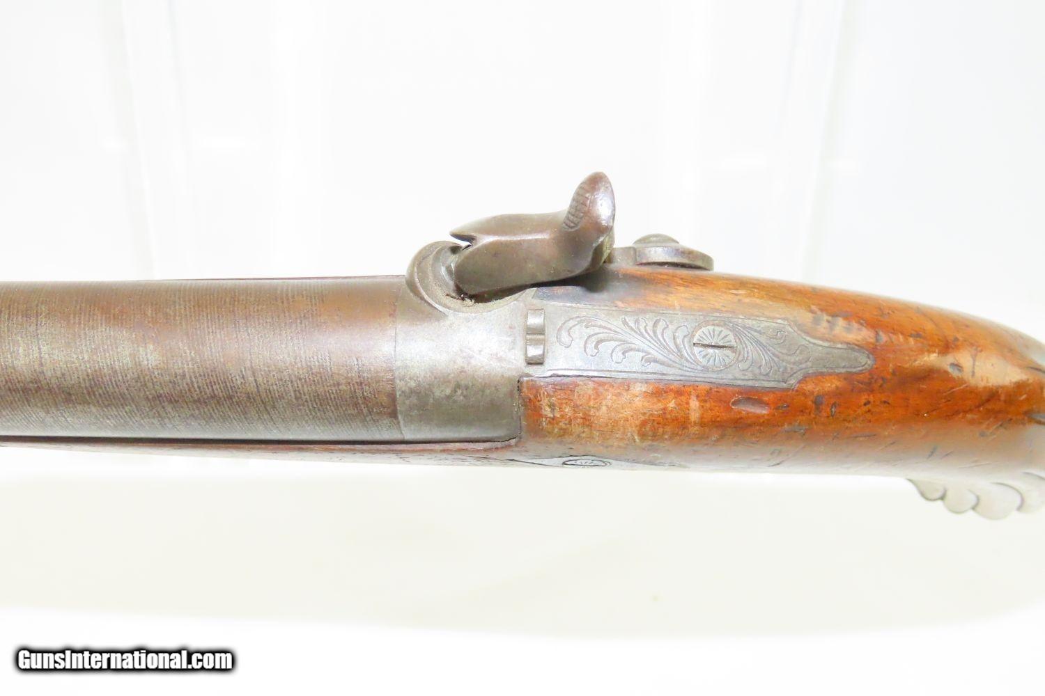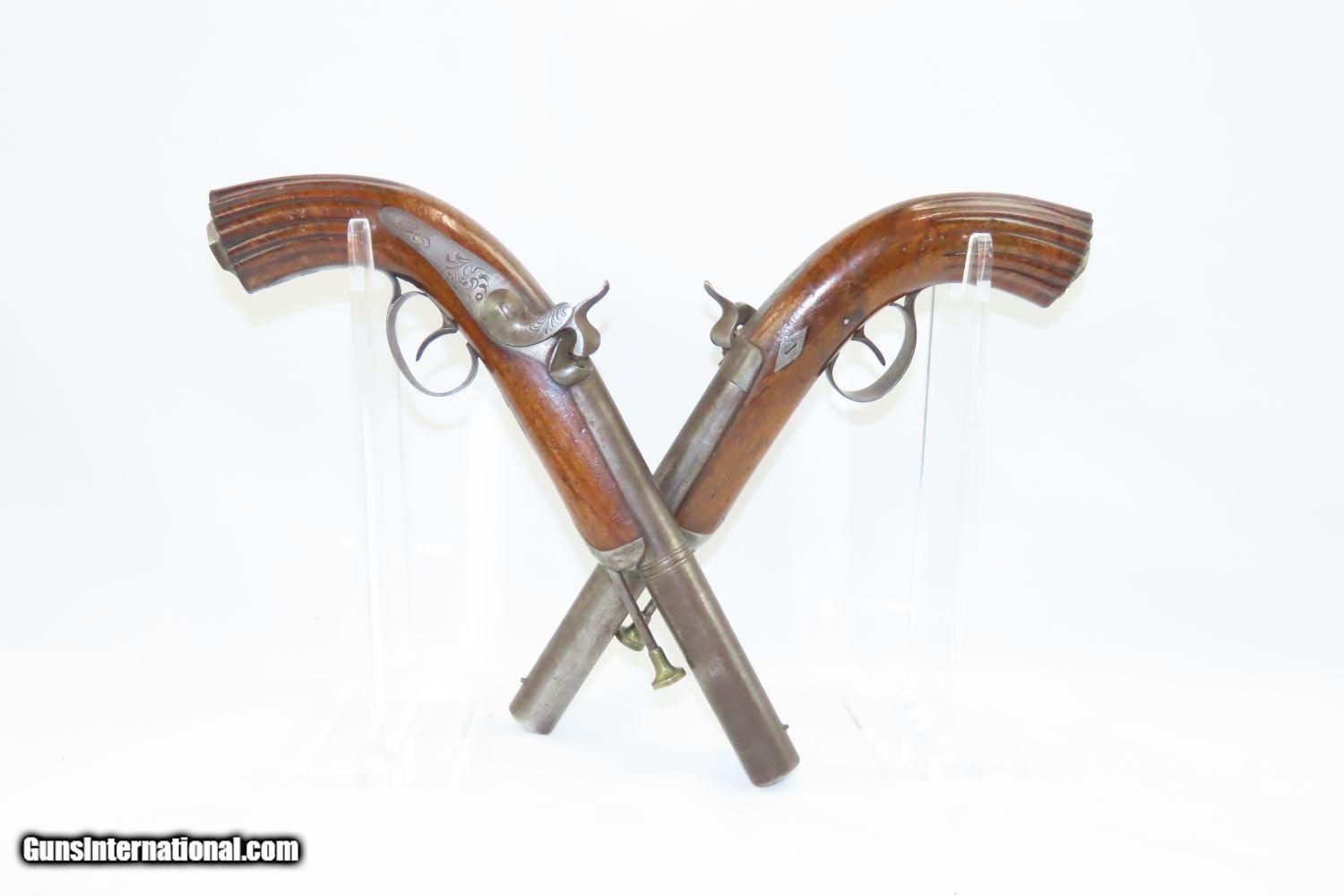 Pair of ORNATE & ENGRAVED Antique 1850s Back Action PERCUSSION Belt Pistols With Ottoman Kubar Style Double Holster!