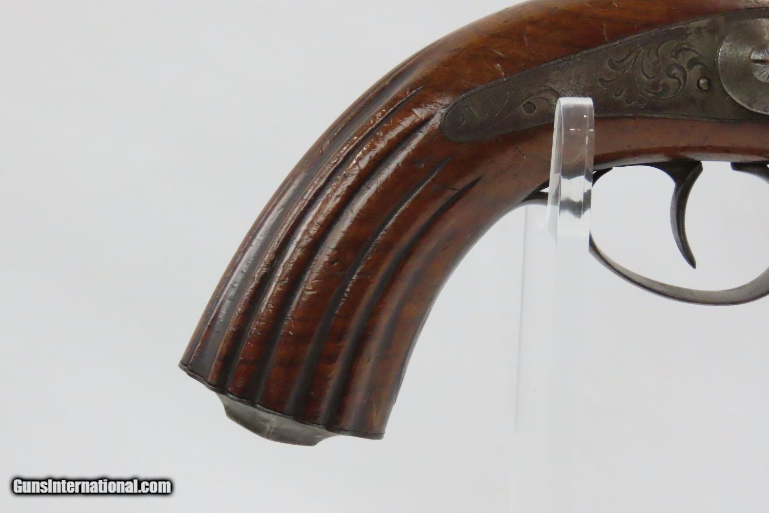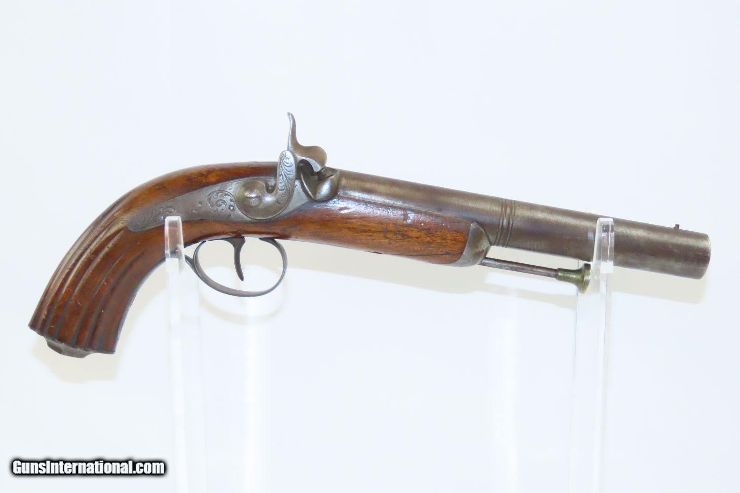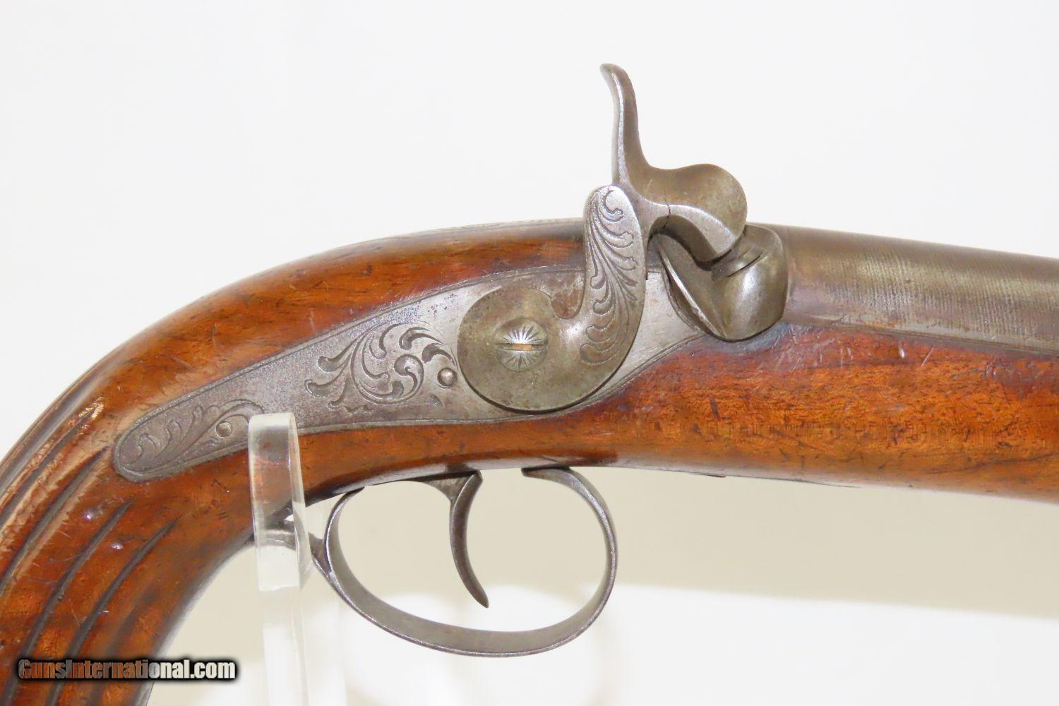 Pair of ORNATE & ENGRAVED Antique 1850s Back Action PERCUSSION Belt Pistols With Ottoman Kubar Style Double Holster!