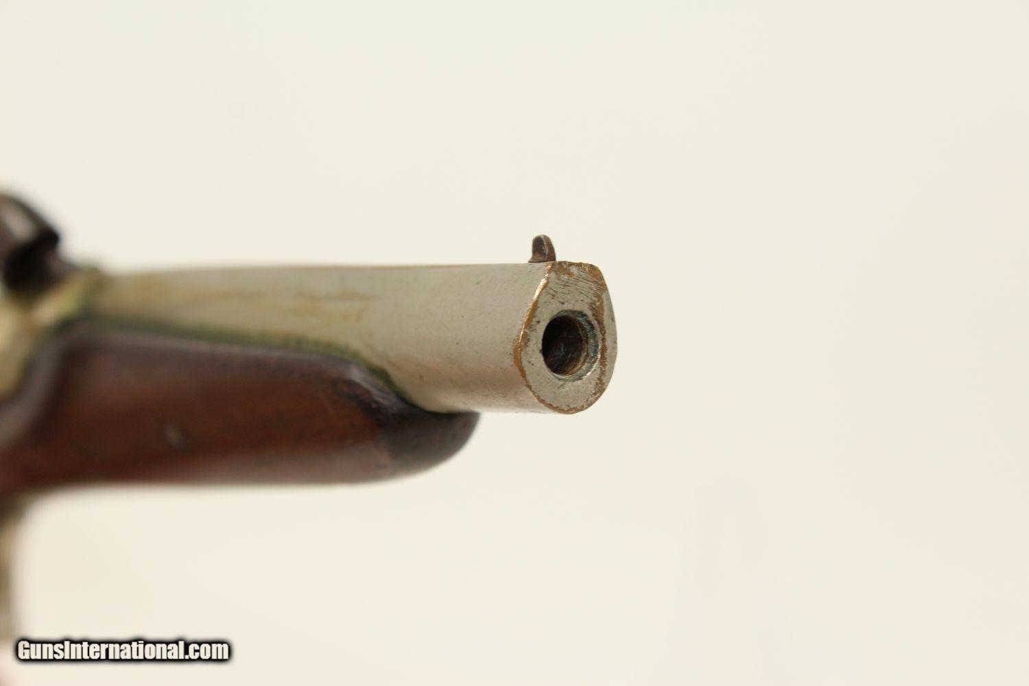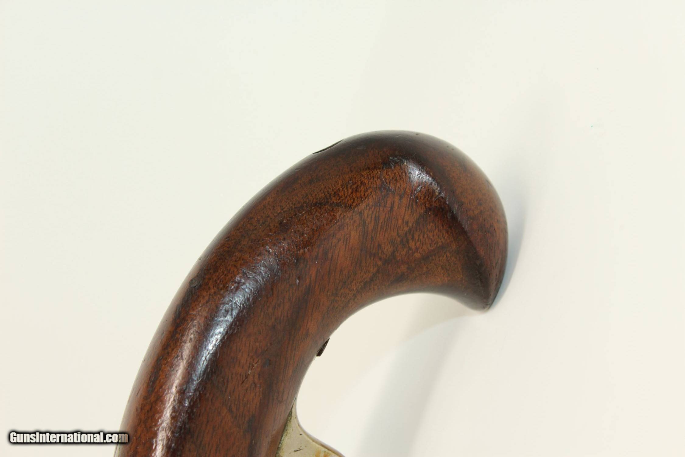 Description: RARE Philadelphia Antique WURFFLEIN SALOON Pistol German-American Immigrant Gunmaker Philadelphia Here we present an antique Andrew Wurfflein Deringer Percussion Saloon Pistol, made circa the 1880s. This pistol was made in the 1850s by Andrew Wurfflein. He arrived in New York from Germany in 1832 and settled in Philadelphia, Pennsylvania. By 1840, he was granted U.S. citizenship. In 1844, his brother John, also a gunsmith by trade, immigrated. They worked together for some time, and were two of the six that founded the Shuetzen Verein, a prominent German shooting club in Philadelphia. Their work included rifles and pistols, including close copies of their Philadelphia neighbor Henry Deringer’s hit pocket pistol. This is a Deringer type pistol meant to be used for gallery shooting, which happened to be a common pastime in saloons of the day. There is a small aperture in the grip of the stock that could accept the end of a wire stock, which is not included. The overall condition is near fine. 90% of the original nickel finish remains on the metal parts. There are no external markings. The stock is in good shape with a hair crack on the left side where the lock screw inserts, a common flaw on these types of pistols. The bore is in very good condition. The action remains strong. Here is a rare example of Wurfflein’s Saloon Pistol! Own the original! This is a legitimate antique and not a reproduction. Barrel is 3-3/8 inches in length. Caliber: .177 percussion Overall condition as seen in photos. Very Fast. Very Safe. FREE SHIPPING WORLDWIDE. Delivered directly to your door by express mail! Guaranteed AUTHENTIC & Includes CERTIFICATE OF AUTHENTICITY. ancestryguns $1000 #190347 SOLD Antique: Yes |