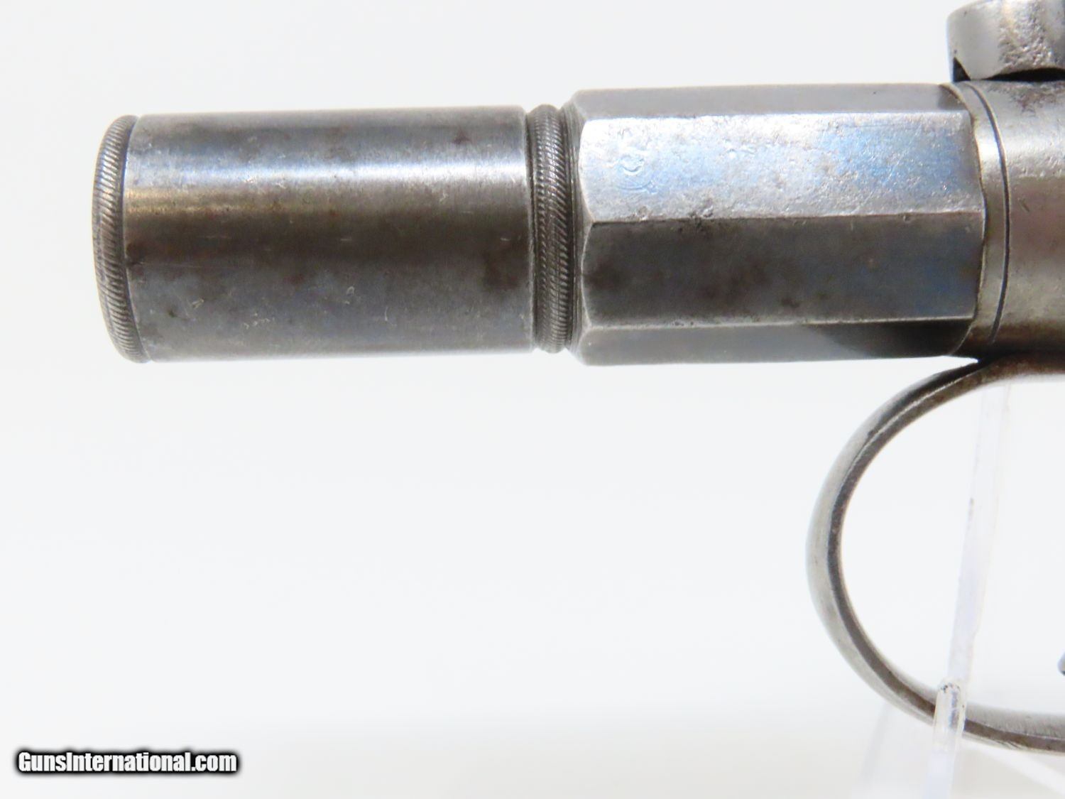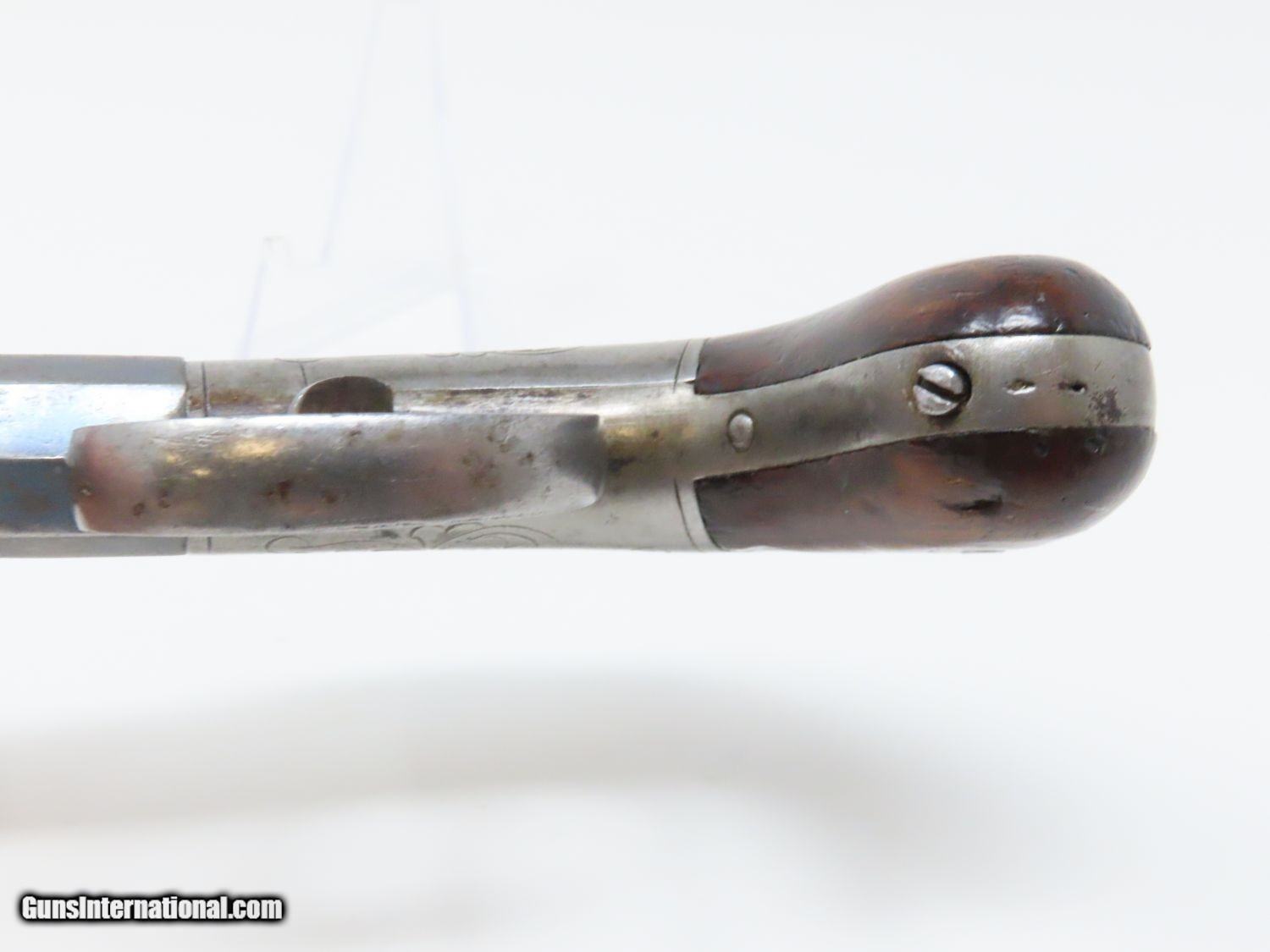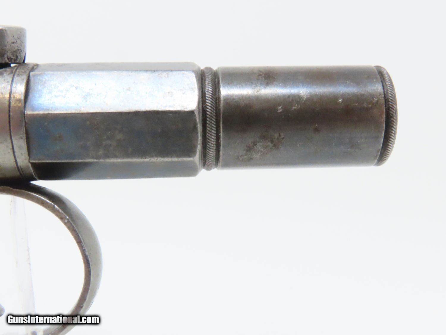 Description: SMALL Double Action MANHATTAN BAR HAMMER .31 Cal Pistol Antique Single Shot With BARREL WRENCH & BALL MOLD Here we present an antique Manhattan Arms Company Bar Hammer Percussion Pistol, made in Norwich, Connecticut circa 1856-59. The Double Action Bar Hammer single-shot pistol marked Manhattan Fire Arms Manufacturing Company's entry into the pistol-making business in early 1856. The Double Action Bar Hammer made by Manhattan has a distinctive barrel that is half round and half octagon. Even though this pistol was the first effort by Manhattan to manufacture pistols, they had already decided to feature engraving from the factory. The bar hammer is marked “MANHATTAN F.A. MFG. CO./NEW YORK” The Manhattan Bar Hammer single shot pistols were manufactured in several different calibers, .31, .34, and .36. The barrel lengths may be 2 to 4 inches in length. The Bar Hammer single shot Manhattan pistols are among the rarest of Manhattan handguns. The overall condition is fine. The action is strong and tight. The bore is in great shape. The markings are clear. Original blue finish. This example includes a barrel wrench and ball mold that’s in very good condition. A handsome little piece that can fit into any collection! Own the original! This is a legitimate antique and not a reproduction. Barrel is 2 inches. Caliber: .31 Percussion Overall condition as seen in photos. Very Fast. Very Safe. FREE SHIPPING WORLDWIDE. Delivered directly to your door by express mail! Guaranteed AUTHENTIC & Includes CERTIFICATE OF AUTHENTICITY. ancestryguns $1350 #20285 SOLD Antique: Yes |
