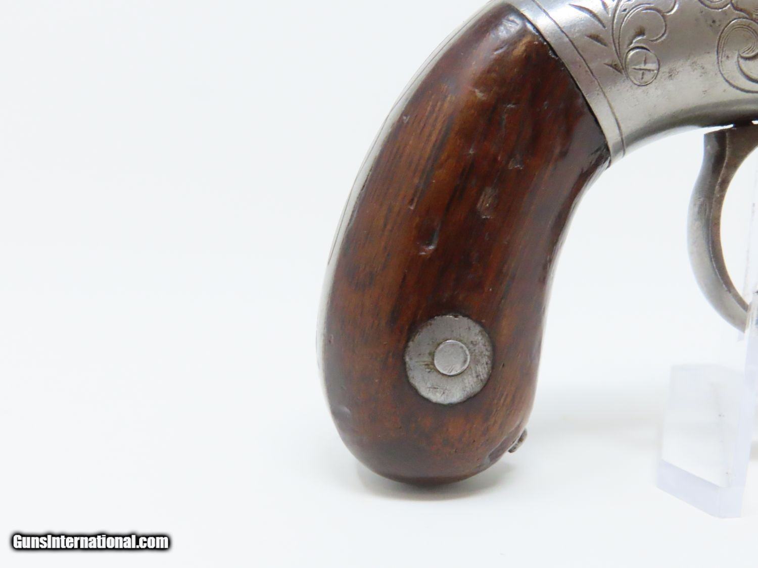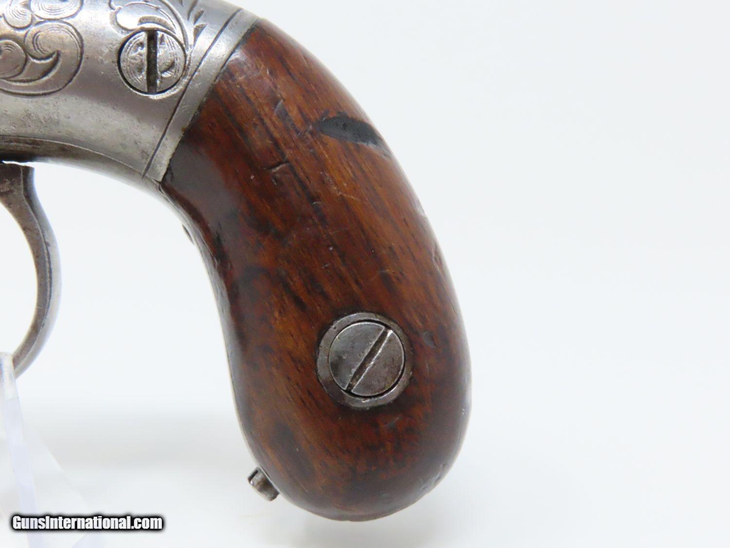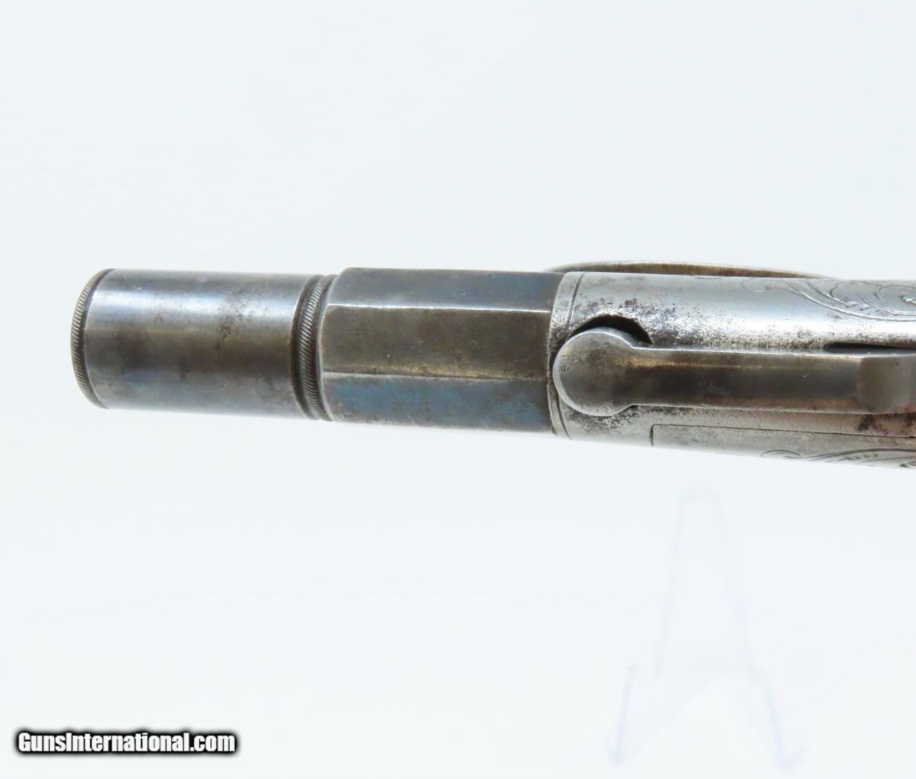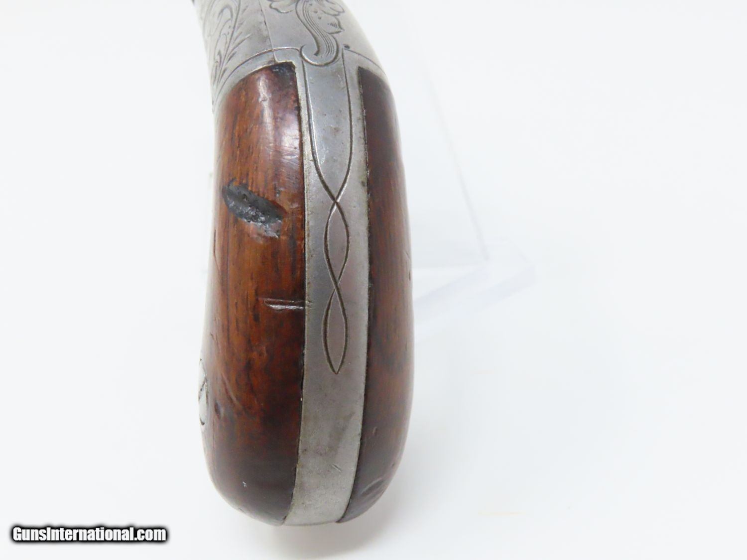 Description: SMALL Double Action MANHATTAN BAR HAMMER .31 Cal Pistol Antique Single Shot With BARREL WRENCH & BALL MOLD Here we present an antique Manhattan Arms Company Bar Hammer Percussion Pistol, made in Norwich, Connecticut circa 1856-59. The Double Action Bar Hammer single-shot pistol marked Manhattan Fire Arms Manufacturing Company's entry into the pistol-making business in early 1856. The Double Action Bar Hammer made by Manhattan has a distinctive barrel that is half round and half octagon. Even though this pistol was the first effort by Manhattan to manufacture pistols, they had already decided to feature engraving from the factory. The bar hammer is marked “MANHATTAN F.A. MFG. CO./NEW YORK” The Manhattan Bar Hammer single shot pistols were manufactured in several different calibers, .31, .34, and .36. The barrel lengths may be 2 to 4 inches in length. The Bar Hammer single shot Manhattan pistols are among the rarest of Manhattan handguns. The overall condition is fine. The action is strong and tight. The bore is in great shape. The markings are clear. Original blue finish. This example includes a barrel wrench and ball mold that’s in very good condition. A handsome little piece that can fit into any collection! Own the original! This is a legitimate antique and not a reproduction. Barrel is 2 inches. Caliber: .31 Percussion Overall condition as seen in photos. Very Fast. Very Safe. FREE SHIPPING WORLDWIDE. Delivered directly to your door by express mail! Guaranteed AUTHENTIC & Includes CERTIFICATE OF AUTHENTICITY. ancestryguns $1350 #20285 SOLD Antique: Yes |