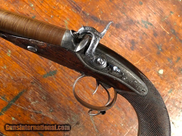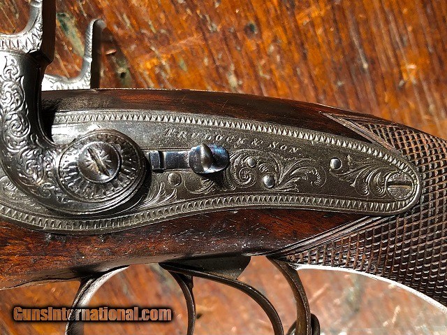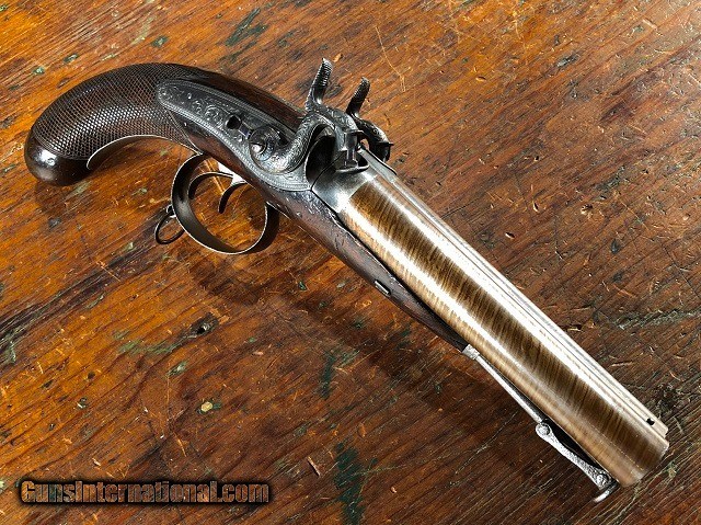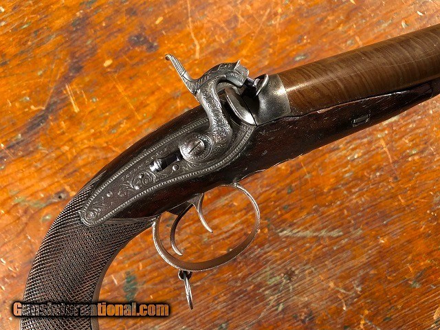 Trulock & Son Dublin Ireland Percussion Double Barrel Howdah Pistol .68 Cal Fine Engraved SxS Tiger Gun