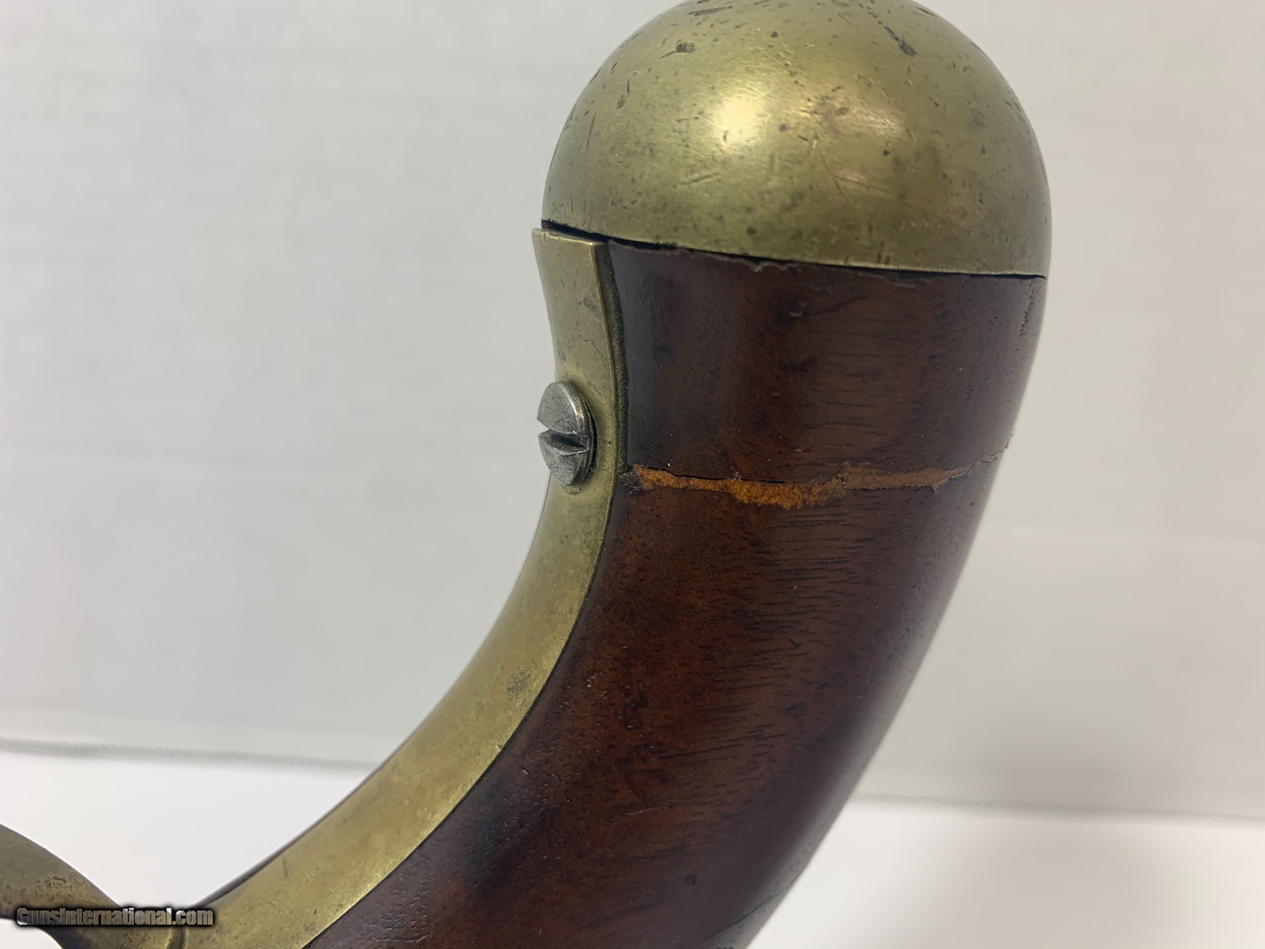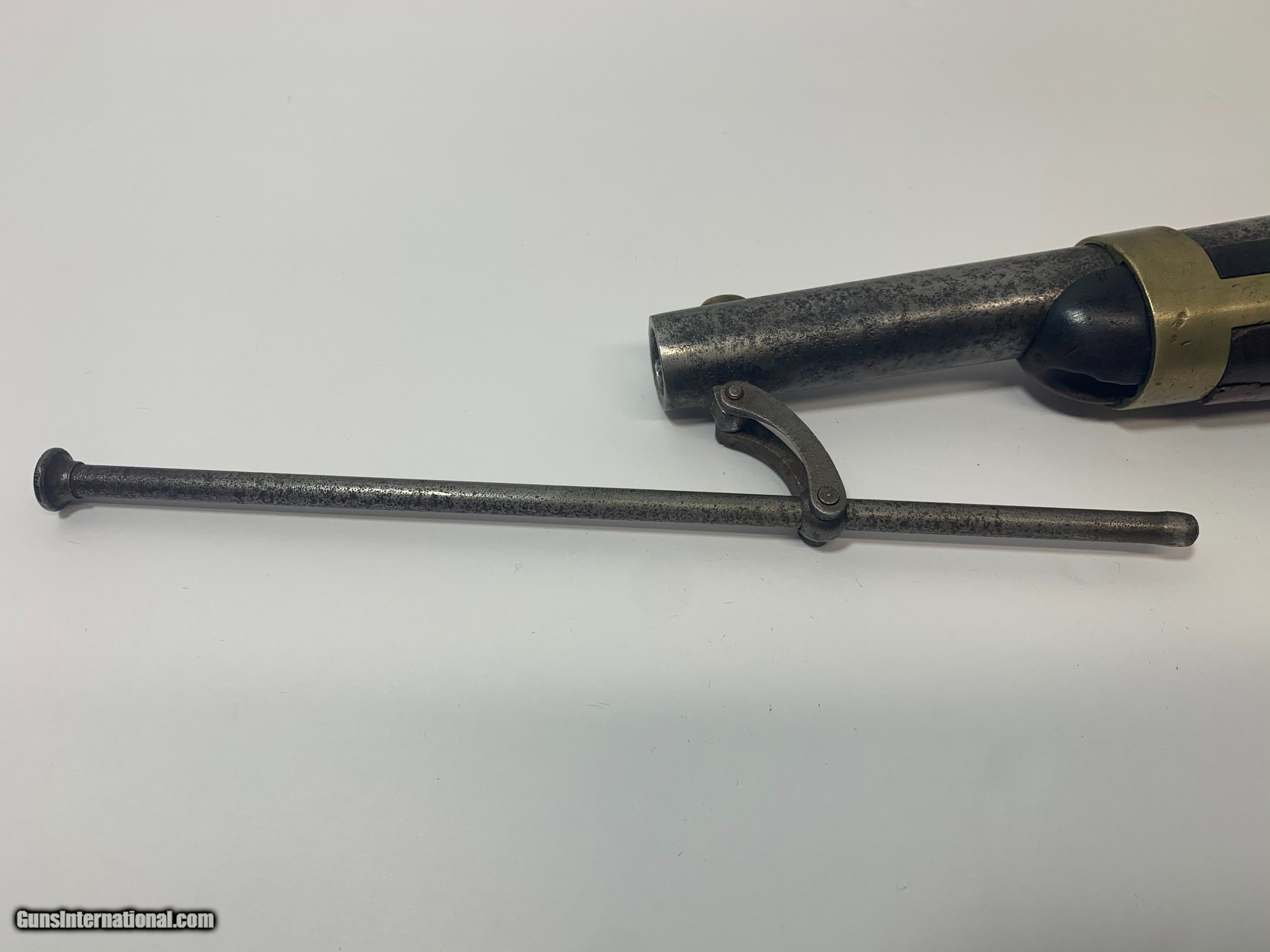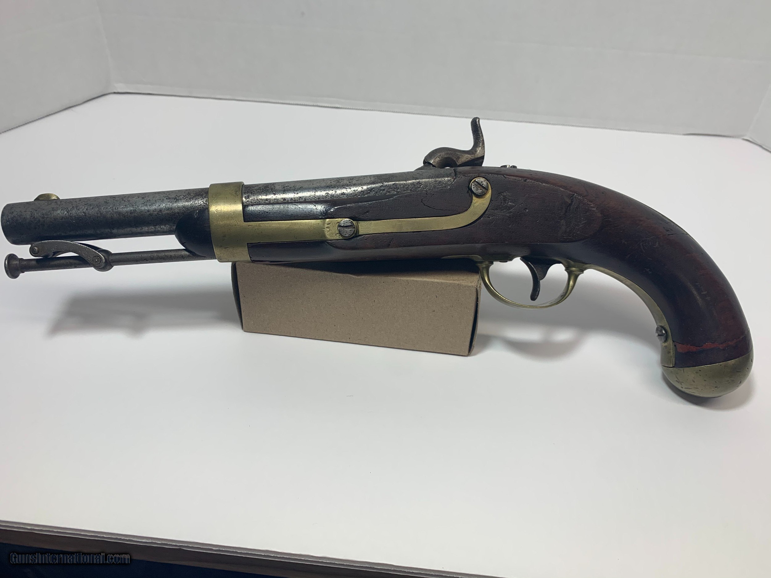 Description: Offered for is a U. S. issue H. Aston Model 1842 “Horse Pistol” in .54 caliber manufactured from 1851 to 1852, only about 6000 to these pistols were produced. These single shot pistols were the first percussion pistols issued to the U. S. military Pistol has no bluing and shows sign of wear for its age and use. SOLD Antique: Yes |