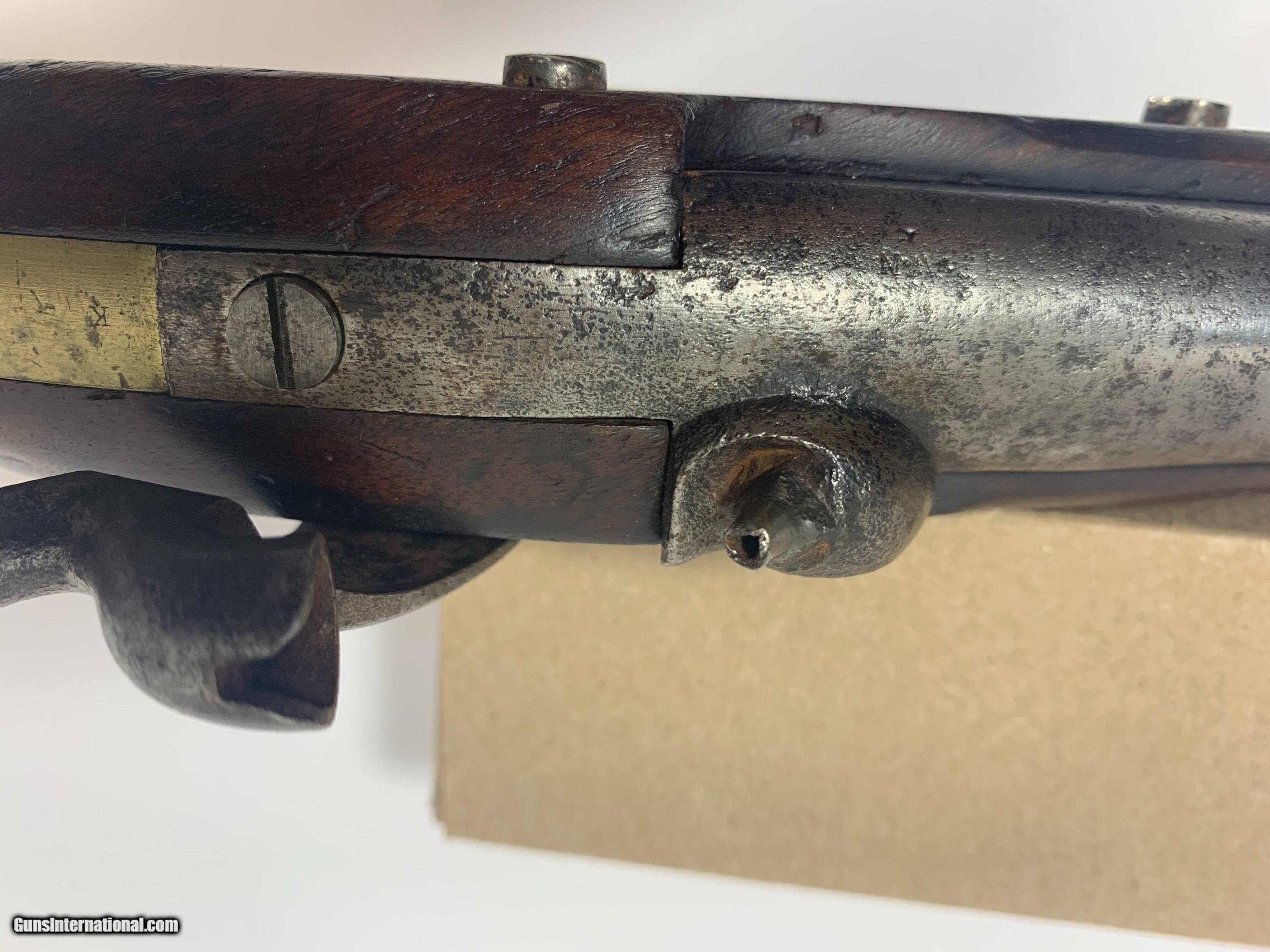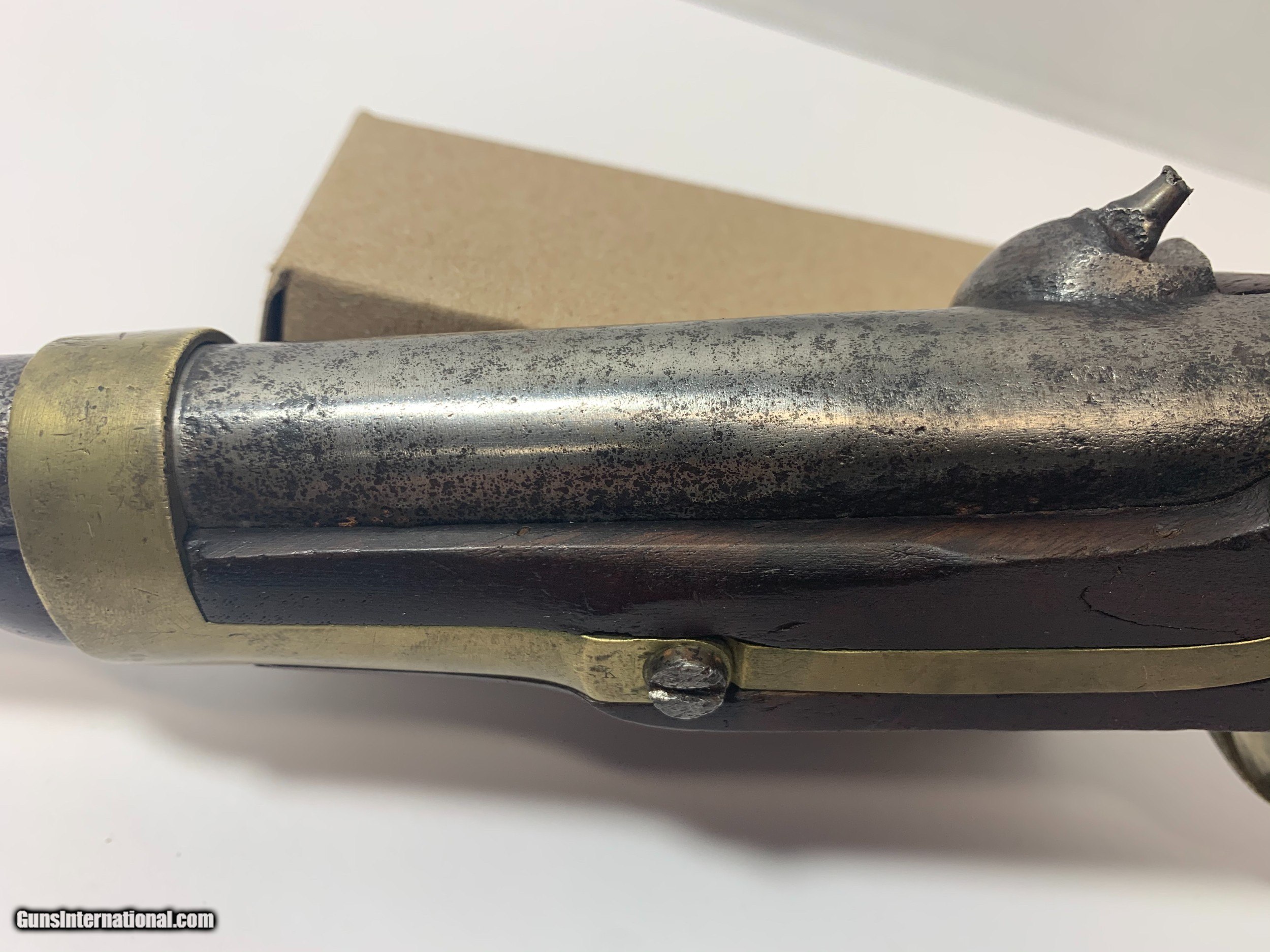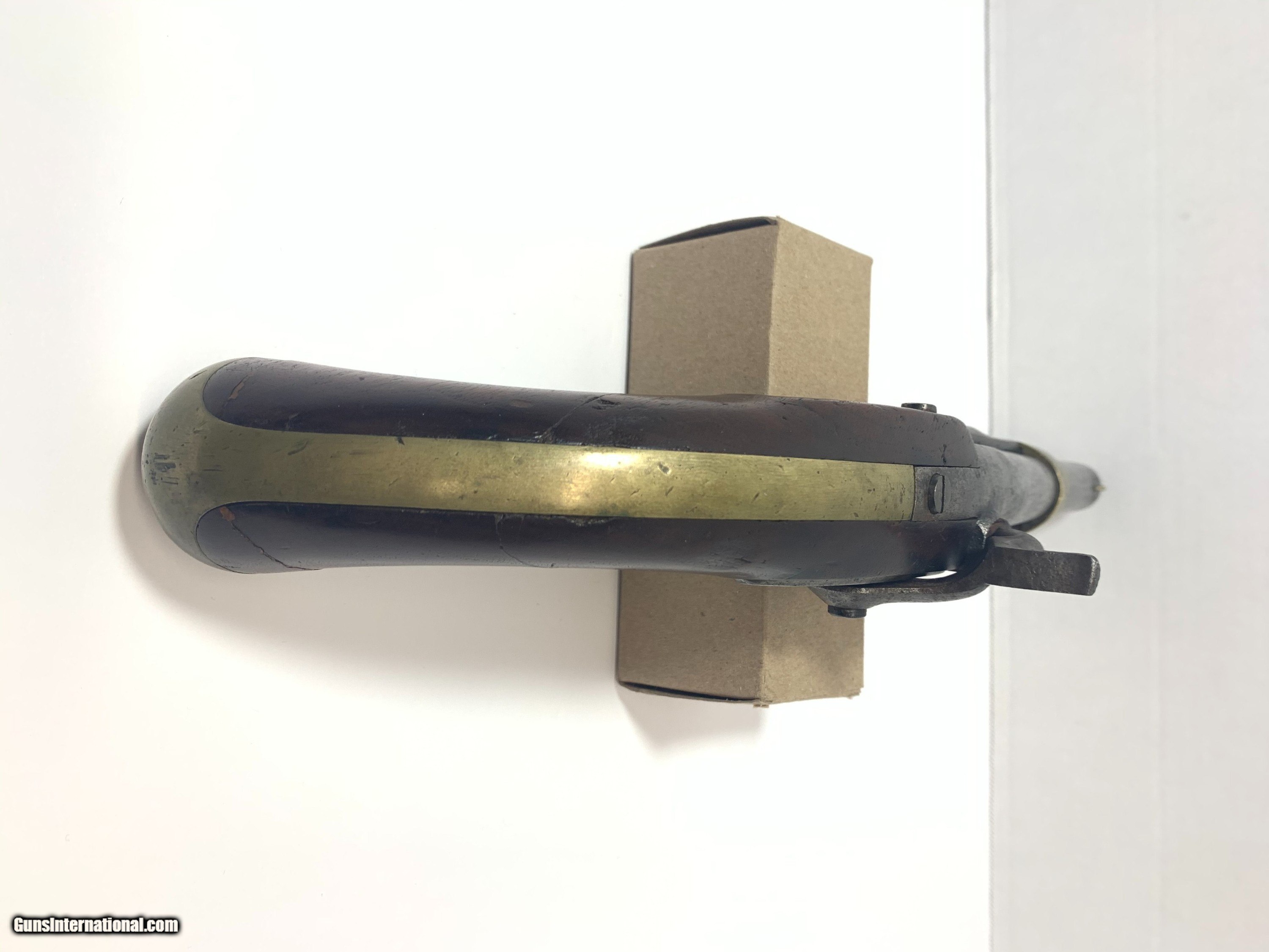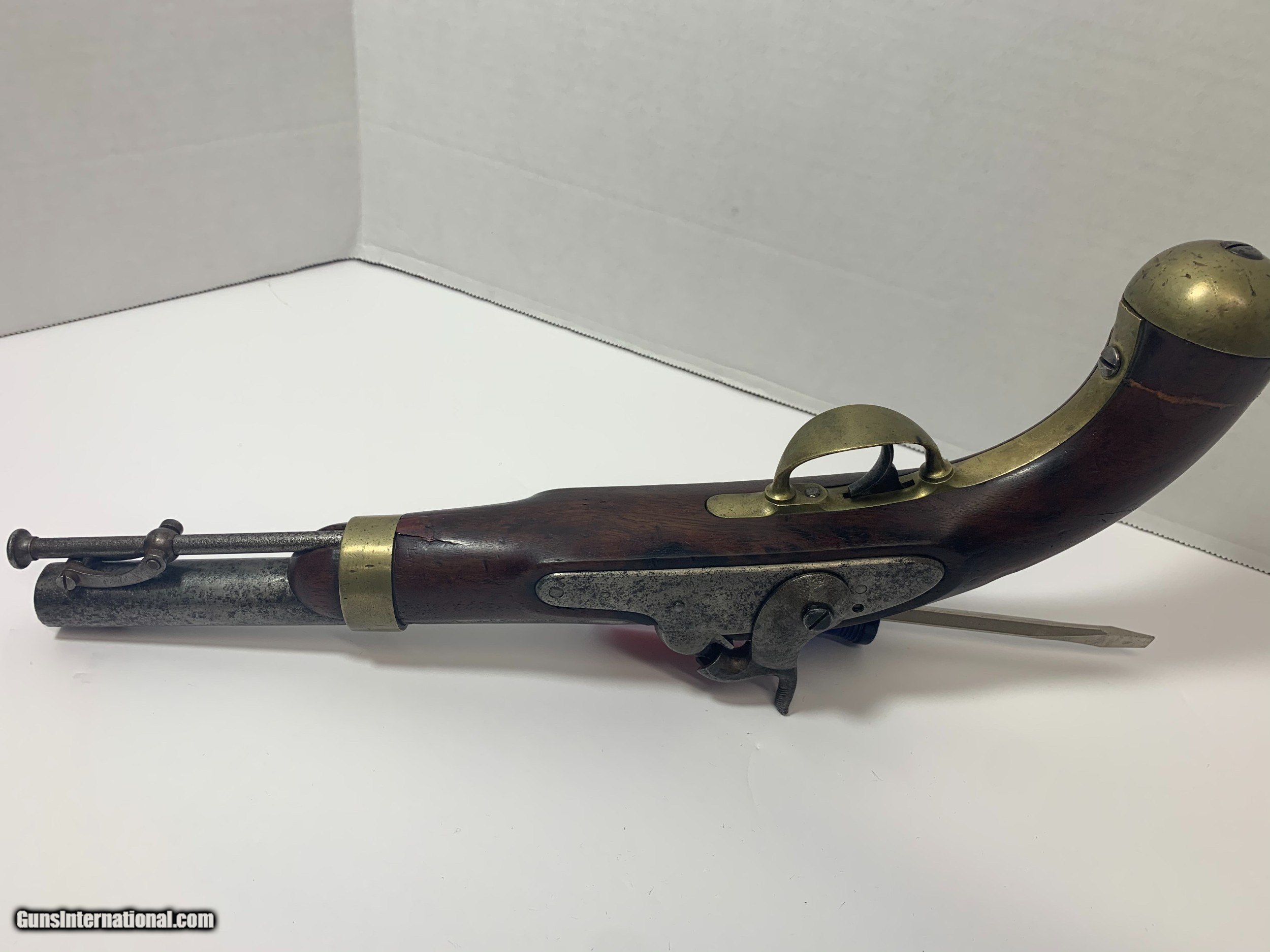 Description: Offered for is a U. S. issue H. Aston Model 1842 “Horse Pistol” in .54 caliber manufactured from 1851 to 1852, only about 6000 to these pistols were produced. These single shot pistols were the first percussion pistols issued to the U. S. military Pistol has no bluing and shows sign of wear for its age and use. SOLD Antique: Yes |