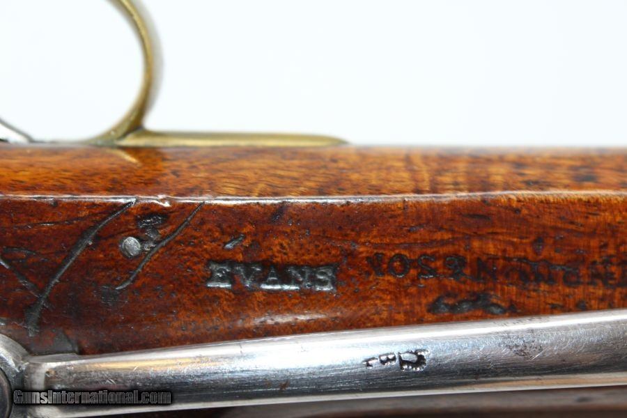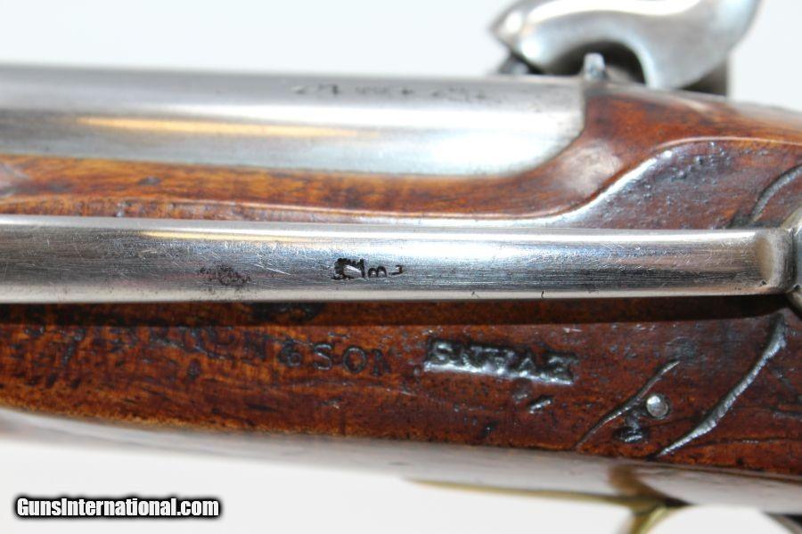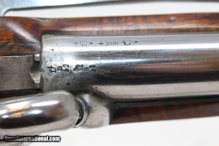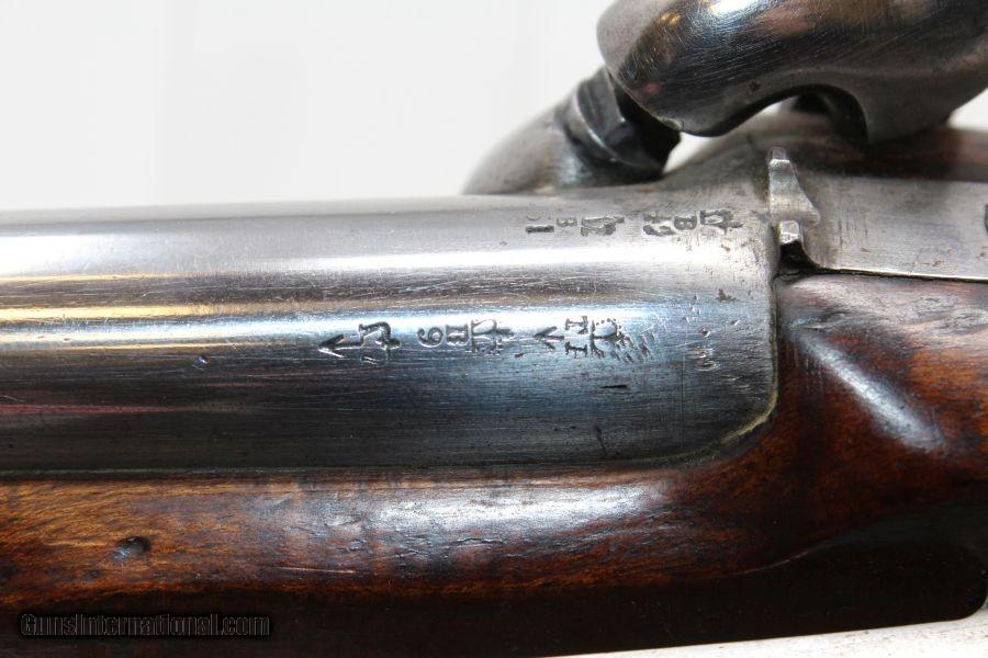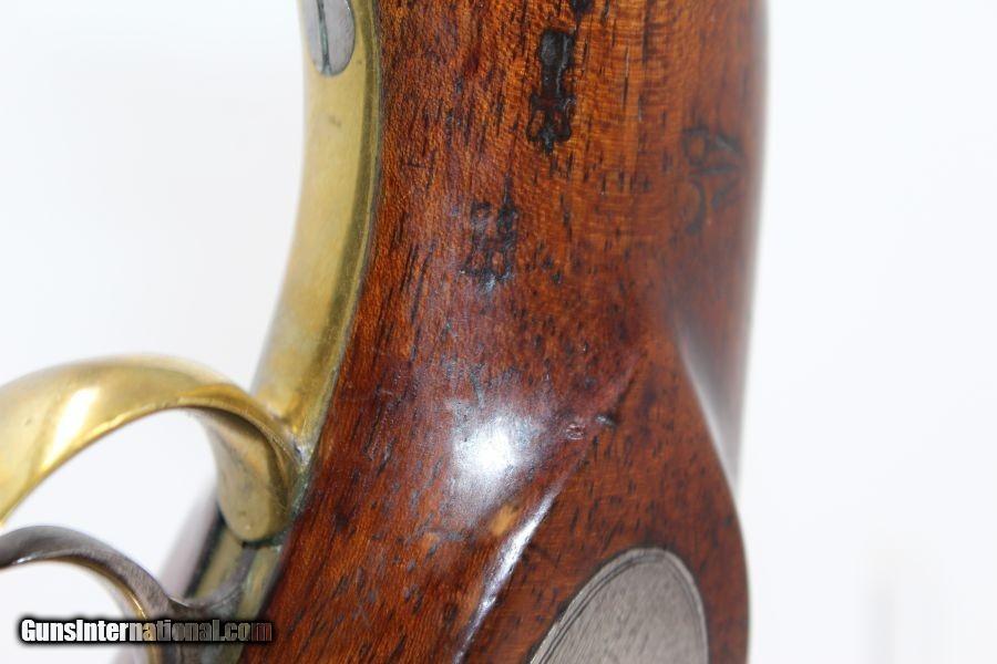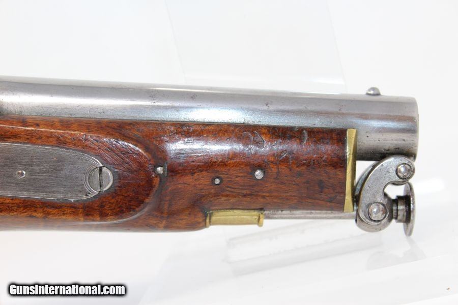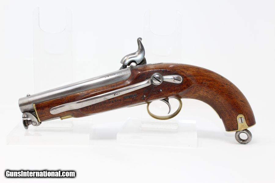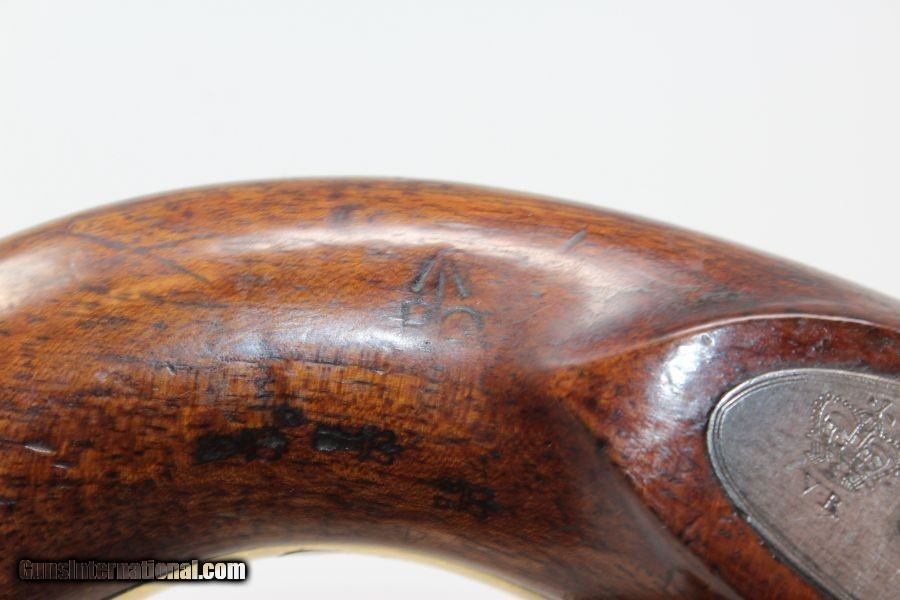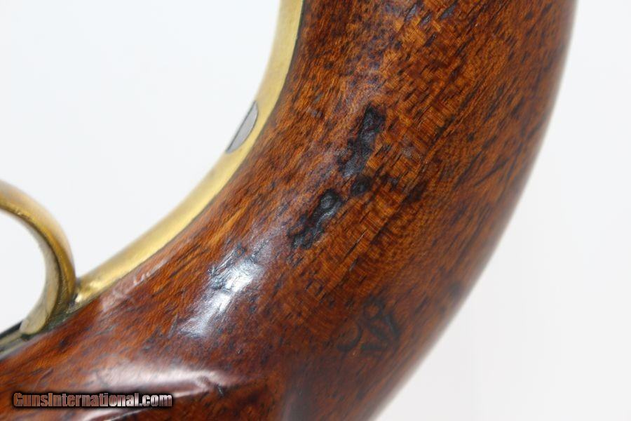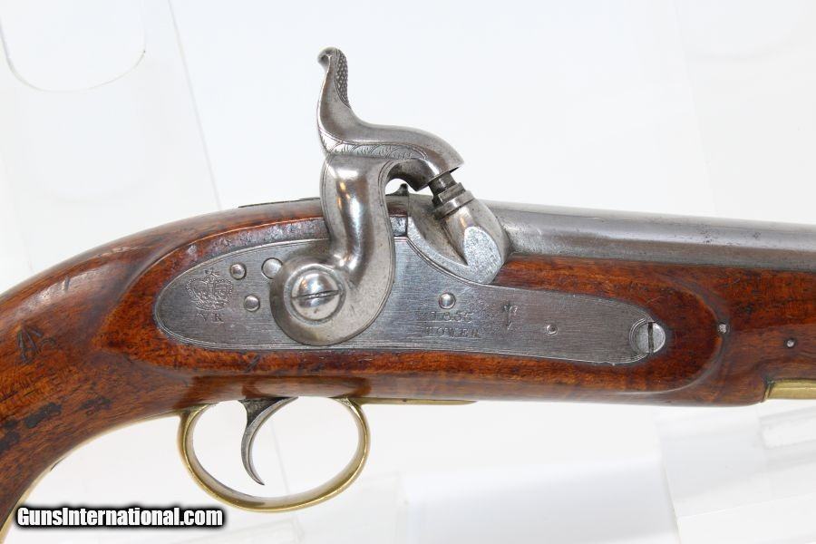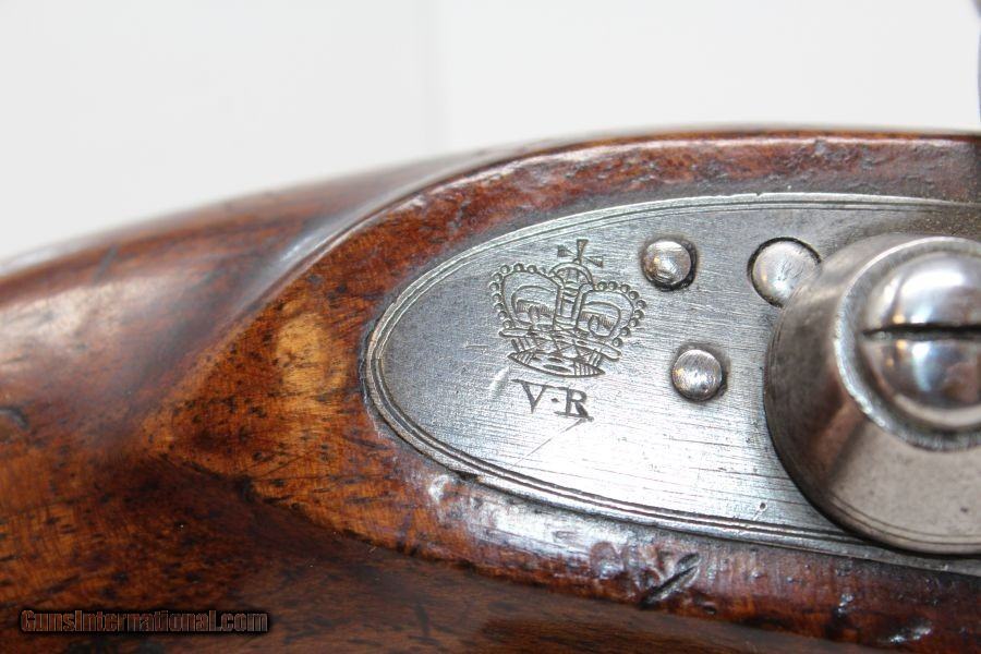Description: VICTORIAN BRITISH Antique “COAST GUARD” Pistol Used by the British Coast Guard/Customs Service Here we present an antique British Tower percussion pistol, made circa 1855 by SWINBURN & SON. C. P. Swinburn was a gunmaker located at 16-17 Russell Street in Birmingham, England, beginning in the 1840s. This pistol dates to the mid-1850s and was used by the British Coast Guard and Custom’s Services along with much of the Royal Navy. Her Majesty’s Coast Guard was established in 1822 and had the primary responsibility saving the sailors and property when a shipwreck occurred. The Coast Guard also patrolled the entire UK coastline to prevent smuggling. By the 1850s, smuggling was on the wane, and so the responsibility of protecting the coastline from smugglers was transferred to the Royal Navy, putting the Coast Guard’s primary duty once again to assisting with wrecks and rescue operations. This model saw service during the Crimean War (1853-1856). The rise of the revolver made pistols such as this somewhat outdated, and by the late 1850s, it started to fall out of favor due to the increasing popularity of percussion revolvers, although examples continued to be produced into the early 1870s and were used side by side. This pistol is also known as the Short Sea Service pistol. Its lock is dated "1855" and the left stock is marked “EVANS” and “ODS WINBURN & SON". It is also littered with British proof and acceptance markings. The lock bears the cipher of Queen Victoria. The overall condition is fine. The iron parts are mostly bright. The markings are clear and numerous. The walnut stock is smooth and solid. The bore is smooth and clean. The action is excellent, strong and crisp. Own the original! This is a legitimate antique and not a reproduction. Barrel is 6 inches. Caliber: .57 Percussion Overall condition as seen in photos. Very Fast. Very Safe. FREE SHIPPING WORLDWIDE. Delivered directly to your door by express mail! Guaranteed AUTHENTIC & Includes CERTIFICATE OF AUTHENTICITY. ancestryguns $1565 #8417 SOLD Antique: Yes |