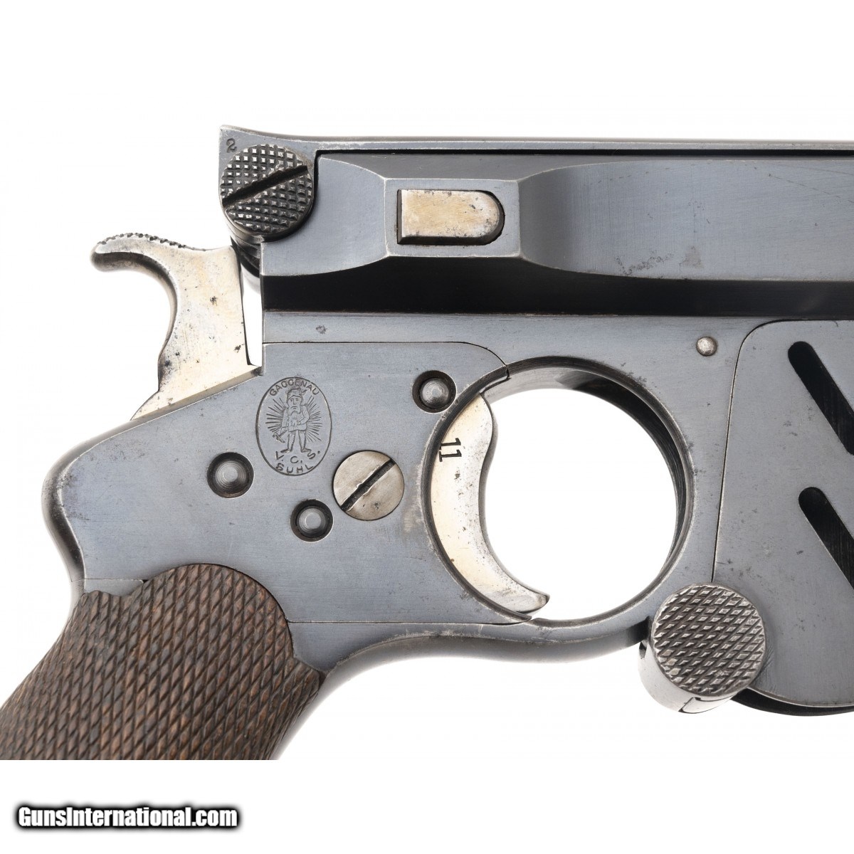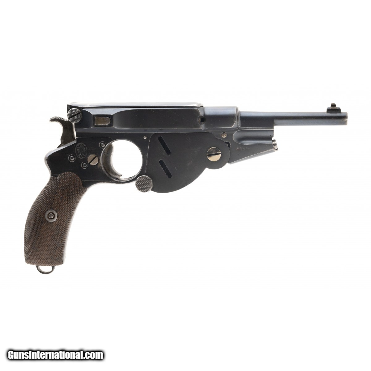 Description: " Bergmann pistol with 4.5"" barrel Bore is near excellent. Pistol has 98% original blue. Straw parts have excellent color grips are excellent with no wear! Excellent condition Bergmann. SOLD Antique: Yes |