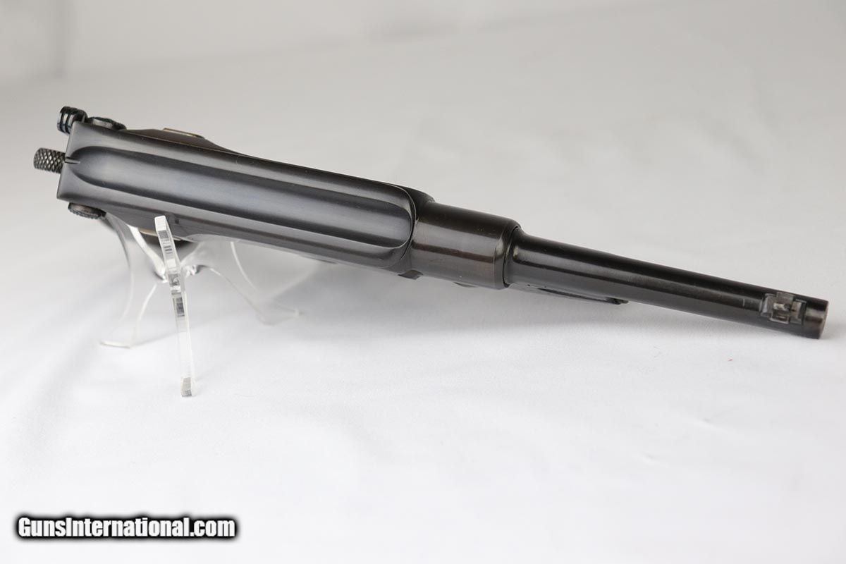 Description: This is a fantastic example of an antique Bergmann No.3, one of the earliest semi-autos made, a few years before Mauser C96 and the Luger pistols were developed. Unfortunately, Bergmann guns were not a commercial success, and as a result very few were made in a couple of different calibers. This gun retains nearly all of its beautiful “rust blue”, with some light patination on the grip straps. Strong straw and fireblue is still present on the small parts. Good bore and excellent grips with no defects. Bore does show some minor freckling throughout. A very rare “monkey tail” magazine charger is present as well. Sharp proofmarks throughout. A stunning example of a scarce antique semi-auto. Guaranteed authentic and original. Visit legacy-collectibles for more... SOLD Curio/Relic: Yes Manufacturer: Bergmann Model: No. 3 Caliber Info: 6.5mm Bergmann Bore: 5/10 Condition: 98+% Manufacture Date: N/A |