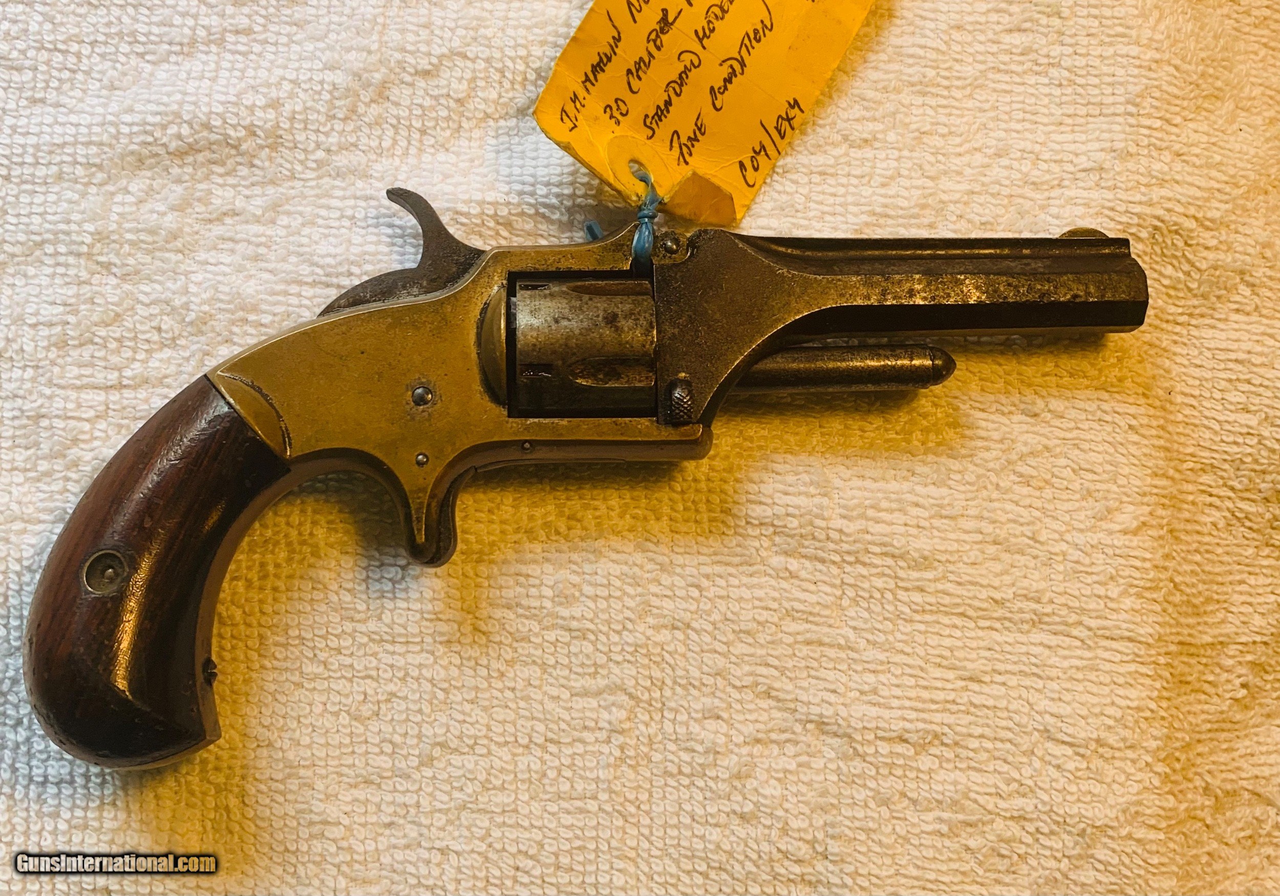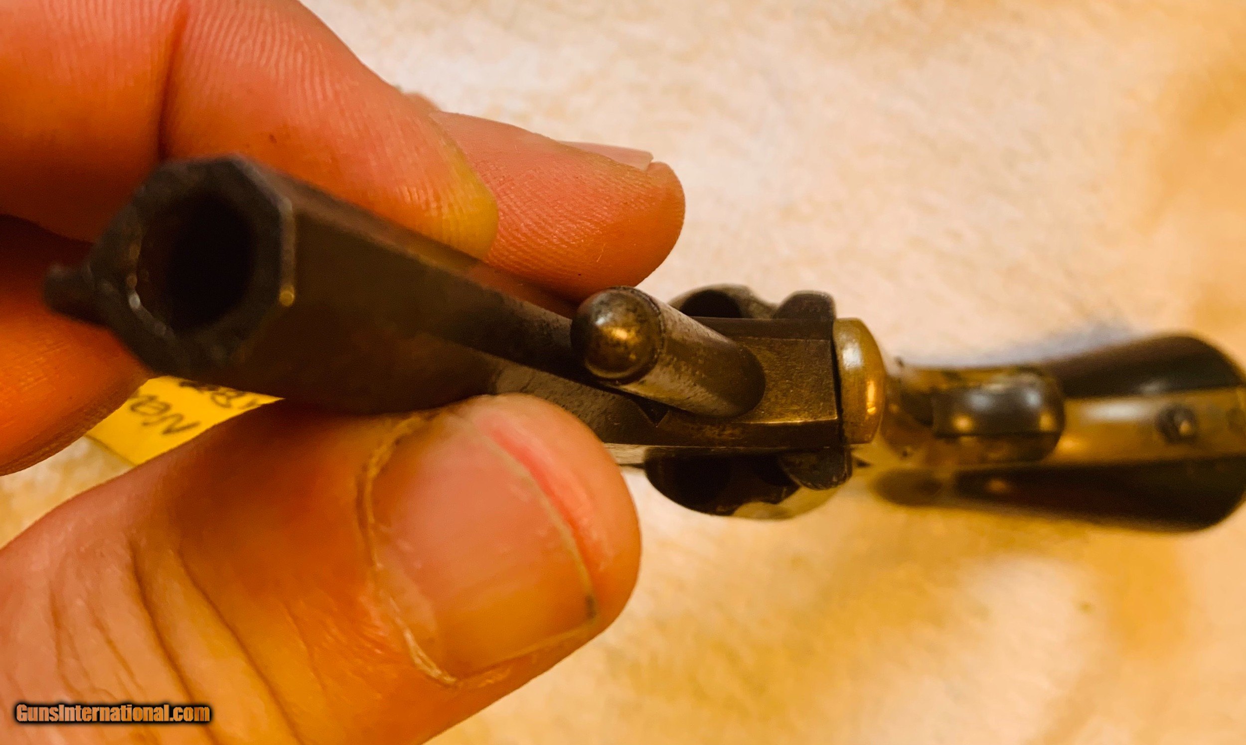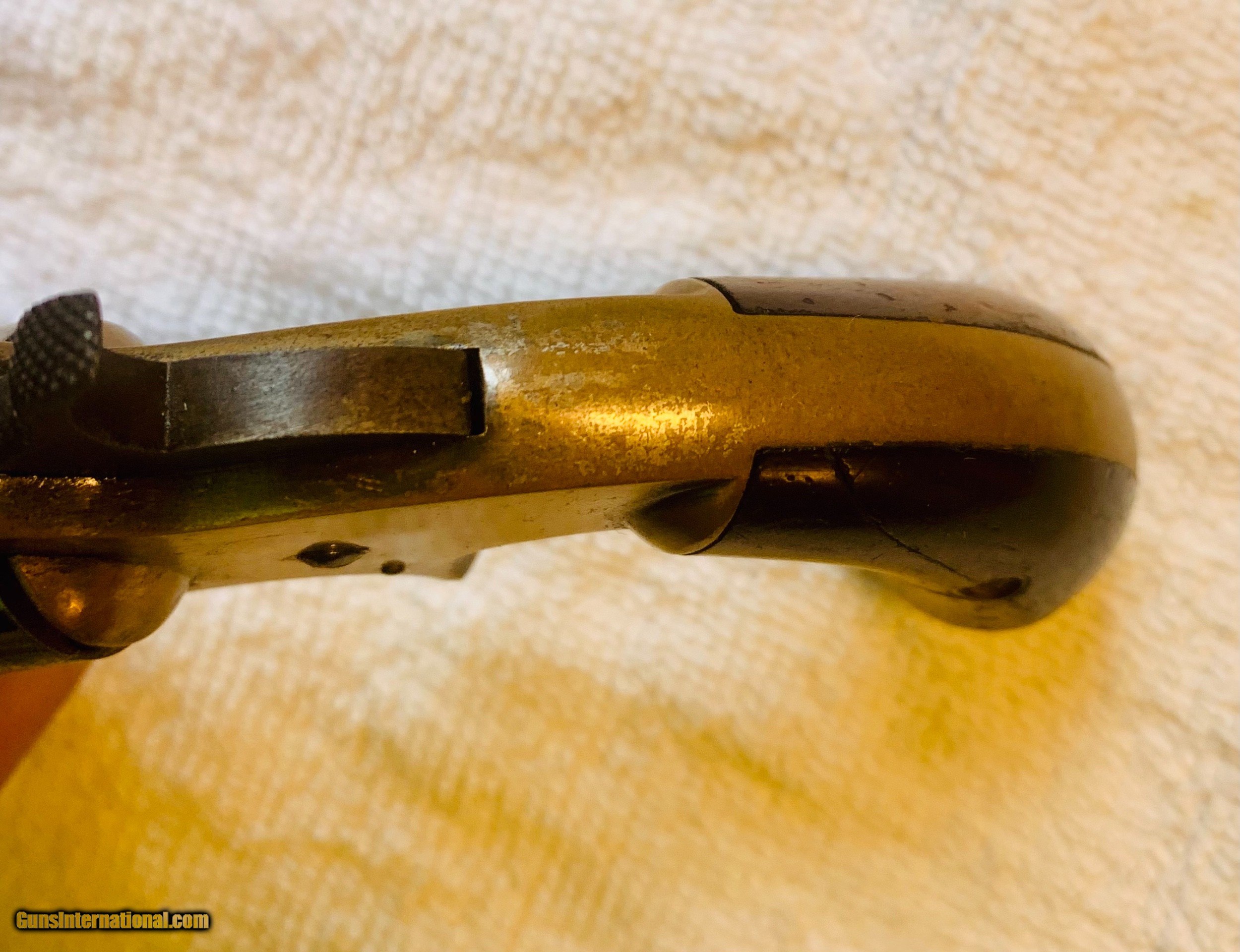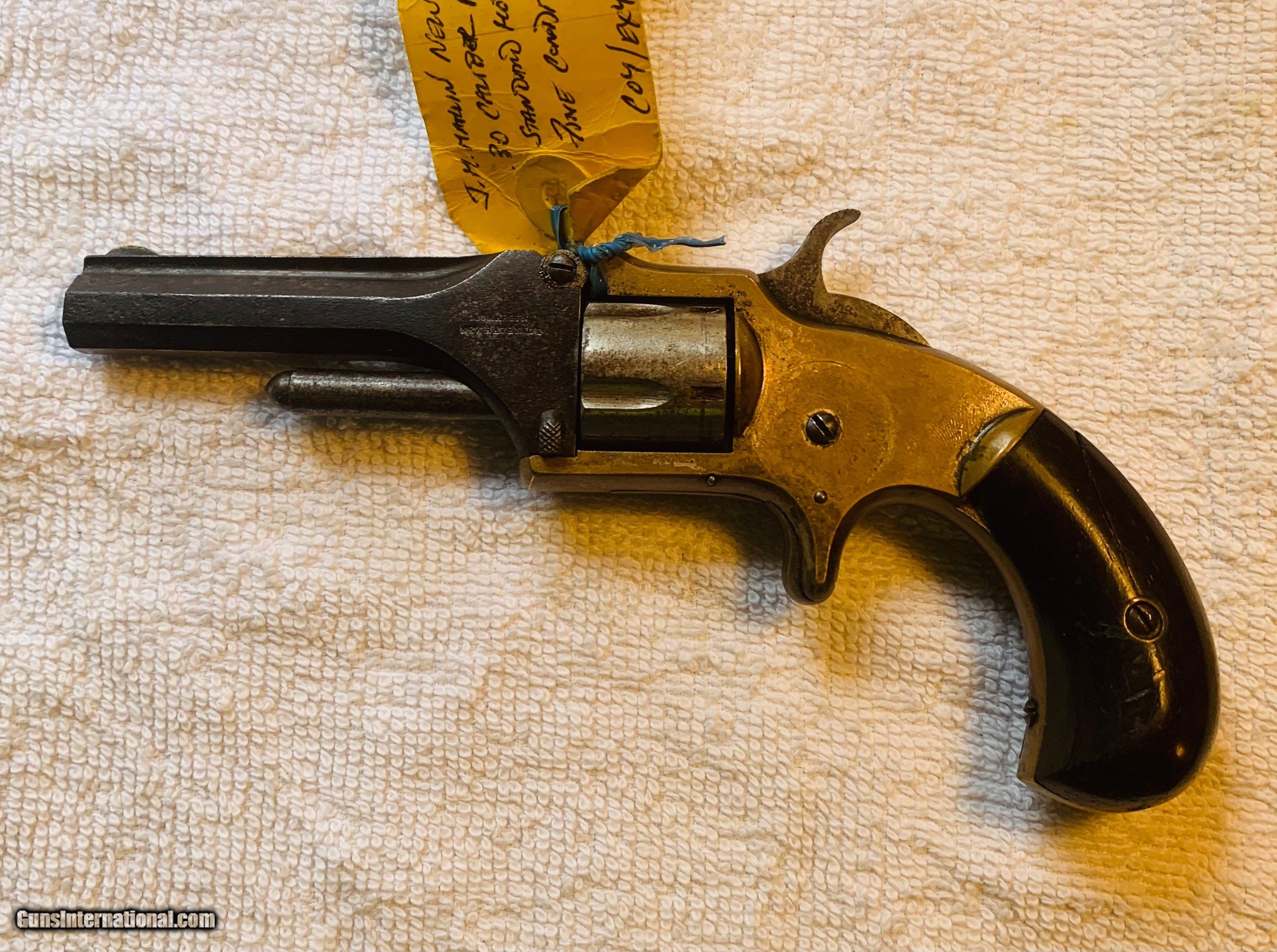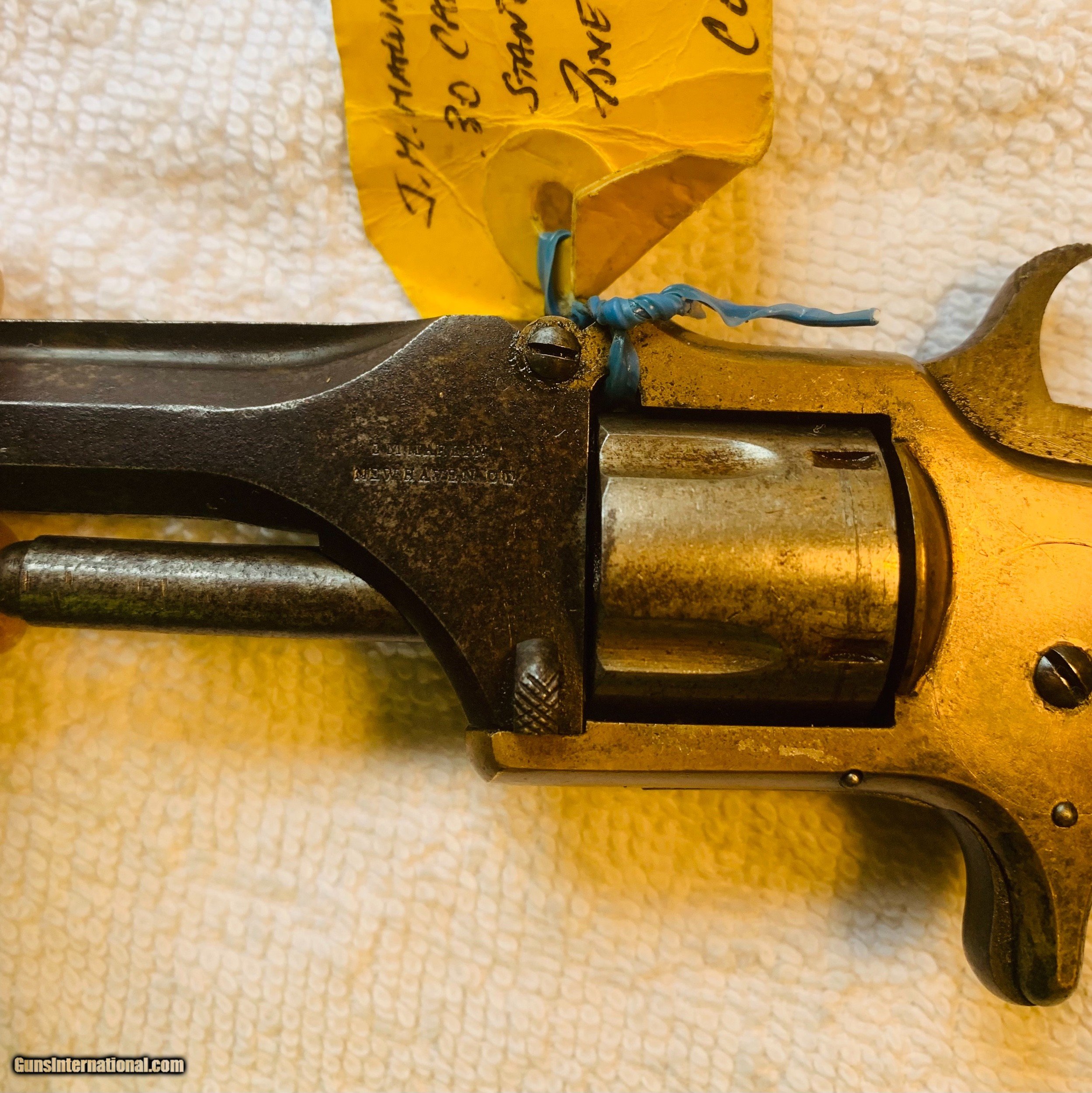 Description: 5 shot .30 caliber revolver made in New Haven CT .30 caliber. 3 1/2" barrel c1872-3 Serial # 1415 SOLD Antique: Yes |