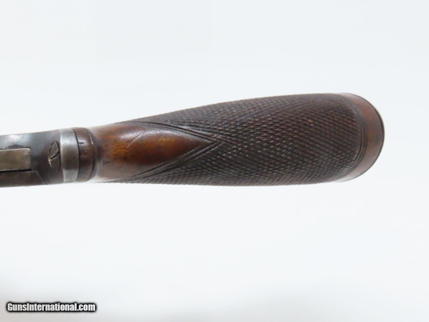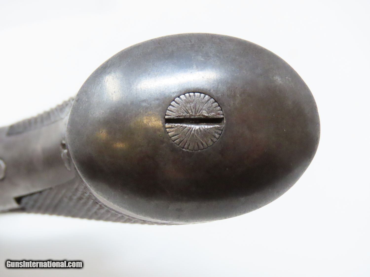 Description: Rare WILLIAM TRANTER PATENT Antique Single Shot .230 Rimfire “SALON” Pistol .230 Caliber for Use Indoors! Here we present an antique William Tranter Patent Pistol, made circa 1880 in London, England. William Tranter (1816-1890) was a British gunmaker and gun designer famous for inventing the Tranter revolver. Tranter is best known in American firearms collecting for the revolvers that were imported by the Confederacy during the American Civil War. Salon pistols came into fashion in the mid-19th century, where they typically featured heavy barrels and were chambered in a small caliber. They were used for target shooting in homes with a dedicated parlor or gallery for this purpose. Other guns of this type include “Gallery Guns”, “Flobert Guns”, “Saloon Guns”, and “Parlor Guns”, all designed for recreational indoor target shooting. These guns were developed in 1845, when French inventor Louis-Nicolas Flobert created the first rimfire metallic cartridge by modifying a percussion cap to hold a small lead bullet. These games were popular in saloons, at carnivals, and as mentioned above, in people’s homes during this period. The overall condition is fine. The action is strong. The top of the barrel is retailer marked "FREDERICK T. BAKER. LONDON. No. 4589”. The bore is shiny bright. Around 30% of the original blue remains on the barrel. The checkering on the grips remains sharp. A very nice example of a rare English pistol! Own the original! This is a legitimate antique and not a reproduction. Barrel is 6 inches. Caliber: .230 Rimfire Overall condition as seen in photos. Very Fast. Very Safe. FREE SHIPPING WORLDWIDE. Delivered directly to your door by express mail! Guaranteed AUTHENTIC & Includes CERTIFICATE OF AUTHENTICITY. ancestryguns $1675 #20514 SOLD Antique: Yes |