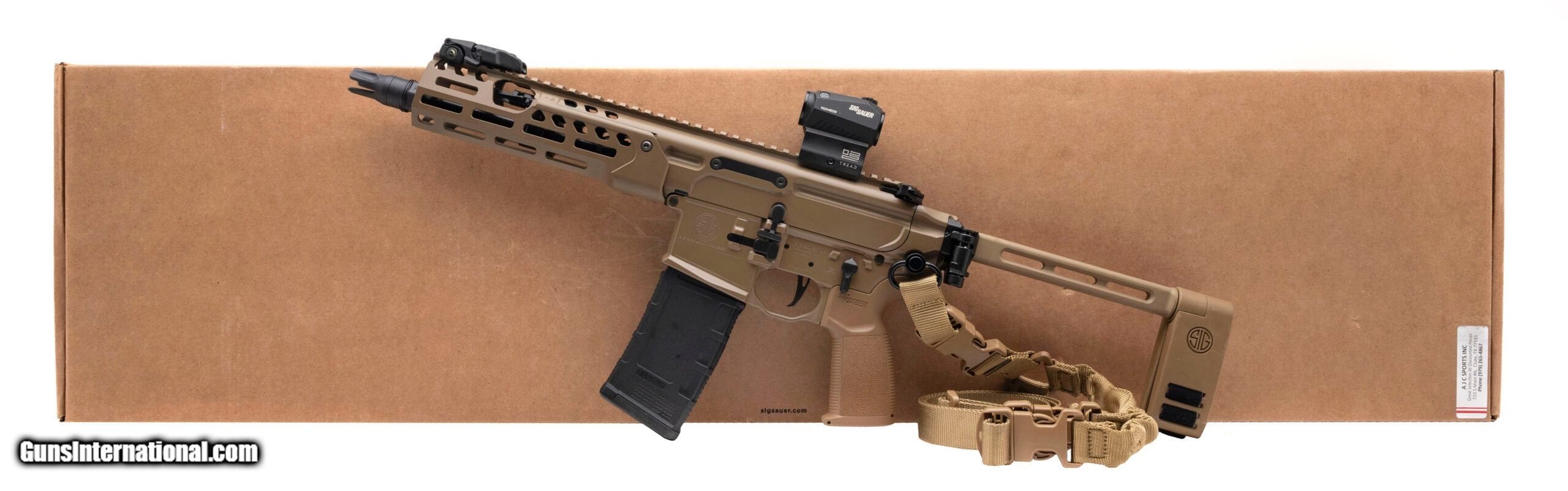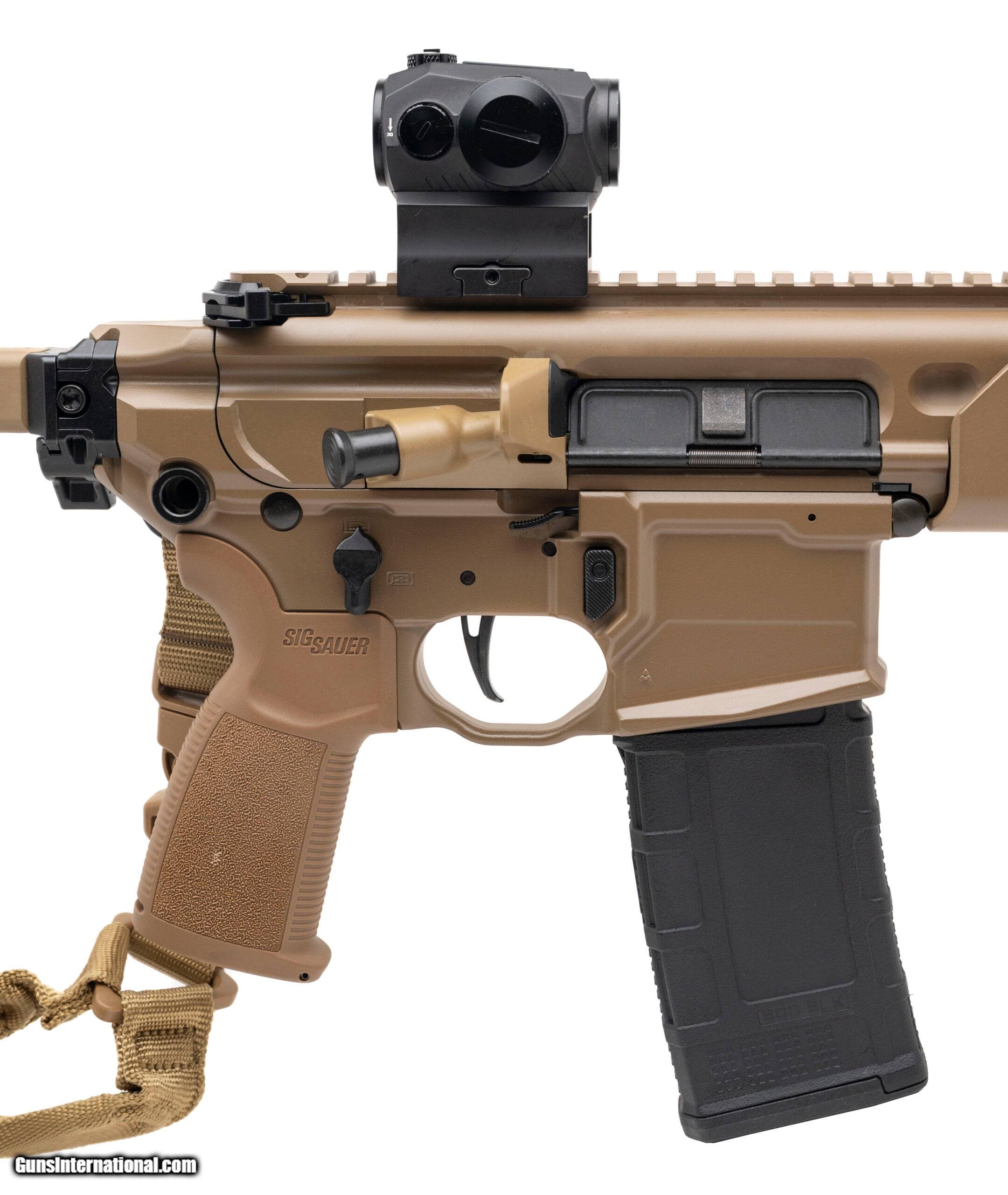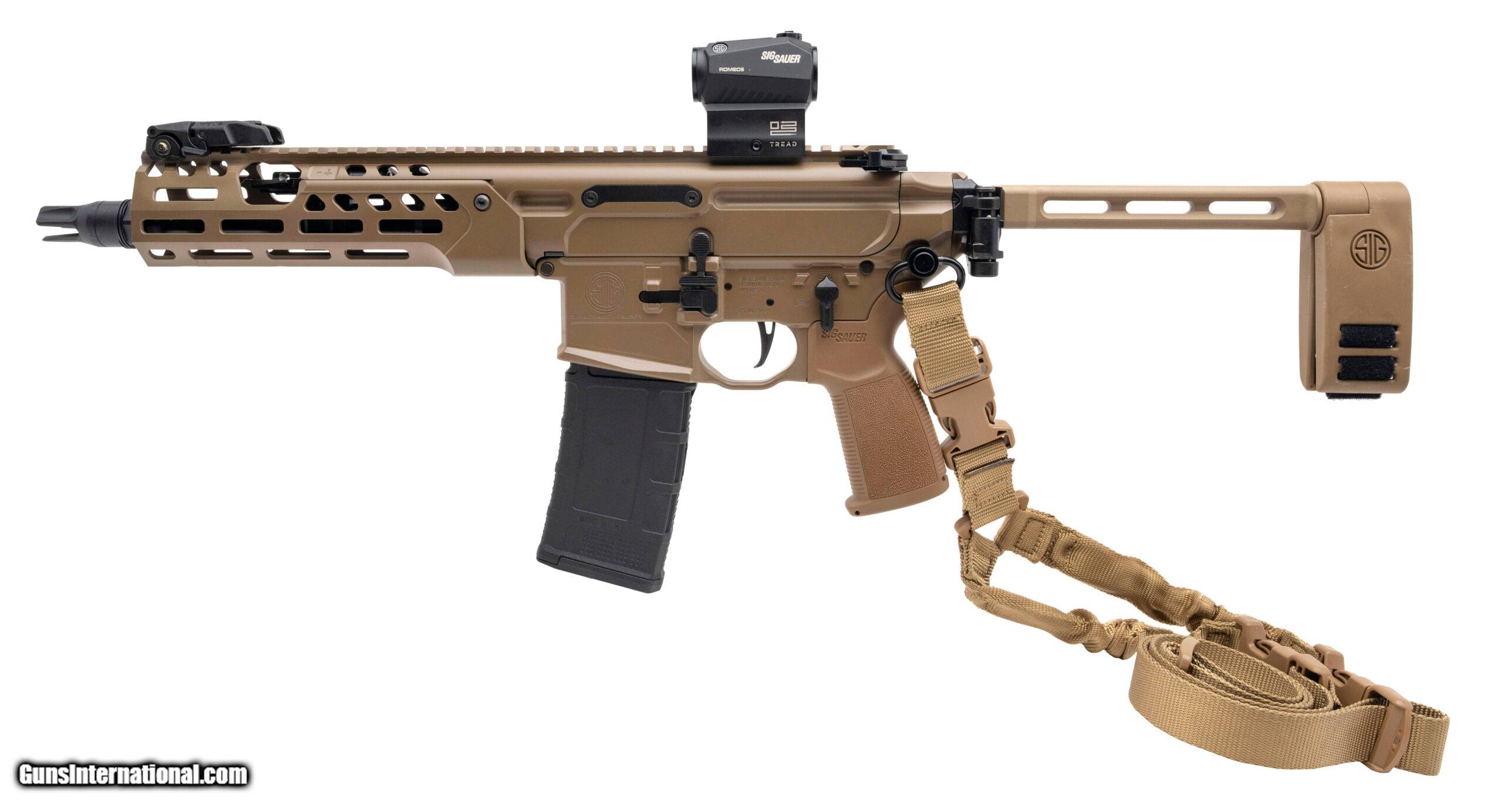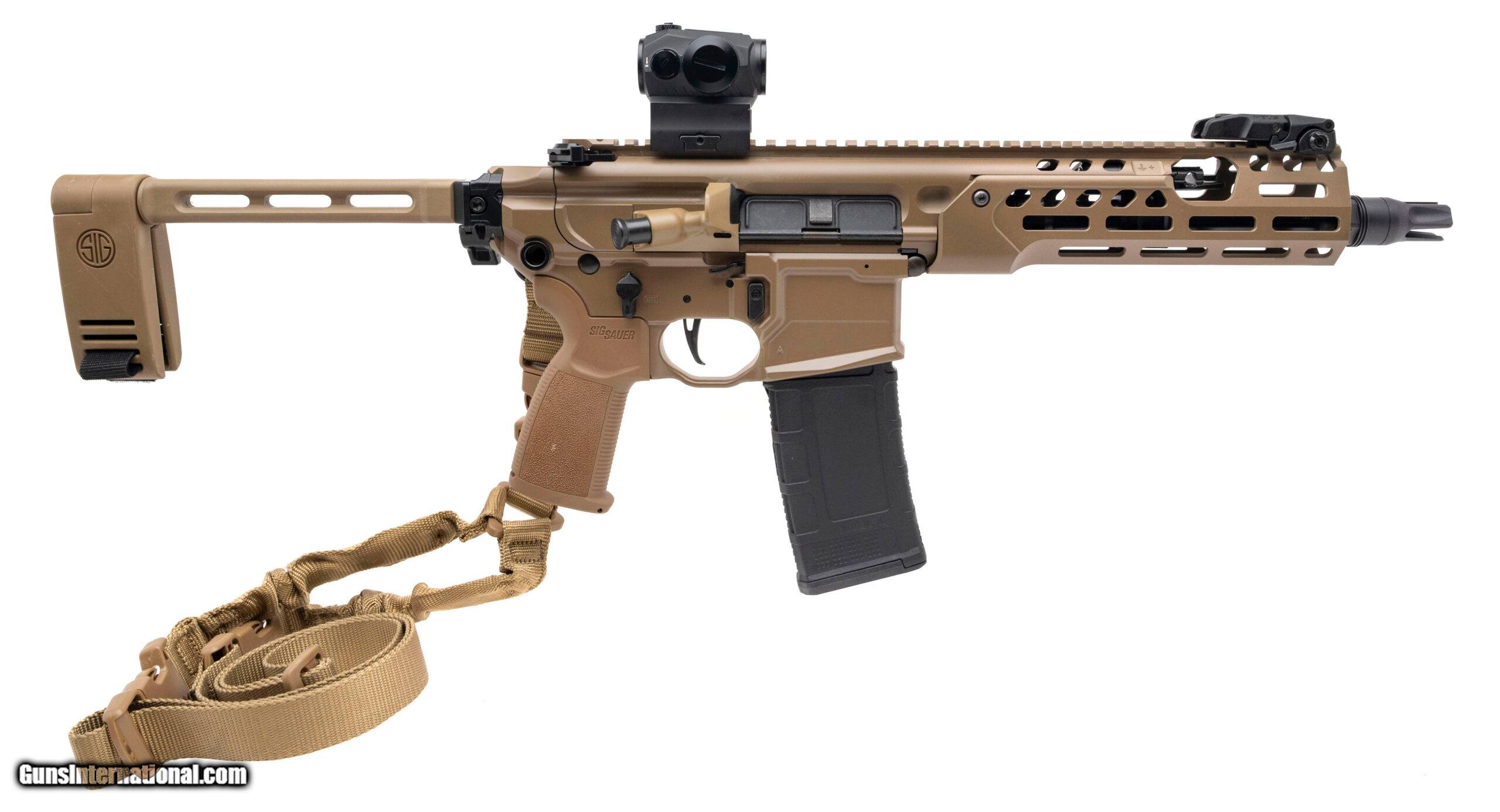 Description: "SN: 63J083041. Modern production, .300 Blackout with a 9"" barrel. Bore is bright with strong rifling. Semi-auto tactical pistol with a Sig Romeo5 red dot optic, Magpul MBUS pop-up sights, adjustable gas block, side-folding pistol brace, and full ambidextrous controls. Excellent condition overall. Comes with box and a one-point sling. Price: $2,450.00 Contact Seller |