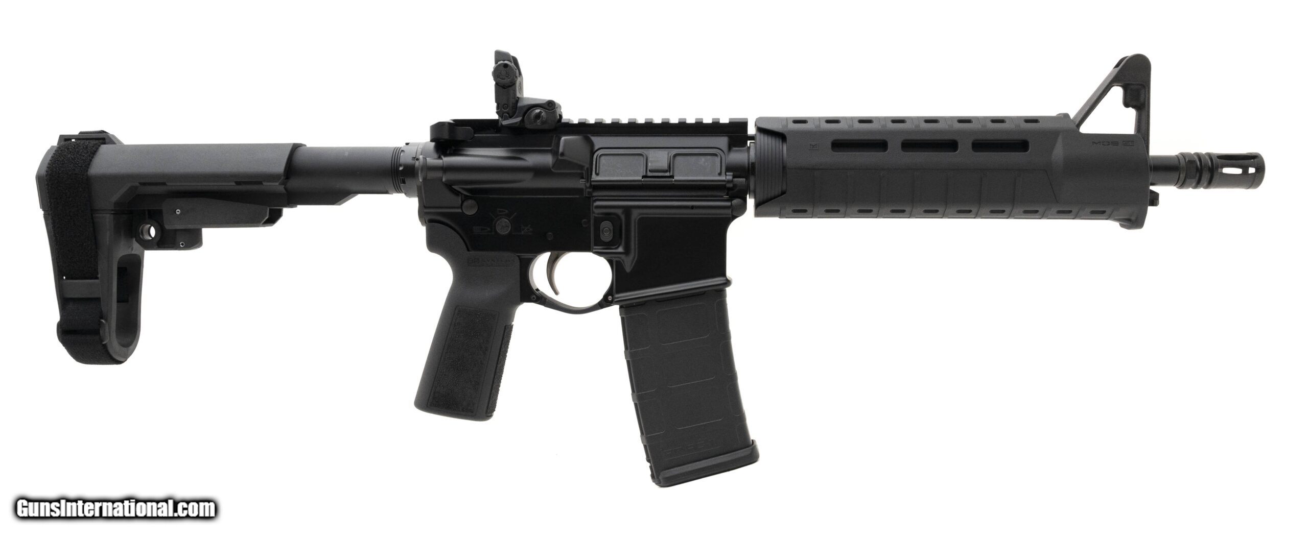 Description: "SOLGW M4 Trunk Monkey Pistol 5.56 NATO. Semi-automatic with a 11.5"" Barrel, Black Matte Finish, B5 Grip, SB Pistol Brace, Magpul SL Carbine Handguard, and Fixed Front Sight Post. 30 Round Magazine Capacity. 1:7"" Twist and 1/2x28"" Thread Pitch. NEW. UPC: 785939518931 (STOCK PHOTO) SOLD |