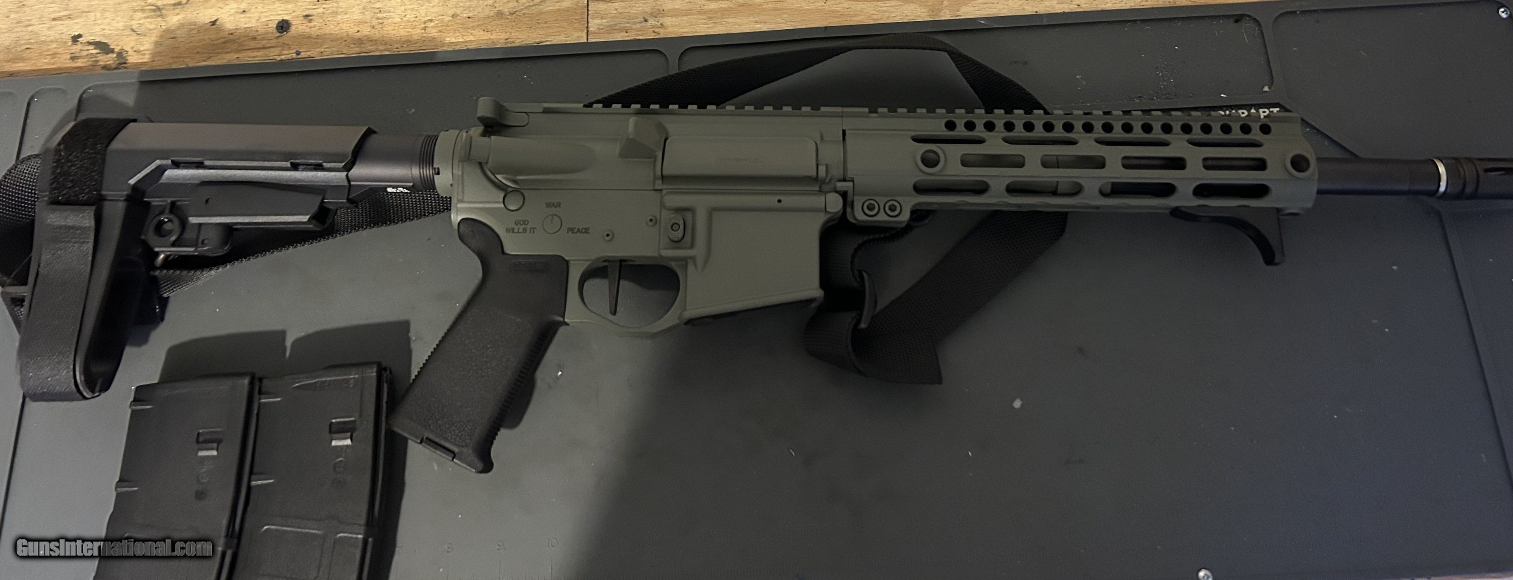 Description: 12.5 300 AAC blackout pistol: Spike's billet lower Spike's forged upper CMMG 12.5" barrel Micro Best NIB BCG Knights charging handel Blackout defense zero trigger (3#) Midwest Industries rail Voltor A5 buffer system SB Tactical sb3 Green air dry cerakote Professionally built by armorer with 20+ years of experience Buyer pays actual shipping SOLD Rifle Caliber: .300 AAC Blackout |