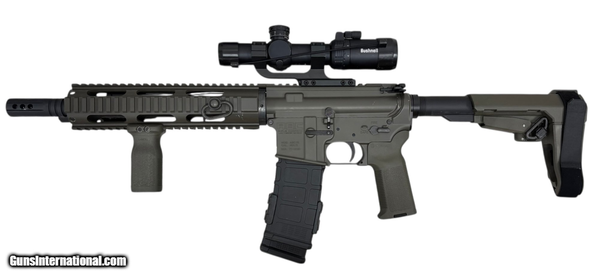 Description: Guns Listing ID: 536042 Firearm is preowned and in excellent condition. There are light handling marks present from use throughout the piece but absolutely nothing egregious nor particularly noteworthy. A Bushnell 1-4x24 AR scope, ToughSoul Tac Light, and a clip for quick reloading. Two 30-round magazines are included as well. This is considered a pistol due to its barrel length, so please be aware of this for buyers in states with different requirements for handguns vs long guns. Barrel measures 10.5", chambered in 5.56, and has a capacity of 30 rounds. Listing photos showcase everything that is included with purchase in its entirety - anything not pictured should not be assumed to be included unless otherwise stated in listing description. Payment for orders is required within 48 hours of s end. Orders are shipped within two business days following payment - orders are often shipped much sooner than this. SOLD Manufacturer: ABC RIFLE COMPANY Model: ABC-15 Caliber Info: 5.56X45MM NATO Condition: Used - Non-Certified Barrels: 10.5 BARREL Action: SEMI AUTOMATIC Finish: desert tan |