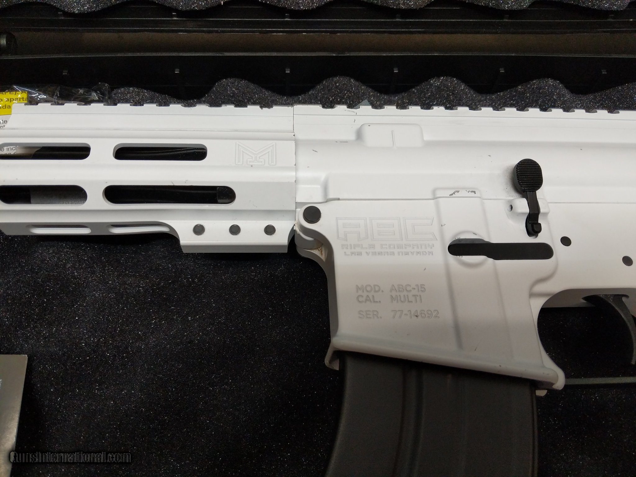 Description: Guns Listing ID: 487014 Good condition ABC Rifle Company ABC-15! Perfect affordable AR platform micro 7.62x39 in original hard case with one 30rd magazine. Finish has some scuffs on it but still a nice addition to any collection. 0125HIZ SOLD Manufacturer: ABC RIFLE COMPANY Model: ABC-15 Condition: Used - Non-Certified Barrels: 5 Gauge Info: 7.62X39MM Finish: BLACK AND WHITE |