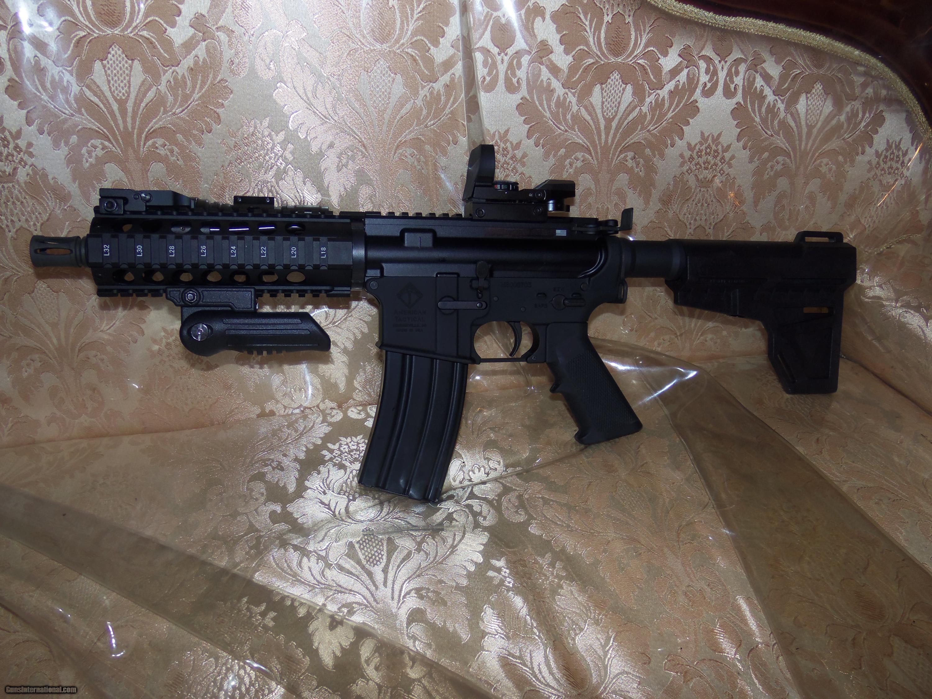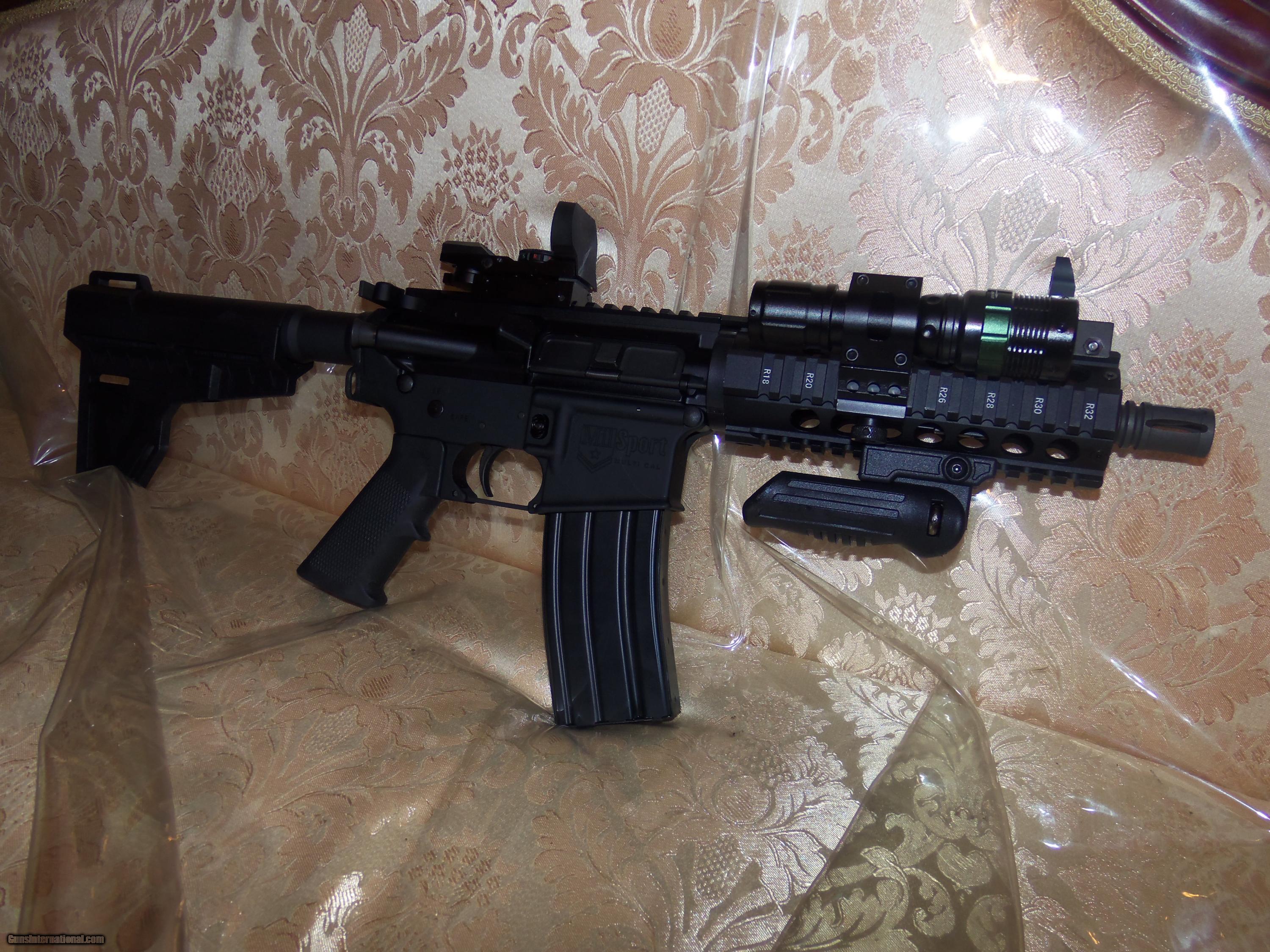 Description: AR-15 Pistol multi caliber Brand NEW! ALL METAL! $685 loaded with all metal quad rail, power flashlight, front sight, and Red/Green tactical 4 reticle Sight, tested at the factory, for accuracy. Credit Cards accepted with 3% added. Shipping to your dealer just $30. This Home Defense System because is built in "ALL METAL" is heavier than all "plastic" AR's and is ready to shoot, it has everything you need Included a "Blade Pistol Stabilizer" Shockwave. If allowed by your State, it will come with a 30 round magazine. otherwise no mag. These AR-15 pistols in 5.56/.223 multi caliber are being advertized for $1,100 to $1,500 buy it for just: $685 and $30 shipping. to your dealer FULL AUTO NICKELBORON BOLT CARRIER SYSTEM, DUST COVER, AND FORWARD ASSIST. Call for more details or if any questions. I will do a Layaway plan with $100 down and $100 a month recurrent payments until paid on a Credit Card. All payments are non refundable. if you fail to make a payment one month you will forfit the gun and becomes property of RR&C Firearms LLC USE YOUR CREDIT CARD ONLY 3% ADDED. CALL TODAY! 214-918-4768 ..............This one won't Last, call today and use a CC will ship it the next day! RR&C FIREARMS LLC SOLD |