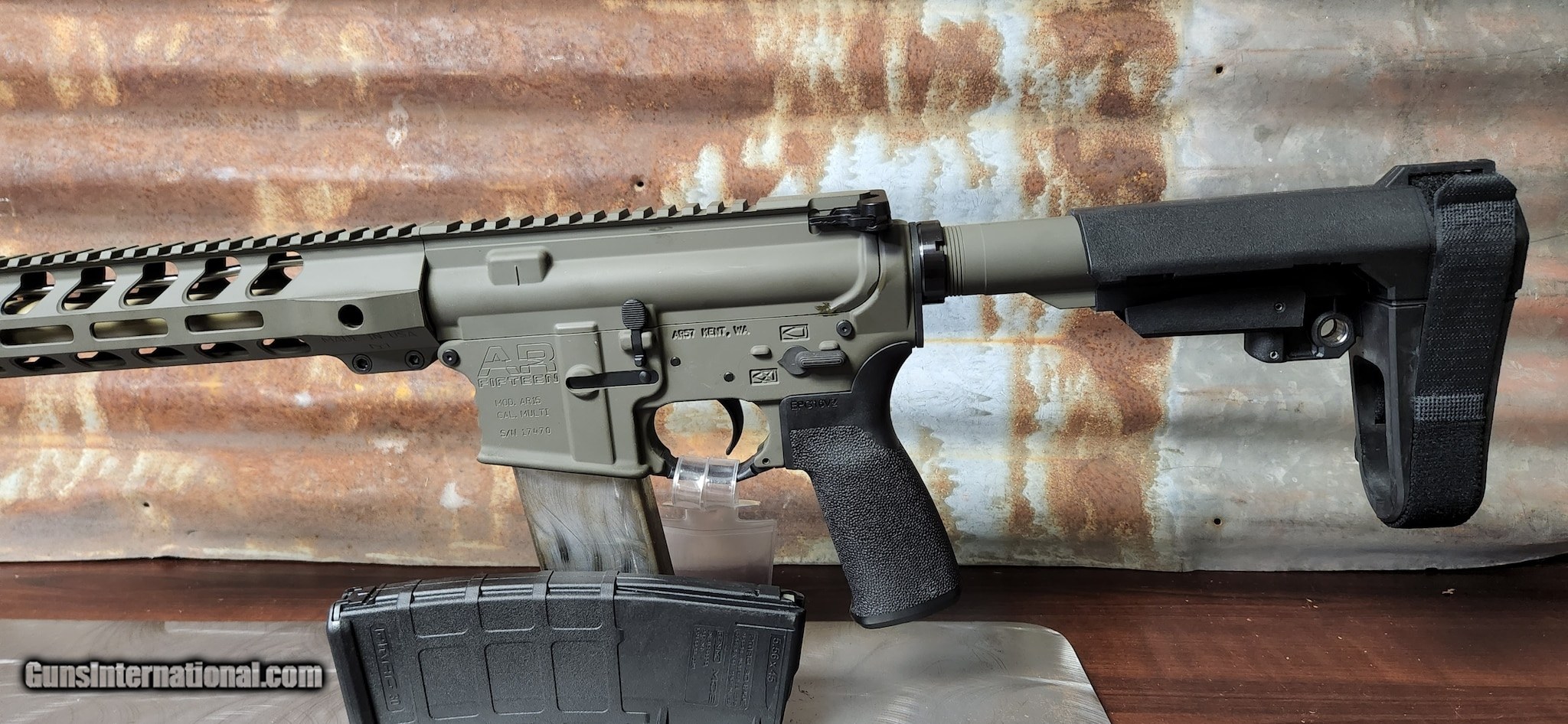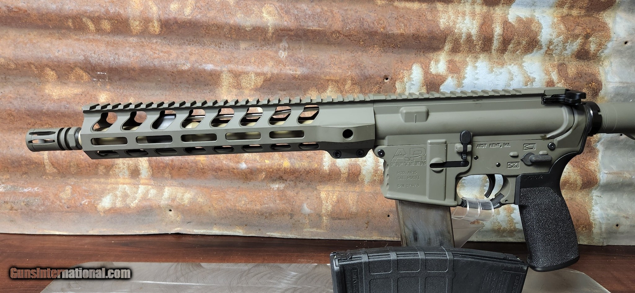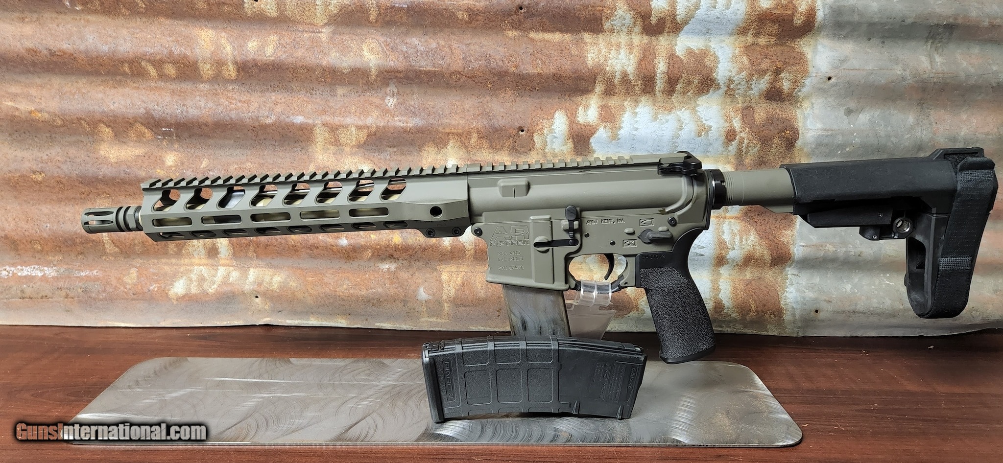 Description: Guns Listing ID: 606496 This little pistol has been upgraded with Magpul Furniture and a custom Cerekote job SOLD Manufacturer: AR57 Model: AR15 MULTICAL Caliber Info: 223 REM Condition: Used - Non-Certified Barrels: 11.5 BARREL Finish: CERAKOTE |