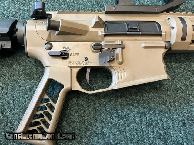 Description: Falkor Defense FD-15P, multi cal 5.56, 30mil scope rings, pistol grip adjustable arm brace butt stock, dual charging bolt handles, Falkor quad rail and grips, muzzle flash, excellent condition, 10" barrel. Serial # 0001206. For further information and faster service call John at 941-224-5563. SOLD |