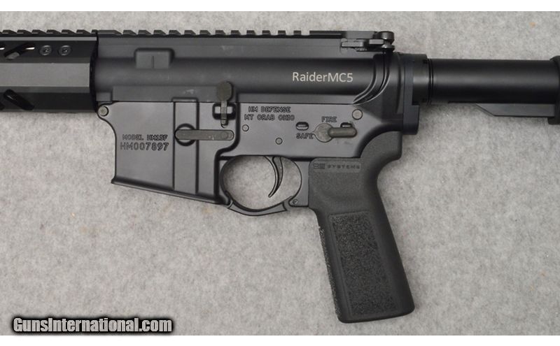 Description: This HM Defense model HM15F Raider MC5 is a new in the box semi auto pistol in 5.56 x 45MM Nato/.223 Remington. This Raider MC5 pistol comes with a M4 profile flat top picatinny rail, forged aluminum lower receiver, Shockwave Blade adjustable pistol stabilizer, mil-spec trigger, Type III Class II hardcoat anodized black finish, Magpul 30 round MOE Gen2 magazine, chrome moly monoblock barrel with integral gas block and factory cardboard box. 5.56x45MM NATO SOLD Metal Condition: New Bore Condition: New Barrels: Black Anodized 9.50 Triggers: Mil-Spec Stock Dimensions: LOP 10 Fore End: Black Anodized 8.50 Weight: 5 lbs. 10 oz. Sights: None - Picatinny Rail Item Location: West Chester, OH |